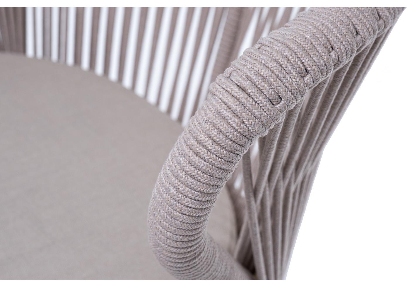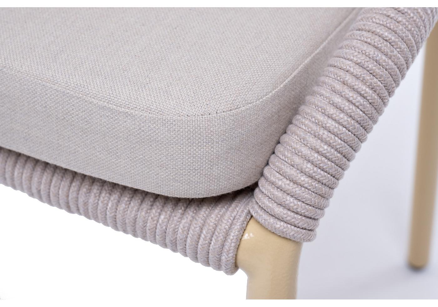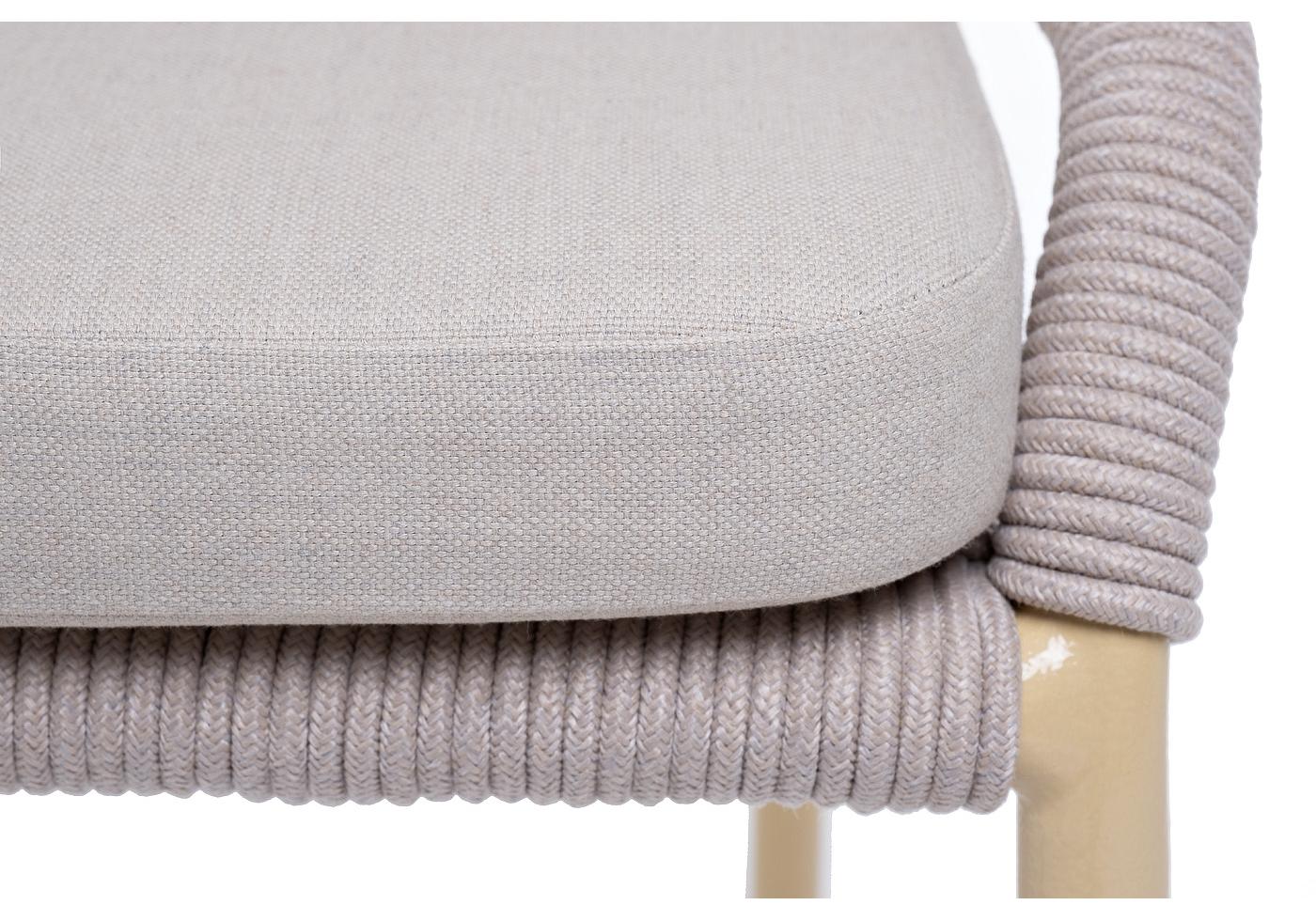"Милан" стул плетеный из роупа, каркас алюминий (RAL1001), роуп бежевый круглый, ткань бежевая