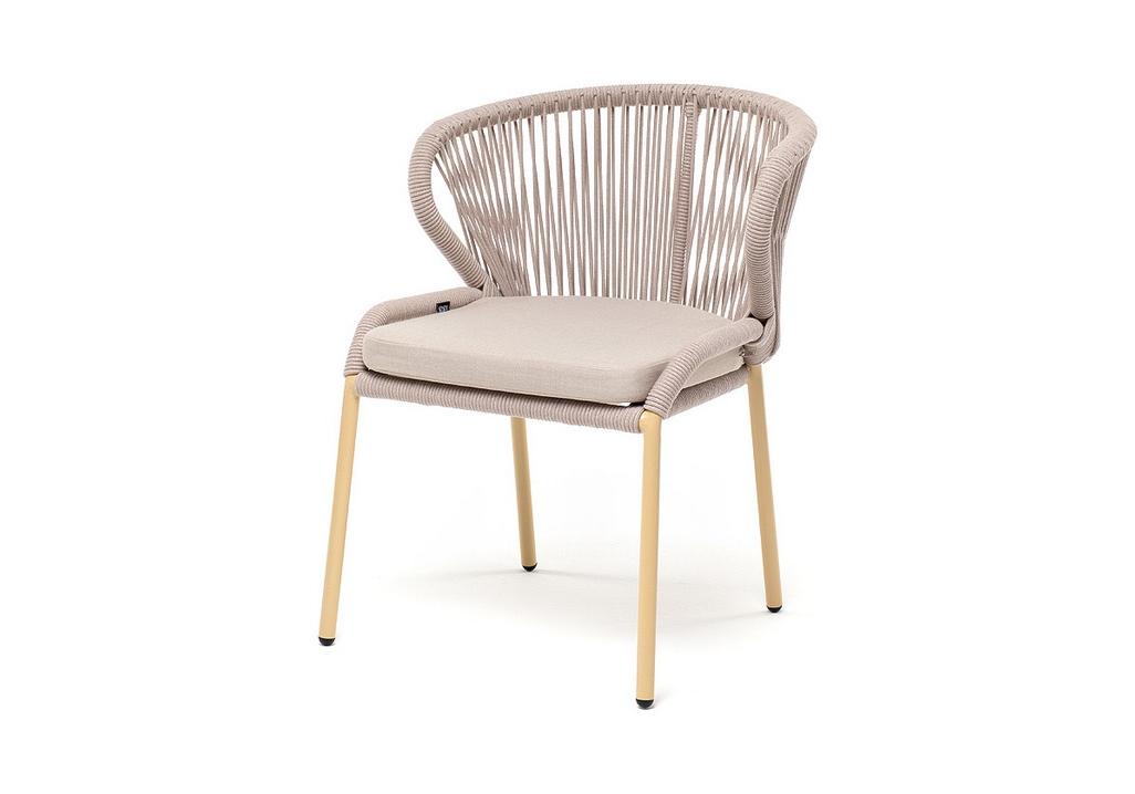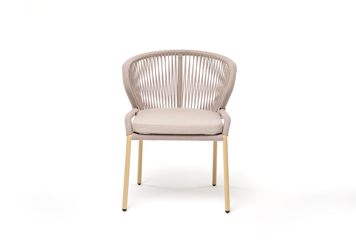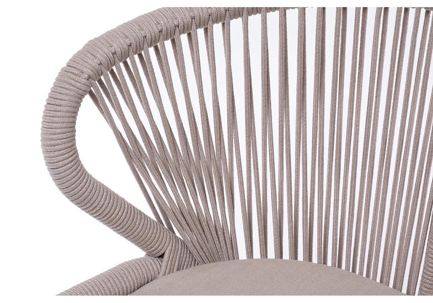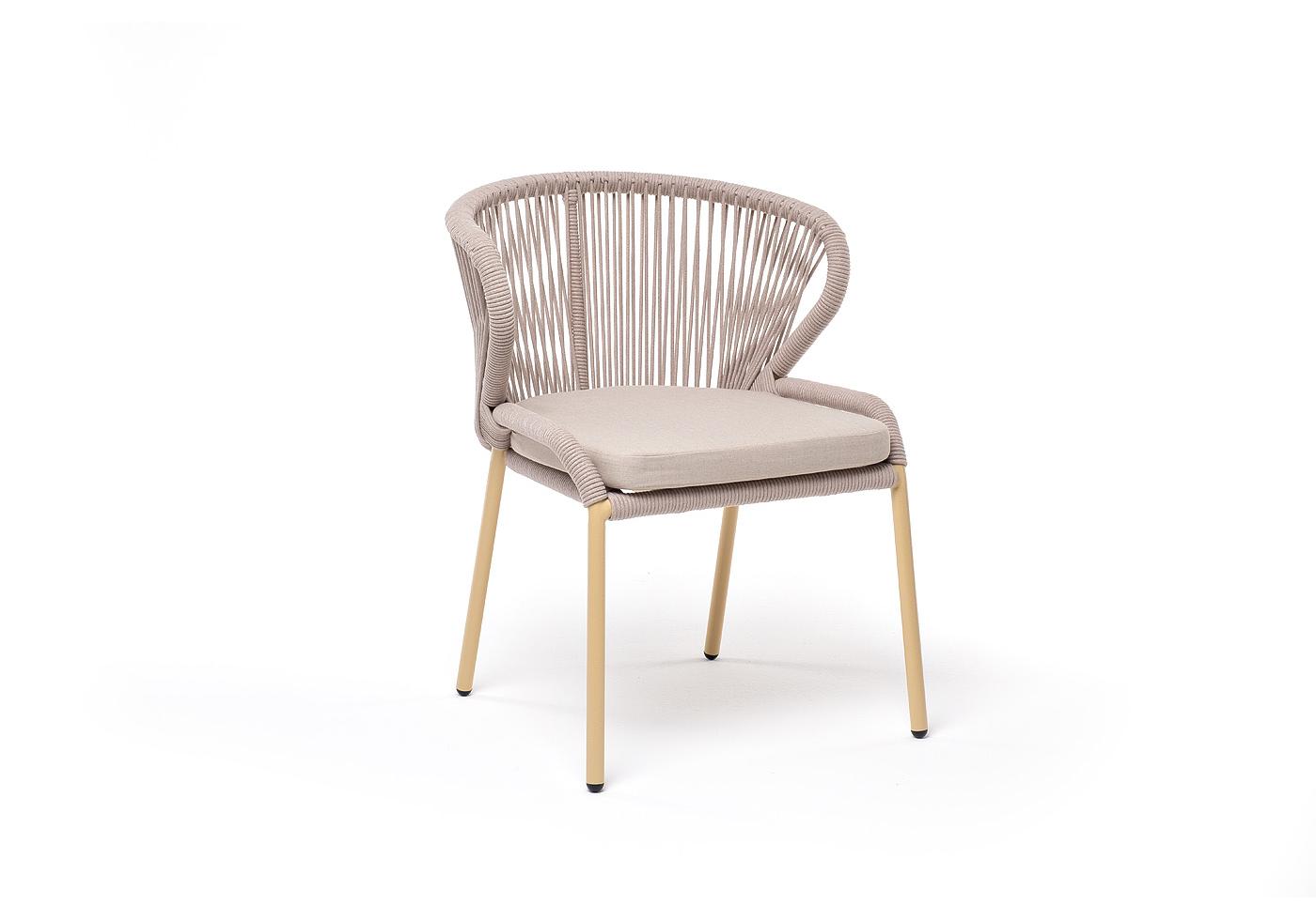 "Милан" стул плетеный из роупа, каркас алюминий (RAL1001), роуп бежевый круглый, ткань бежевая