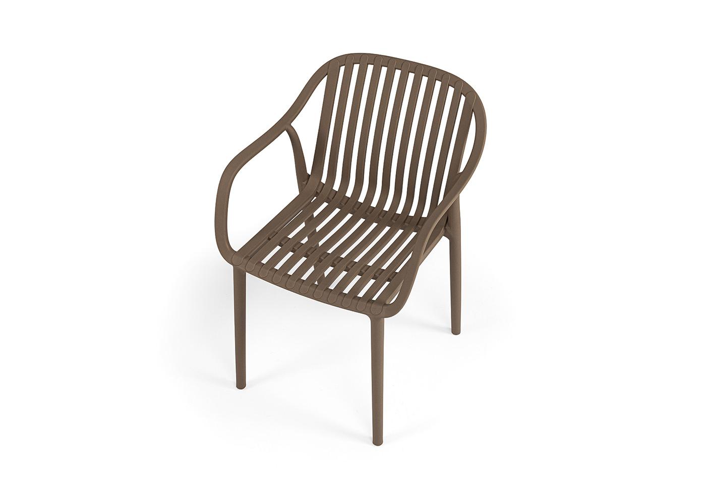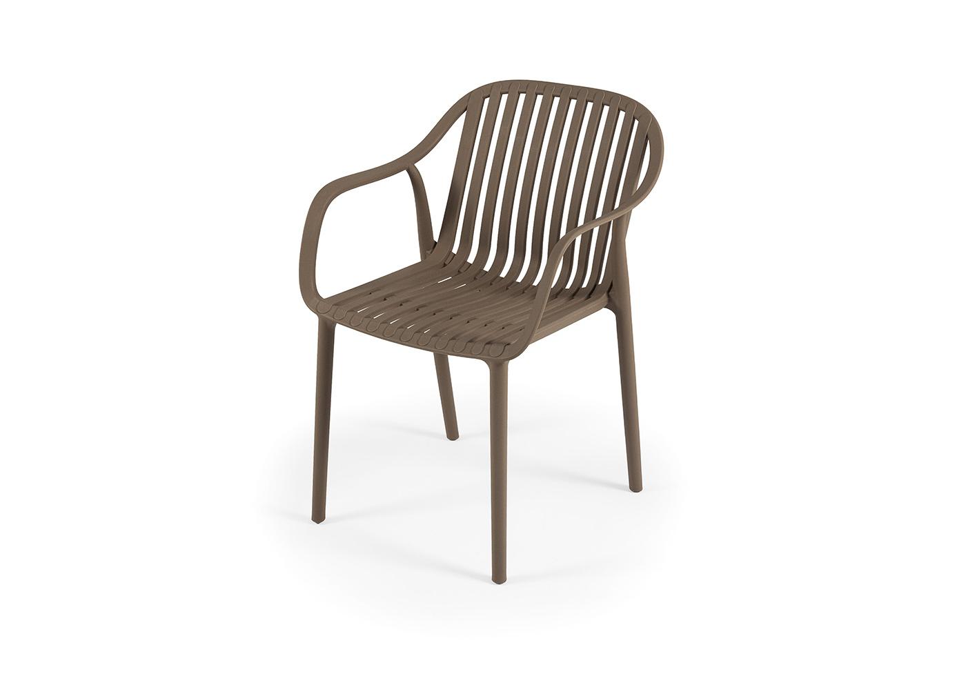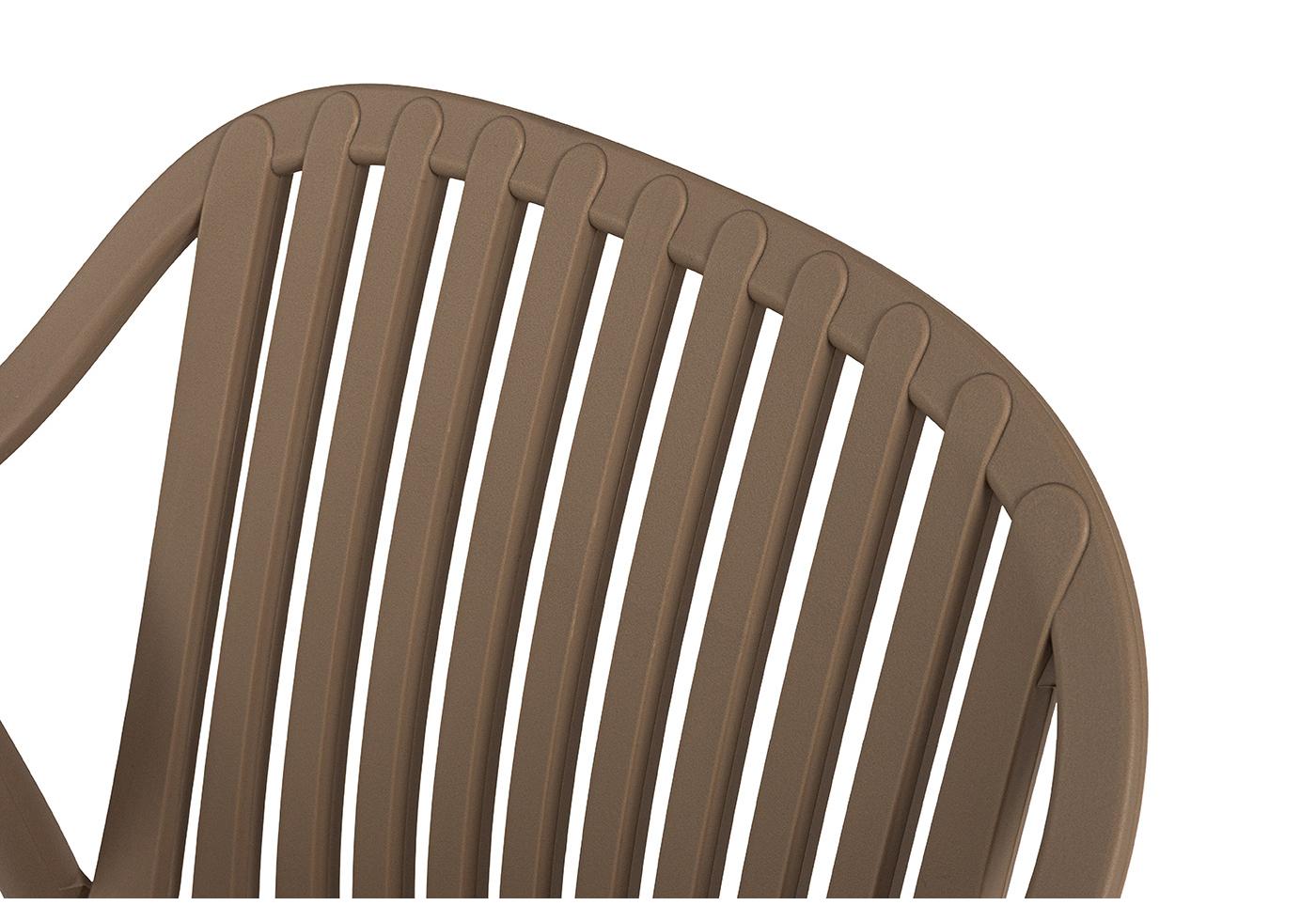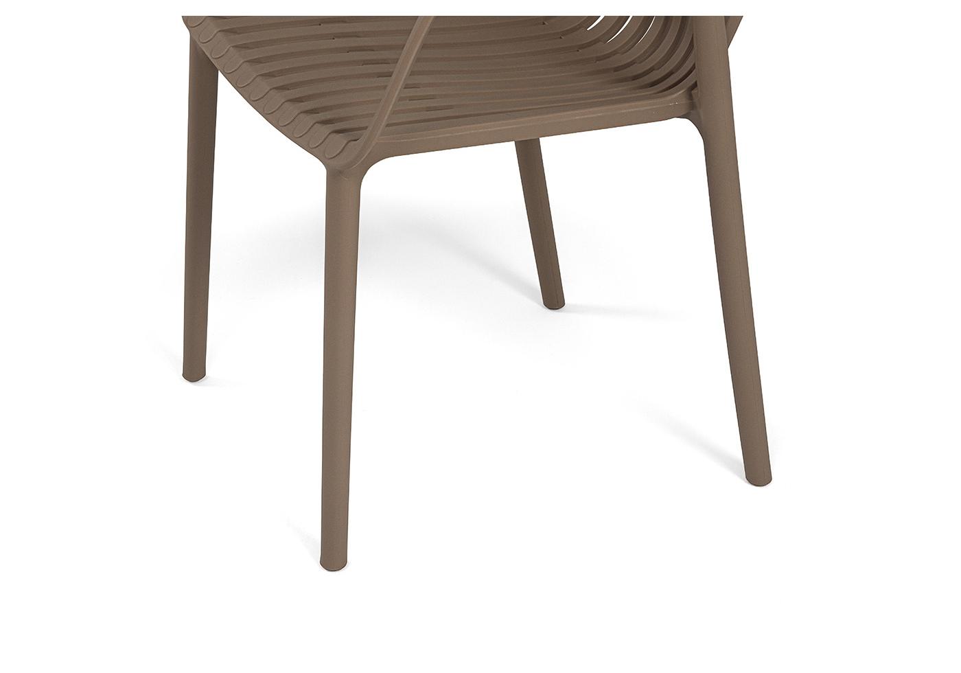 Изготовлен из полипропилена, прочного и стойкого пластика, устойчивого к УФ-излучению, благодаря этому стул сохраняет свой первоначальный вид и не выцветает на солнце даже несмотря на активную эксплуатацию. Цвет - бежево-коричневый.