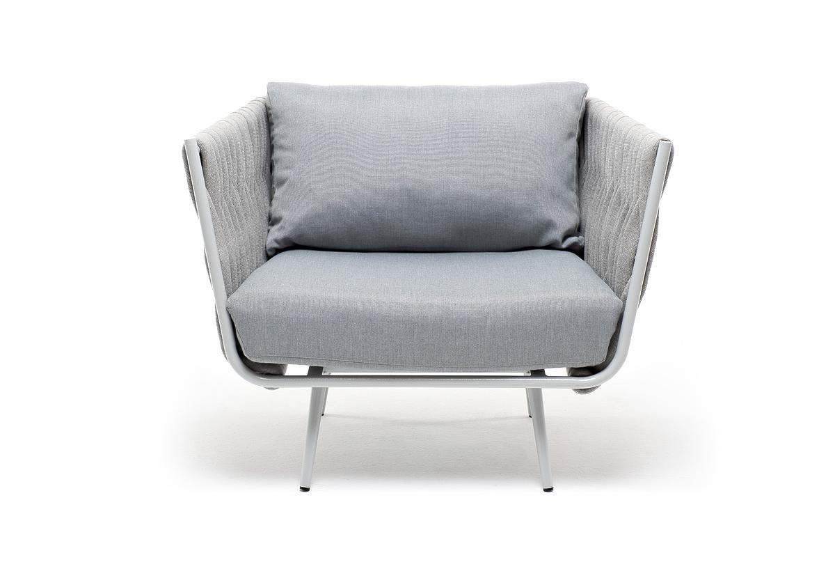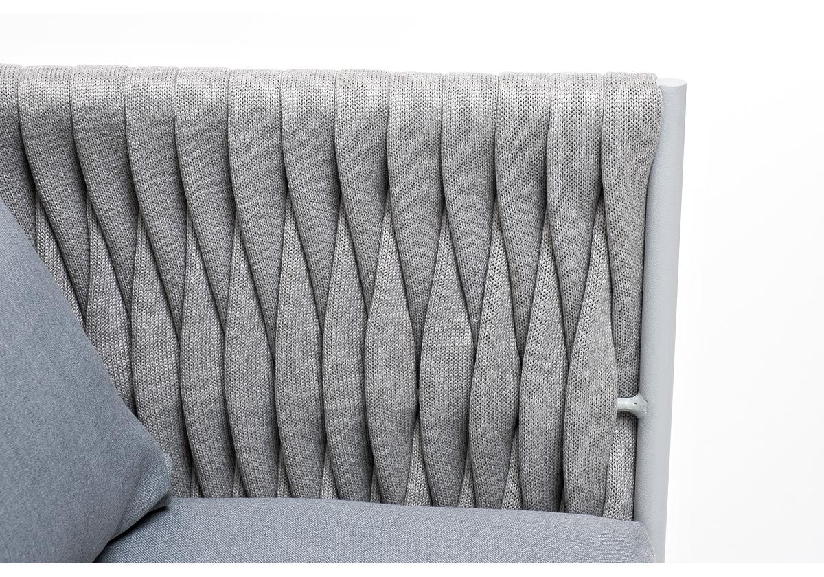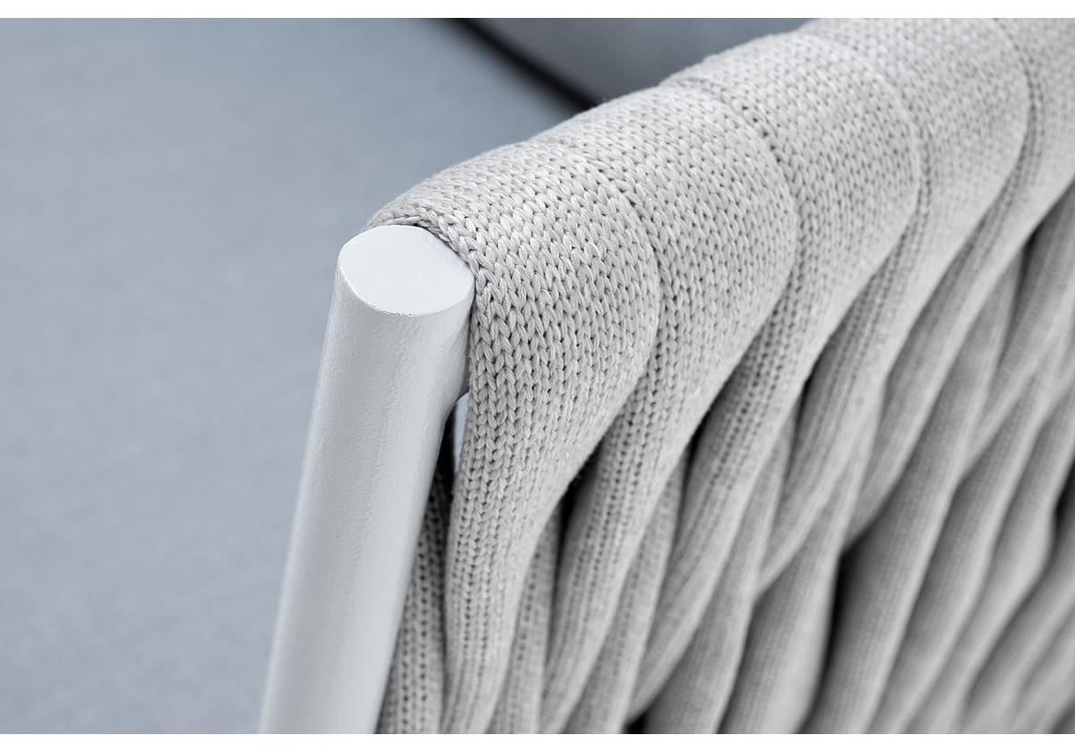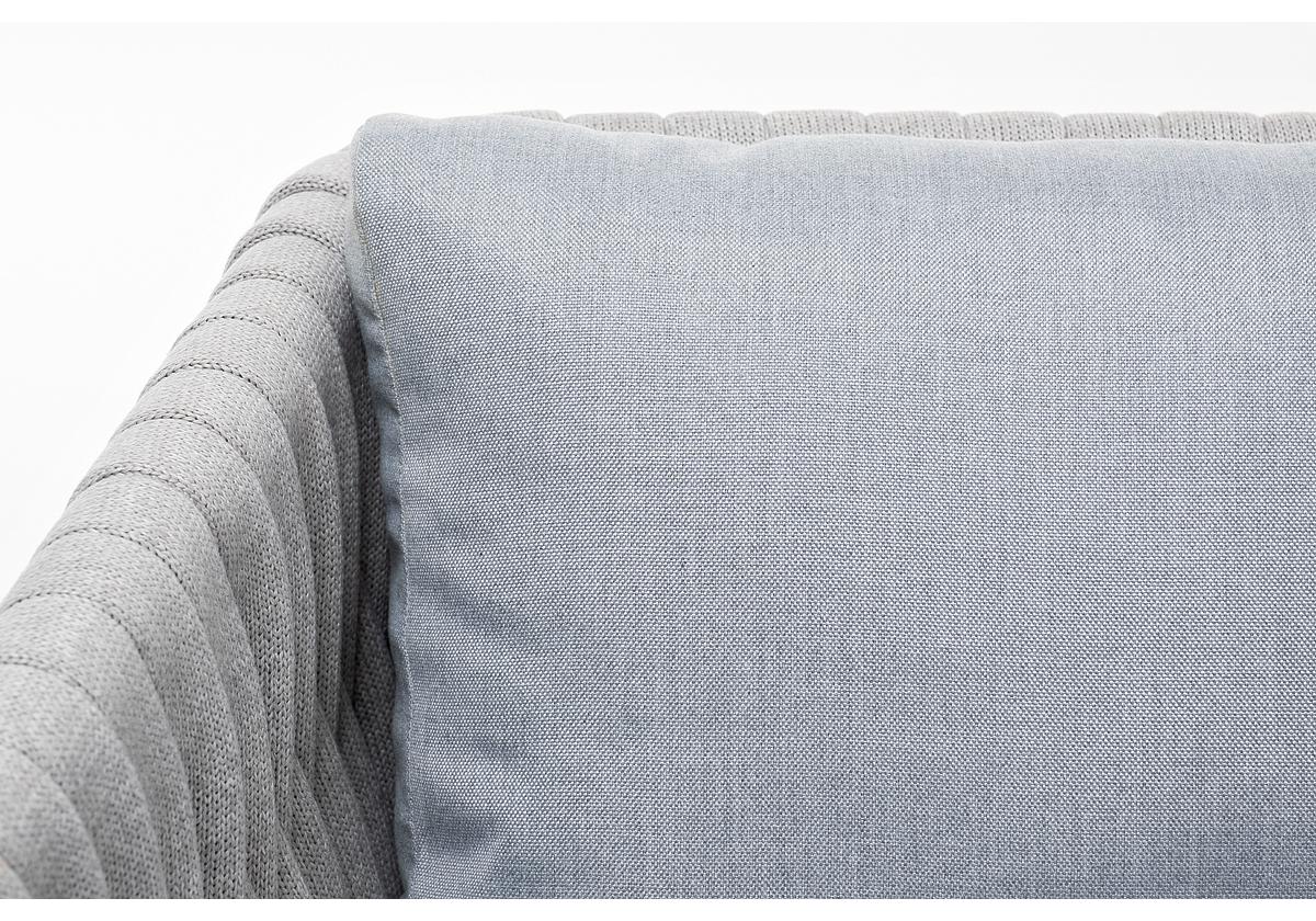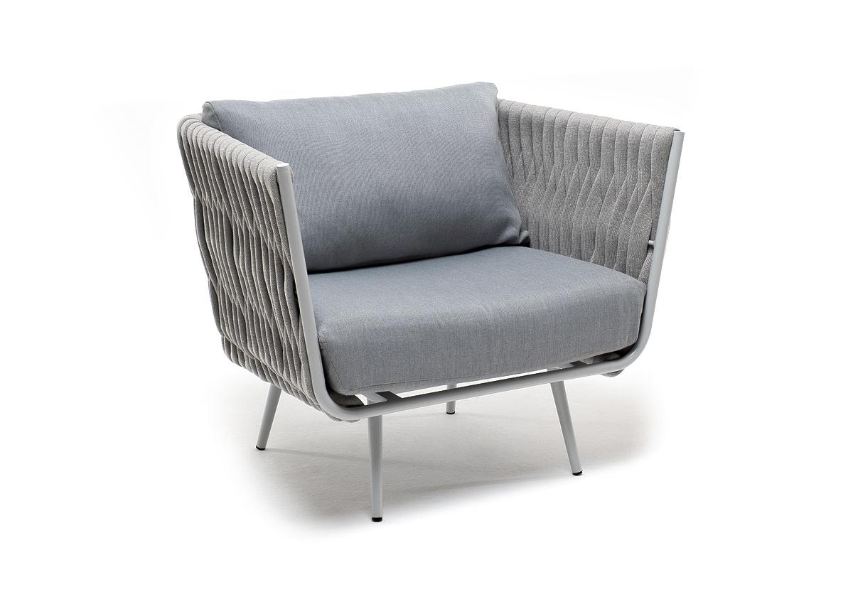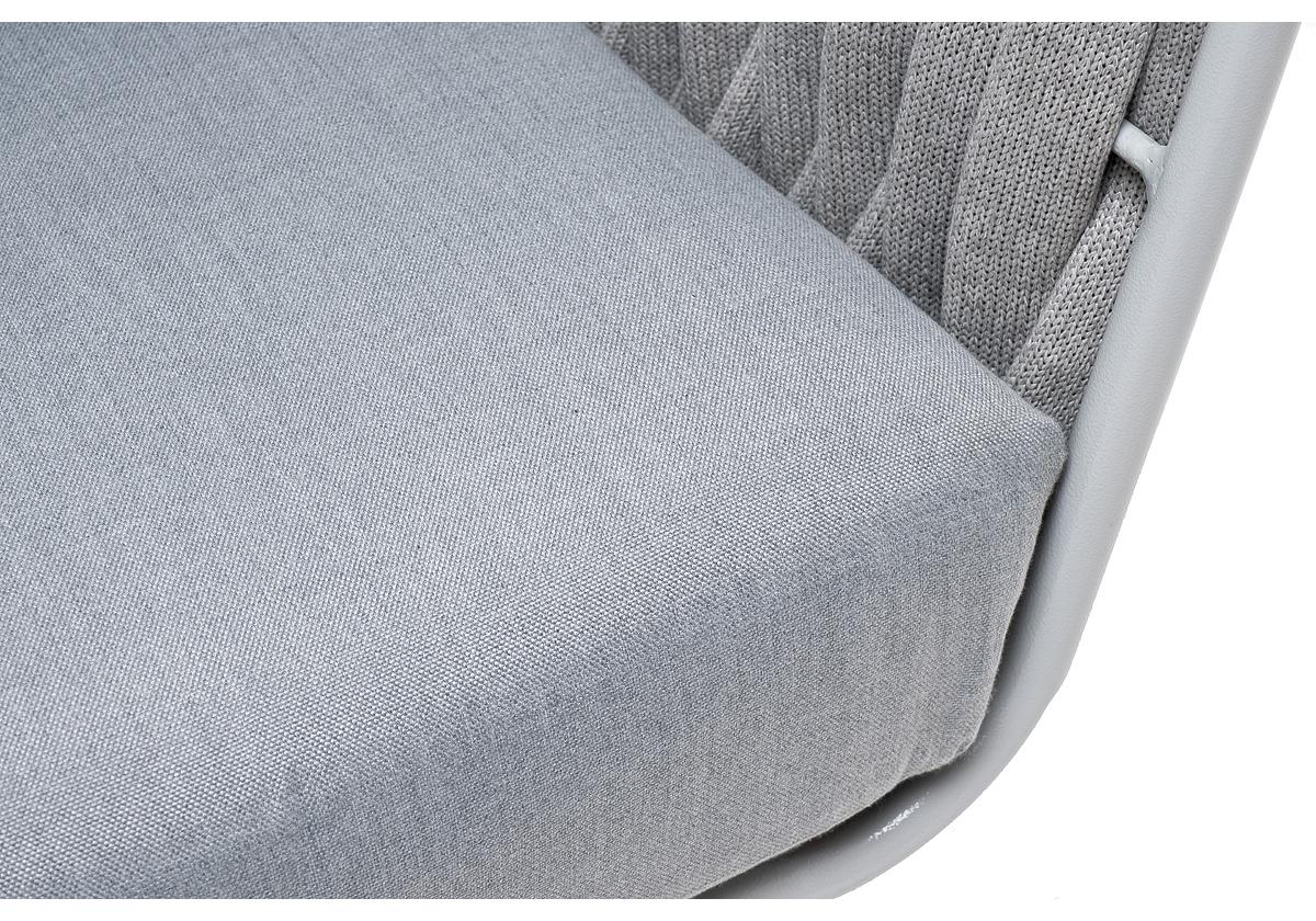 "Монако" кресло плетеное из роупа, каркас алюминий светло-серый (RAL7035) муар, роуп светло-серый 40 мм, ткань светло-серая