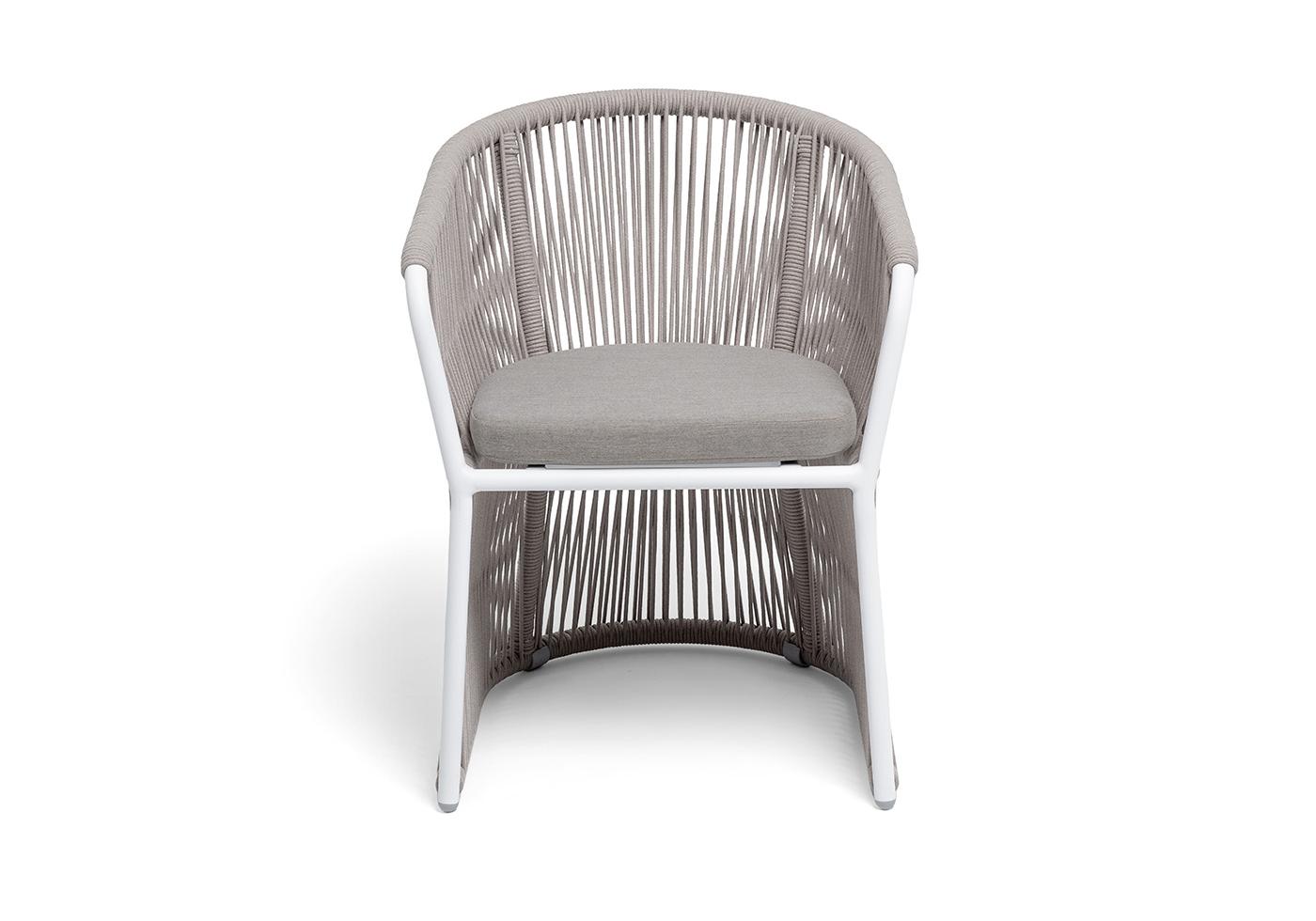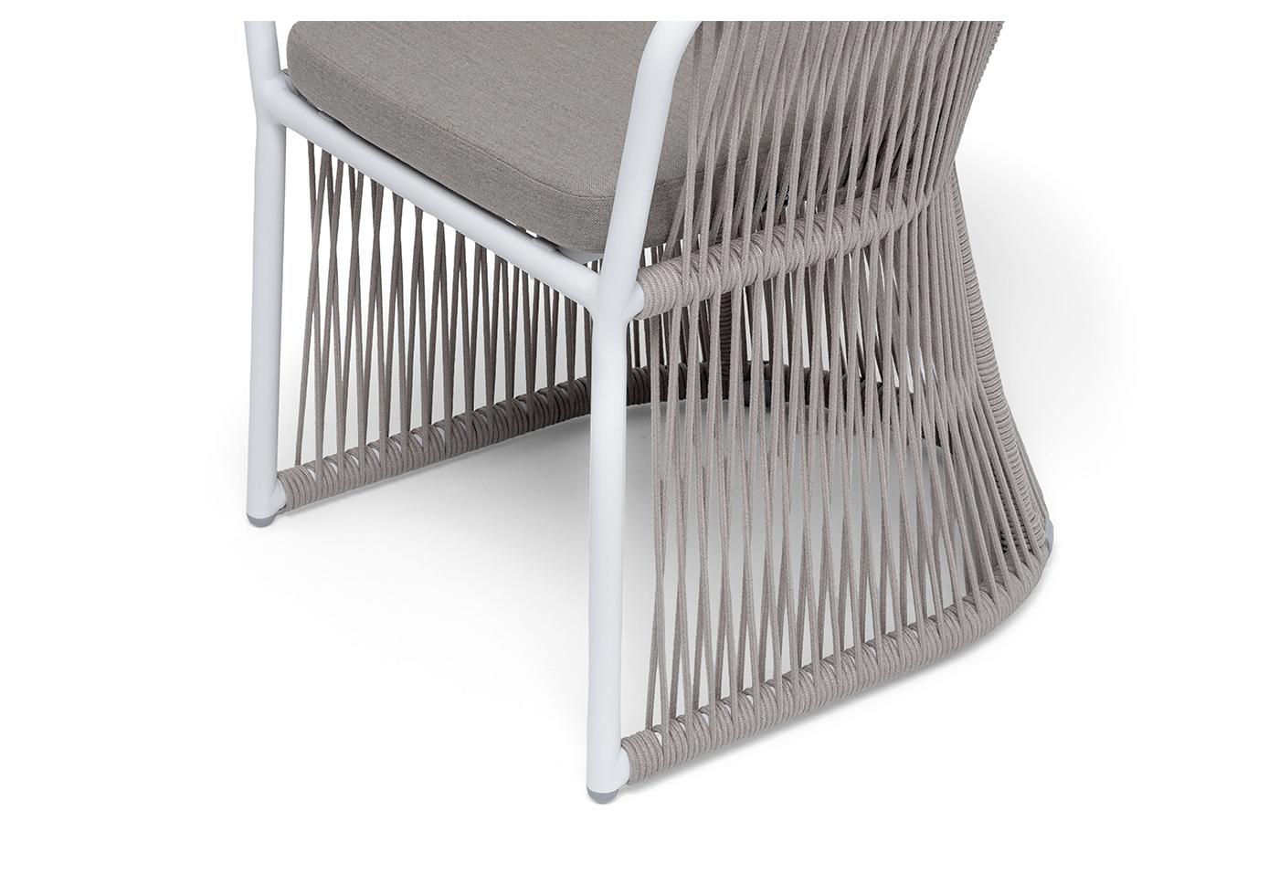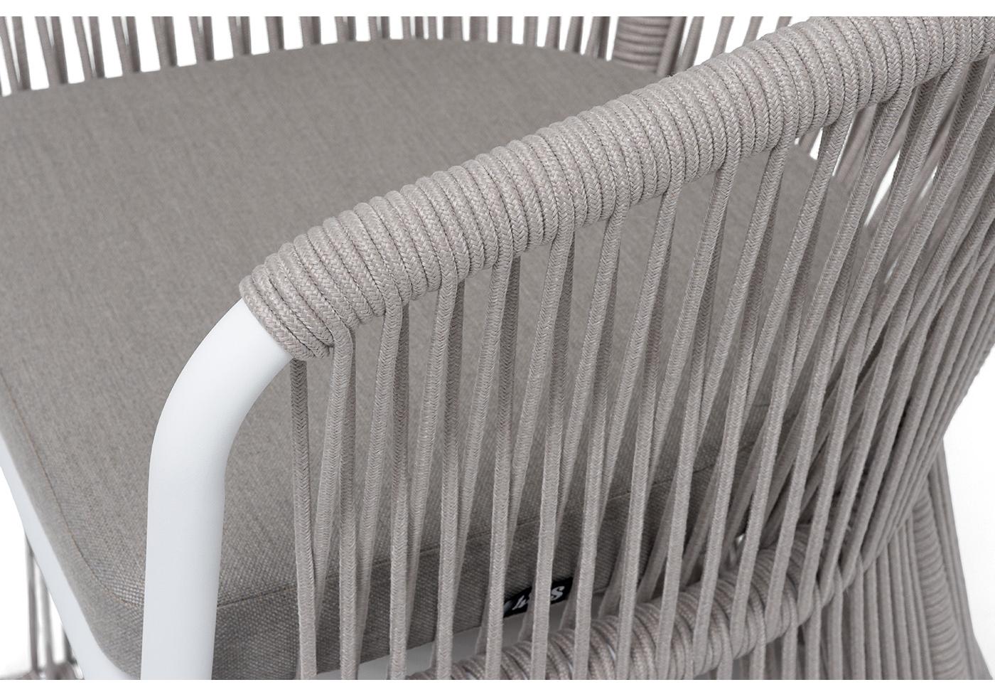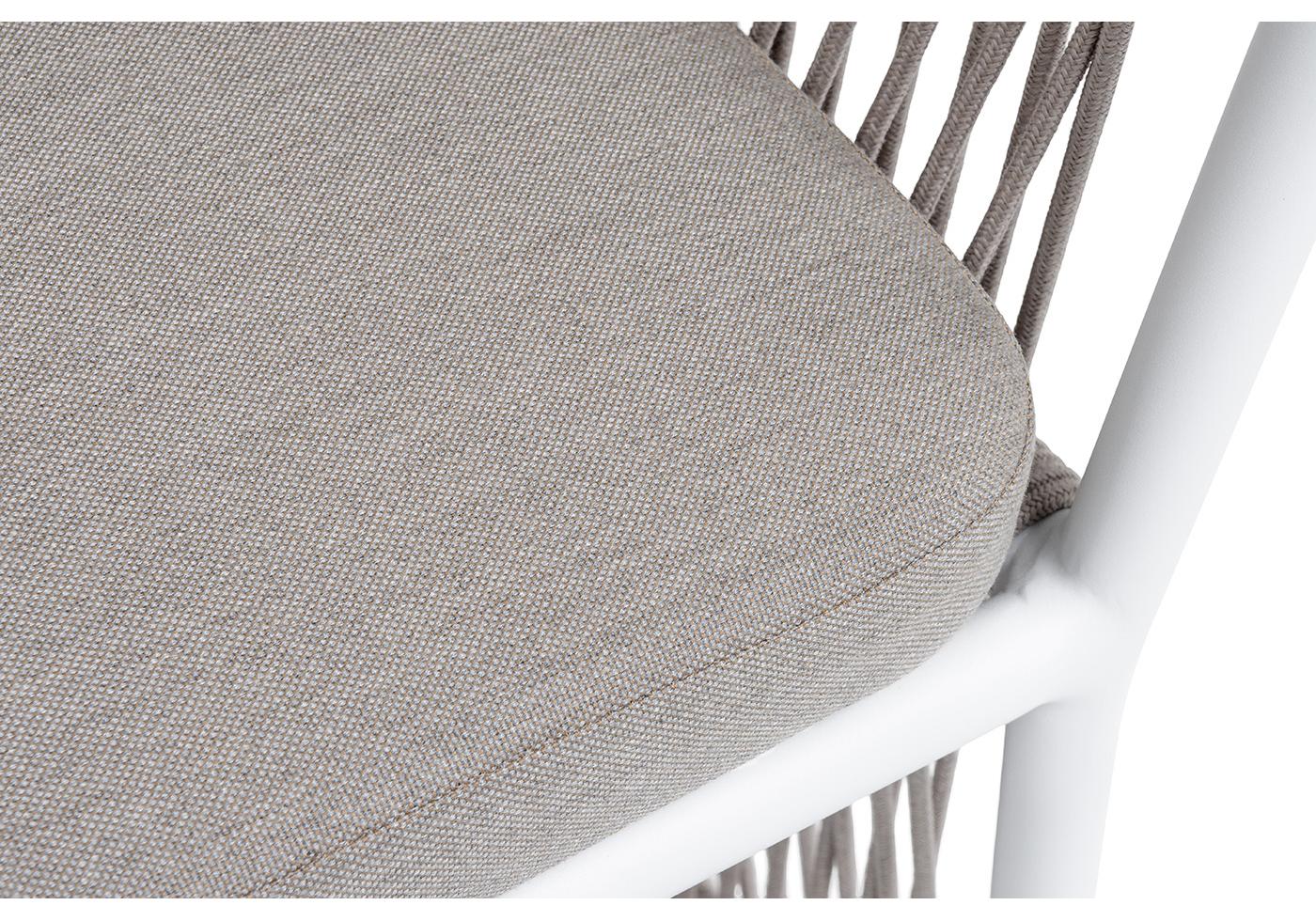 "Романо" стул плетеный из роупа, каркас алюминий белый муар, роуп бежевый круглый, ткань бежевая 15052
