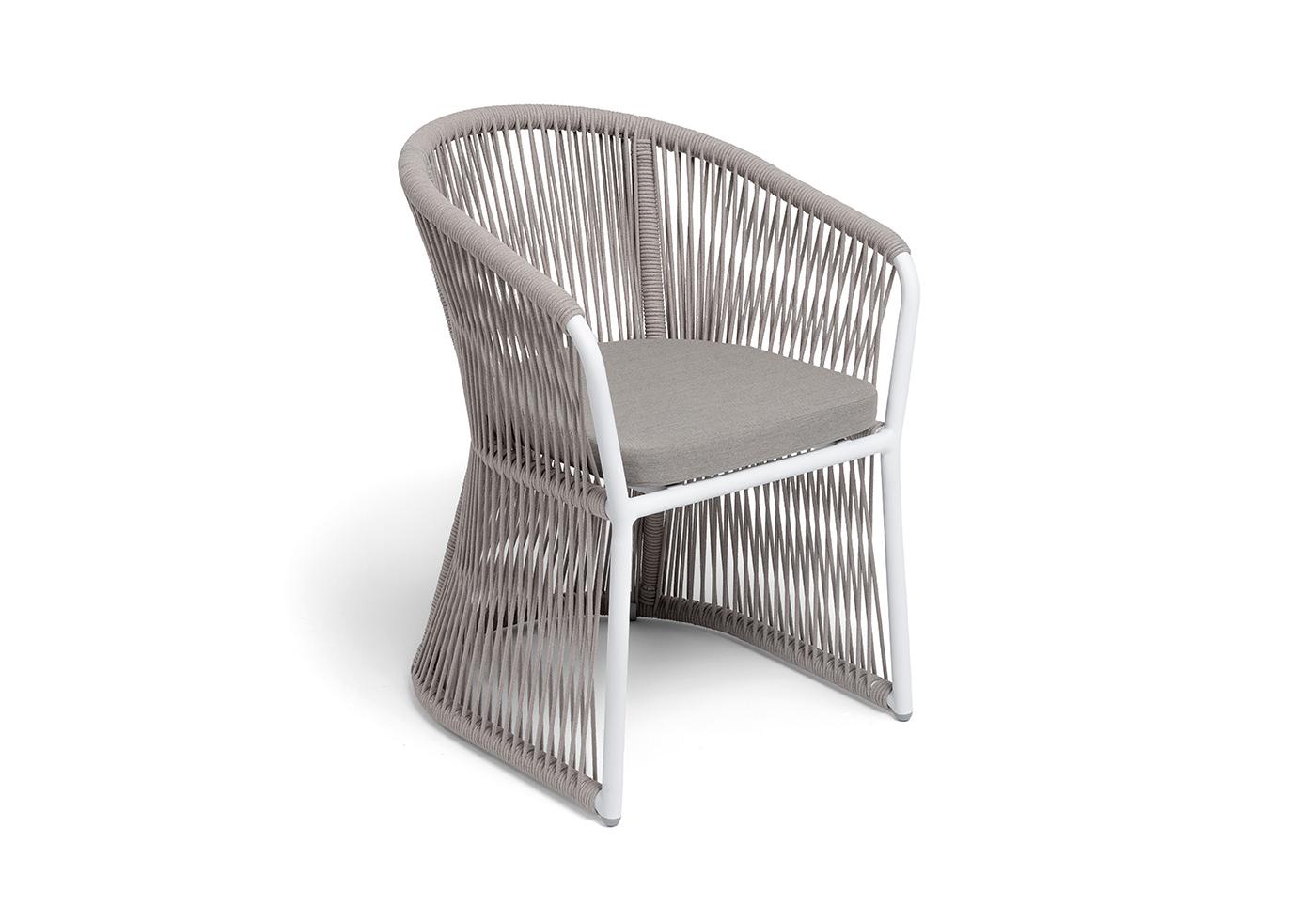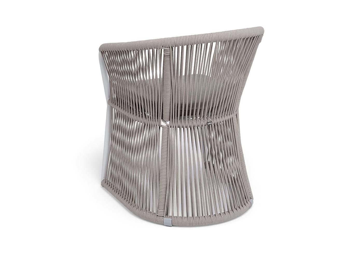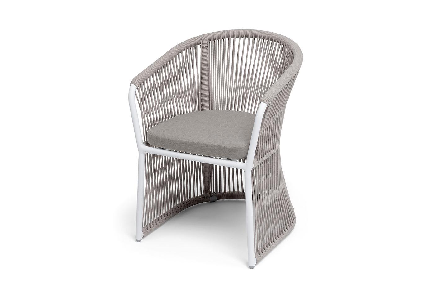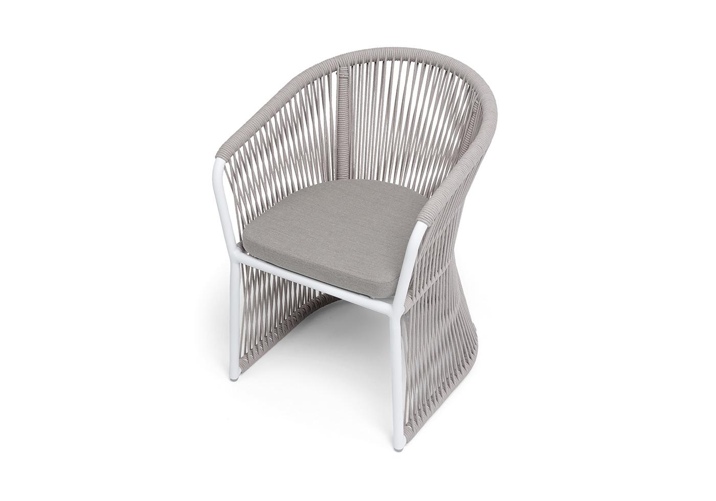 "Романо" стул плетеный из роупа, каркас алюминий белый муар, роуп бежевый круглый, ткань бежевая 15052