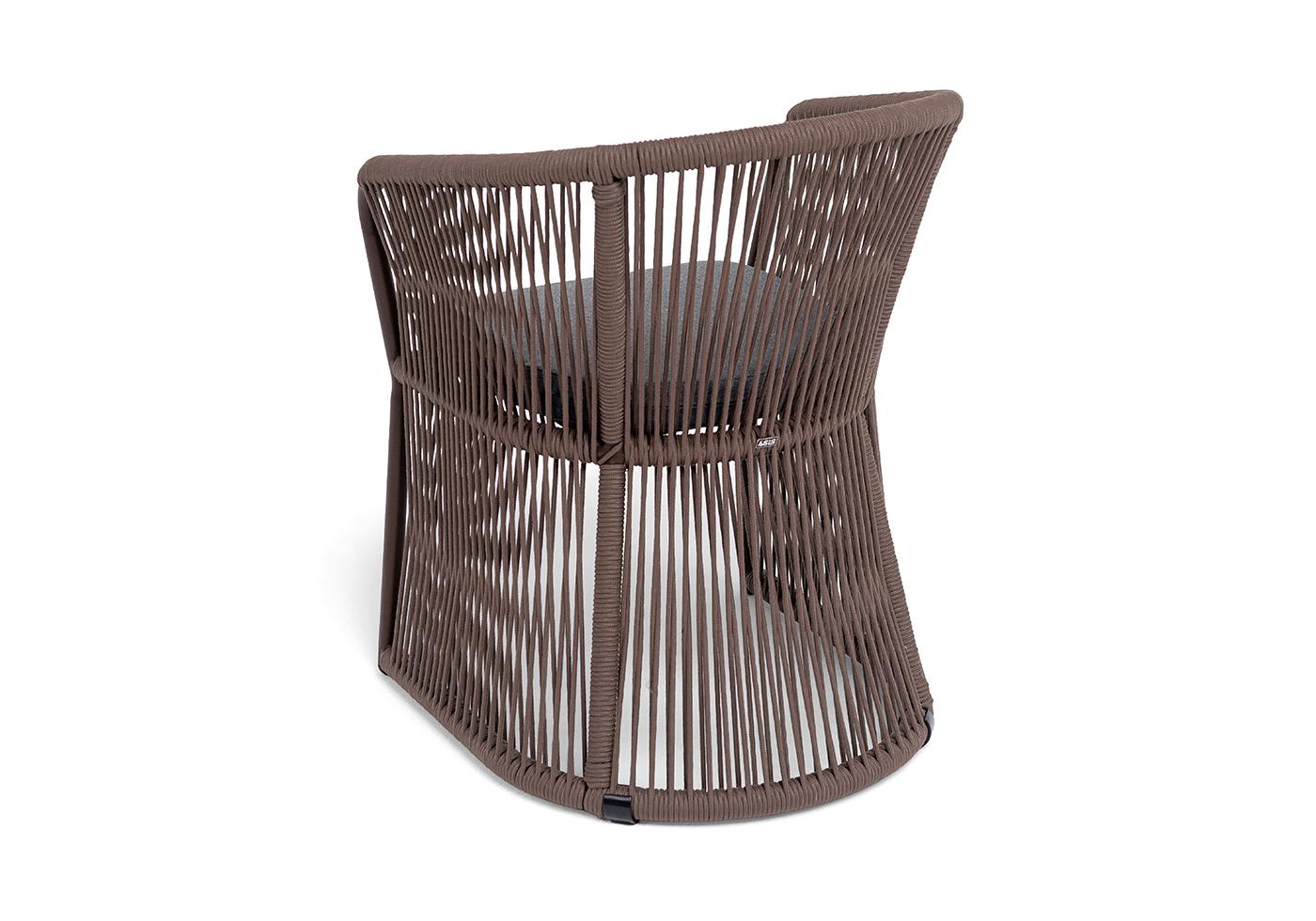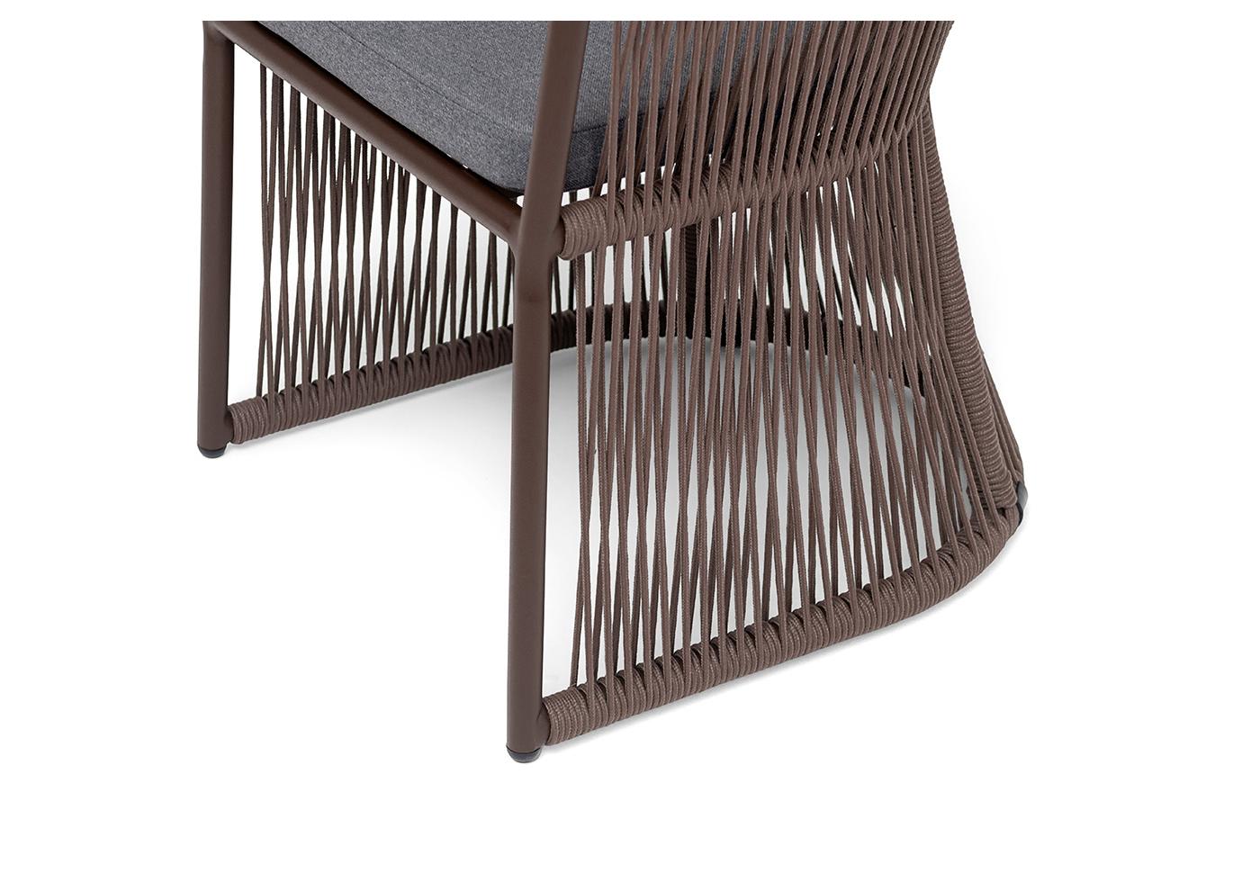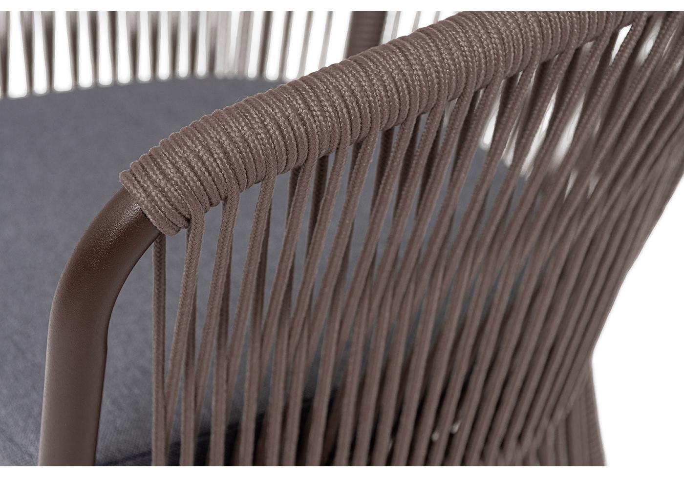 "Романо" стул плетеный из роупа, каркас алюминий коричневый (RAL8016) муар, роуп коричневый круглый, ткань темно-серая 027