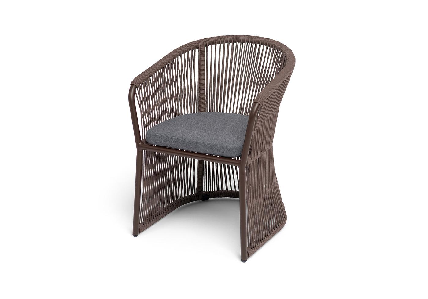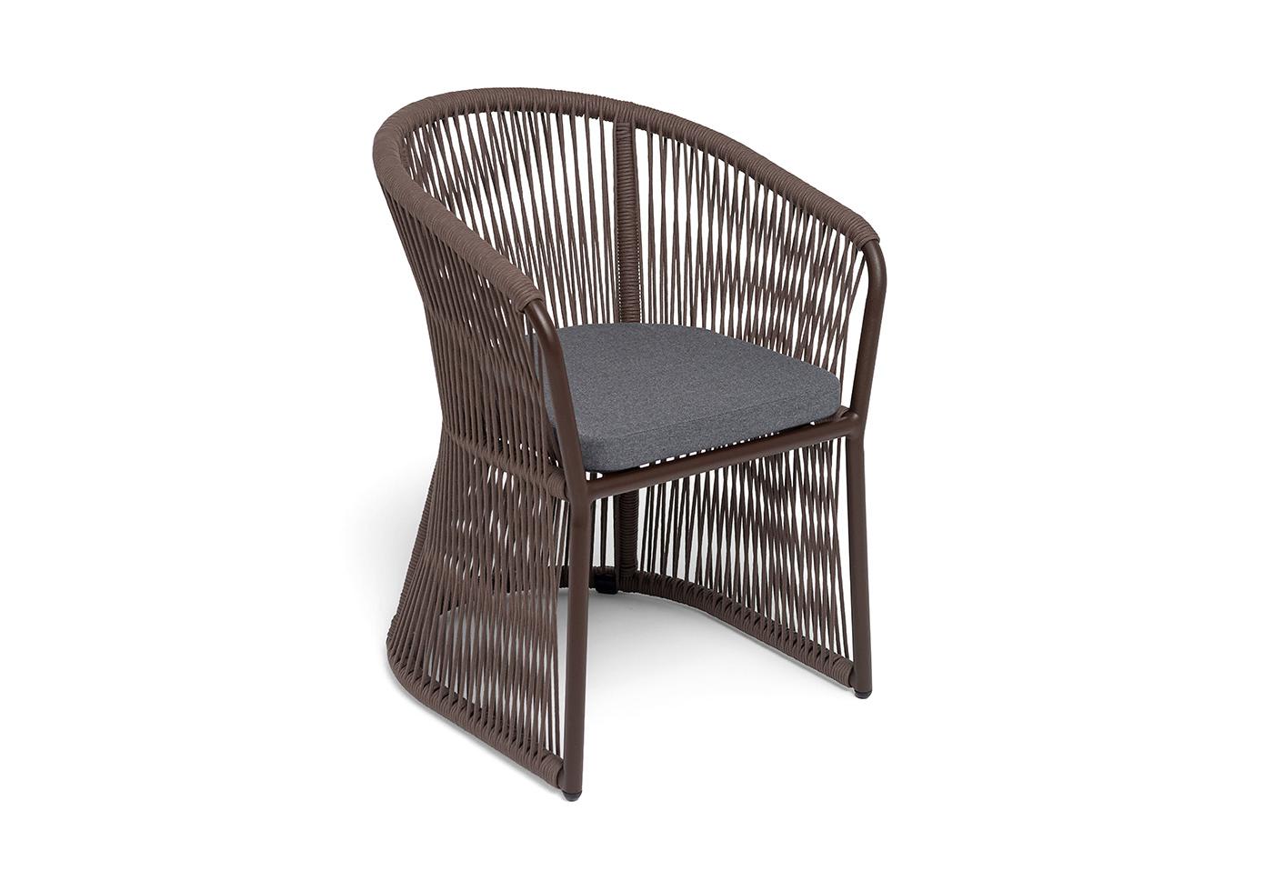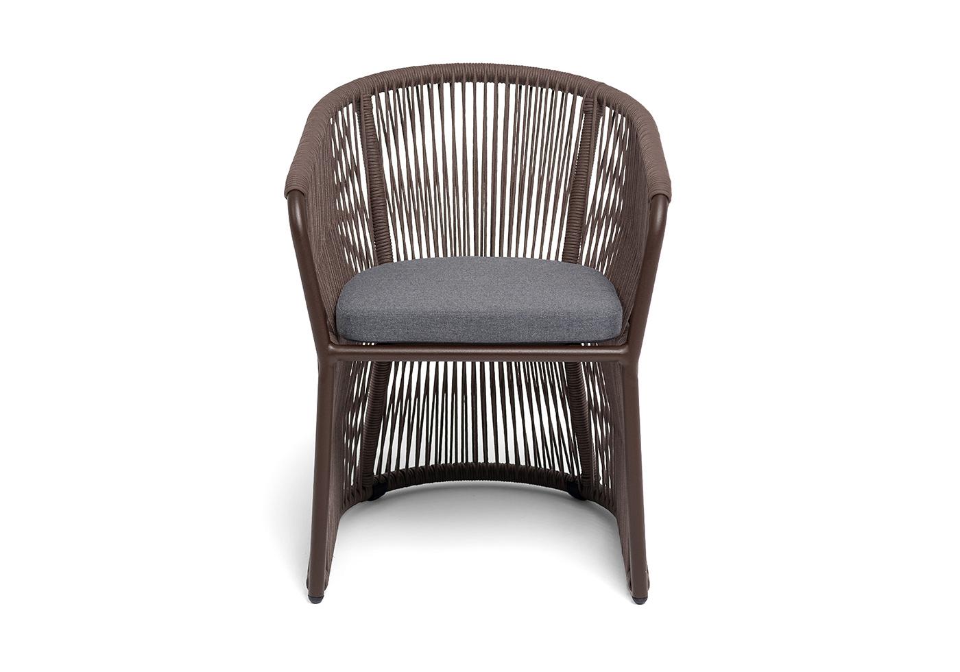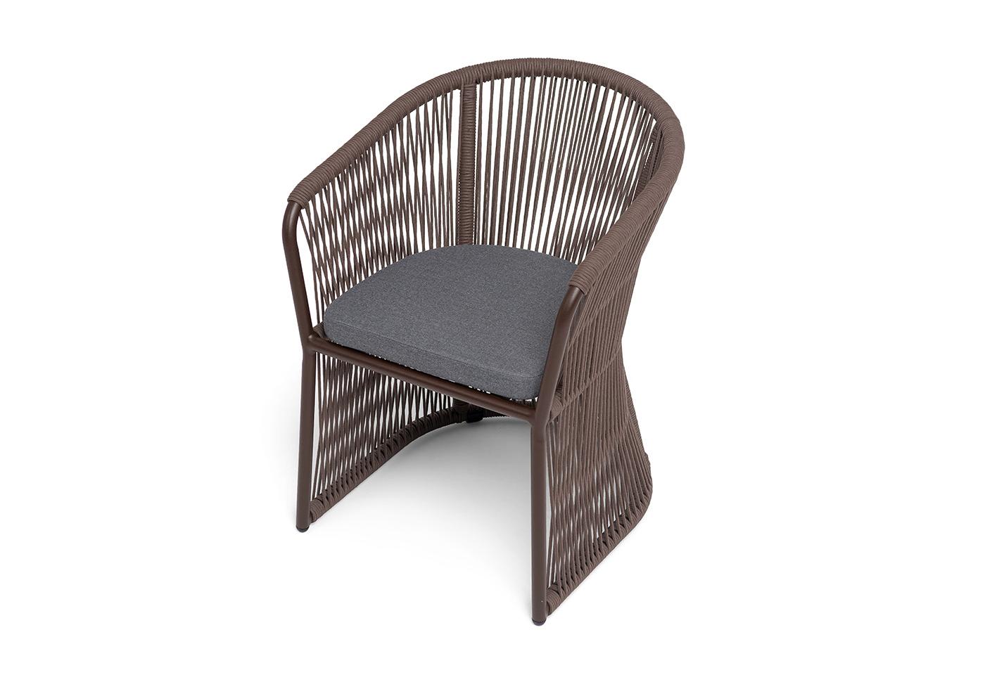 "Романо" стул плетеный из роупа, каркас алюминий коричневый (RAL8016) муар, роуп коричневый круглый, ткань темно-серая 027