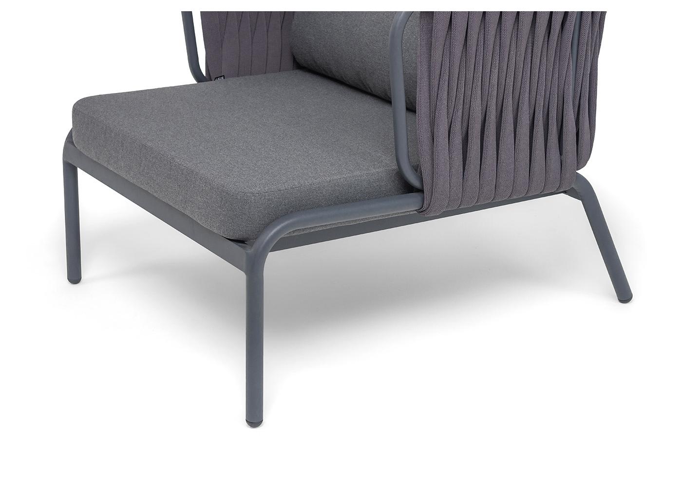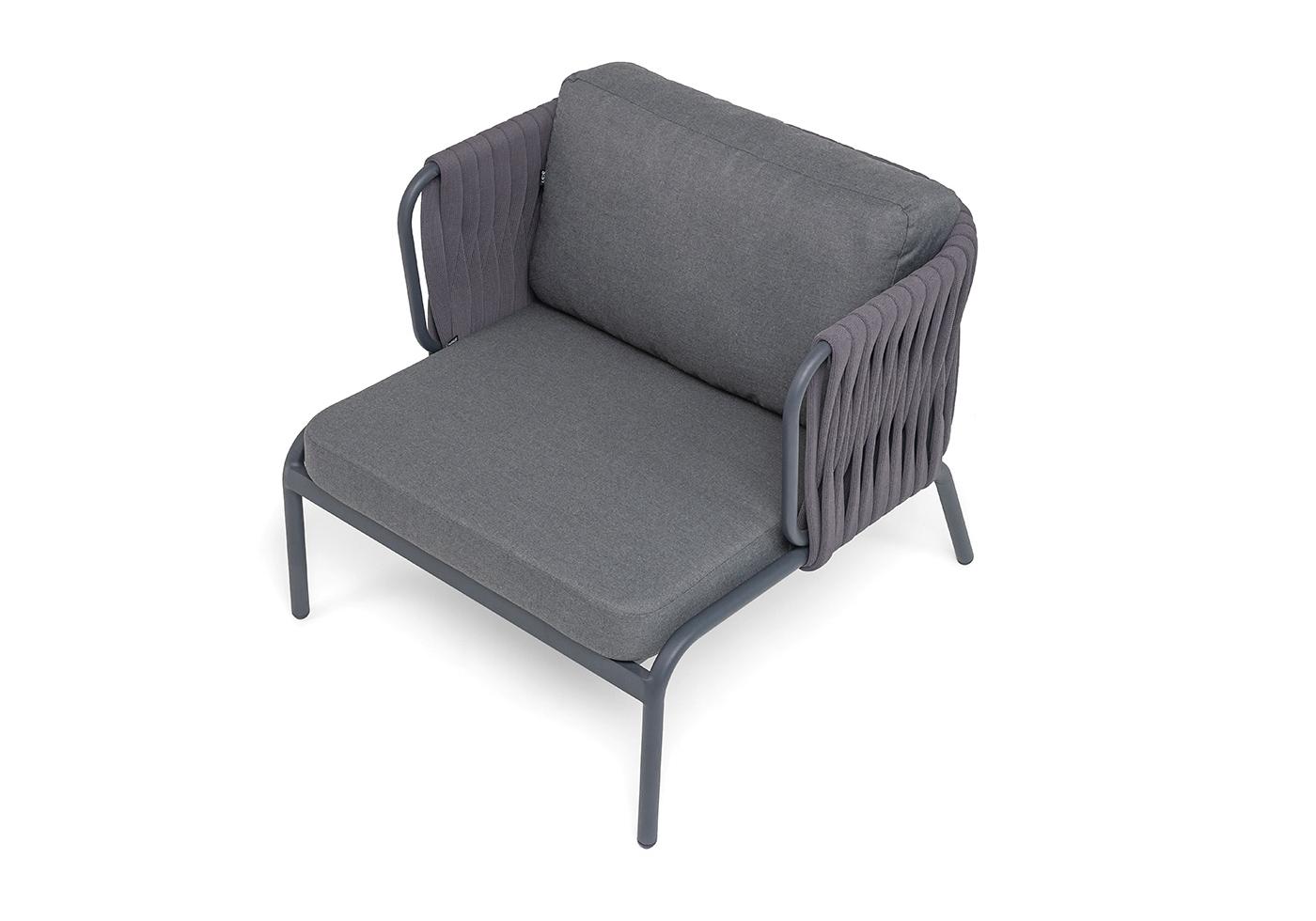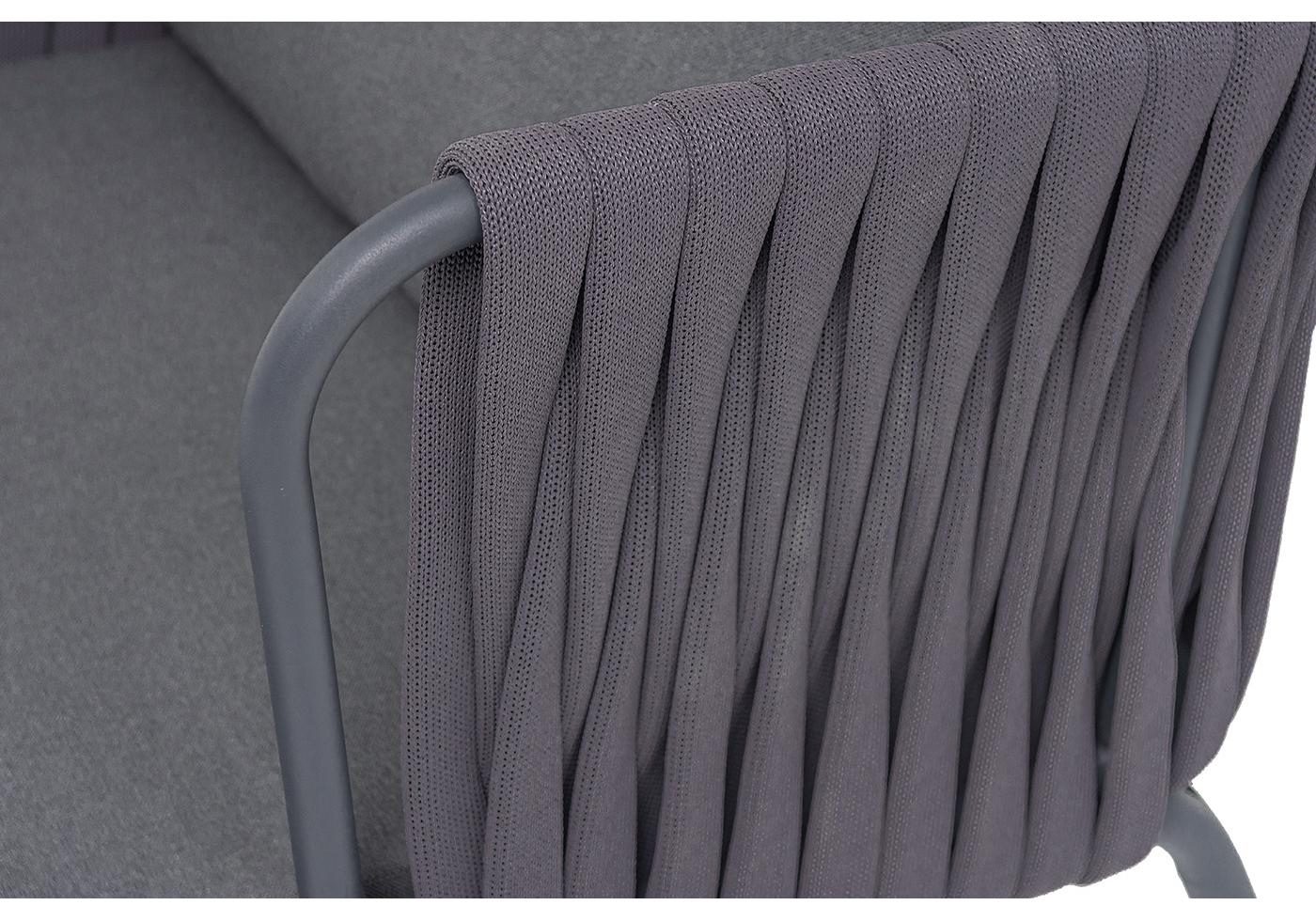 "Ронда" кресло плетеное из роупа, каркас алюминий темно-серый (RAL7024) муар, роуп серый 40 мм tex, ткань темно-серая 027
