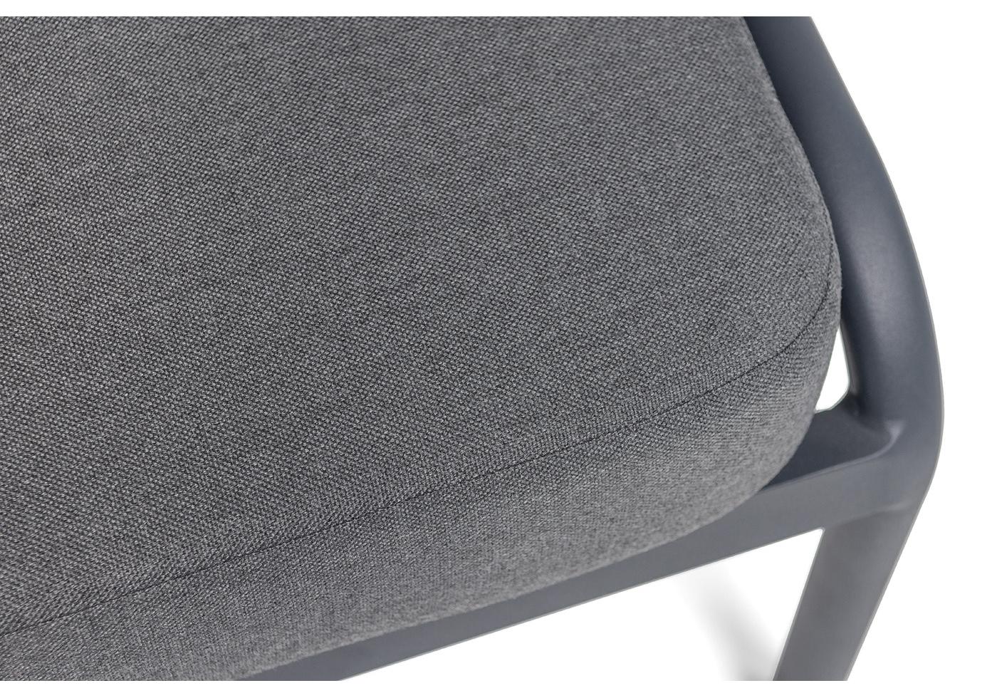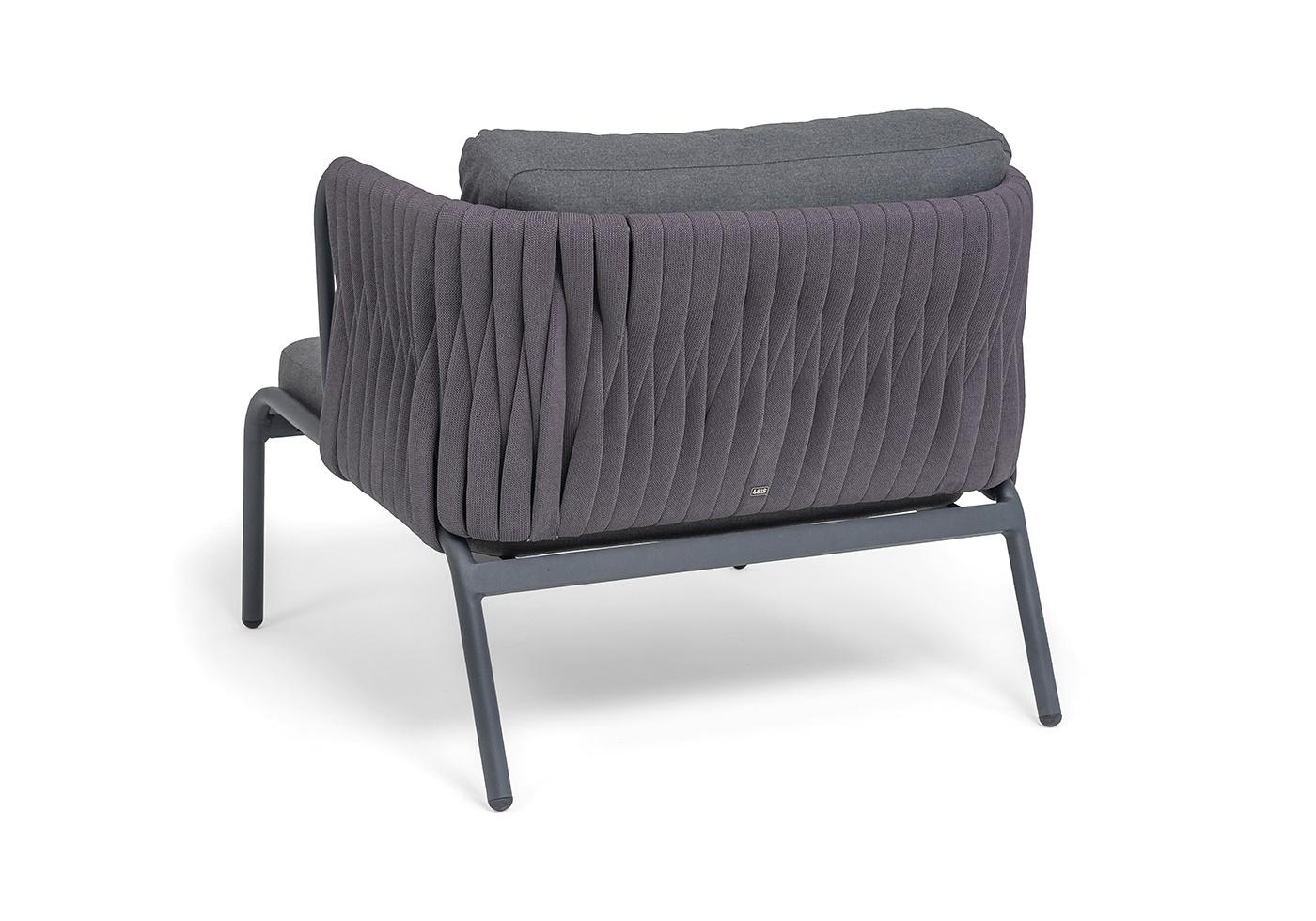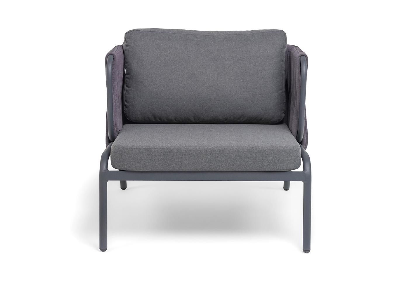 "Ронда" кресло плетеное из роупа, каркас алюминий темно-серый (RAL7024) муар, роуп серый 40 мм tex, ткань темно-серая 027
