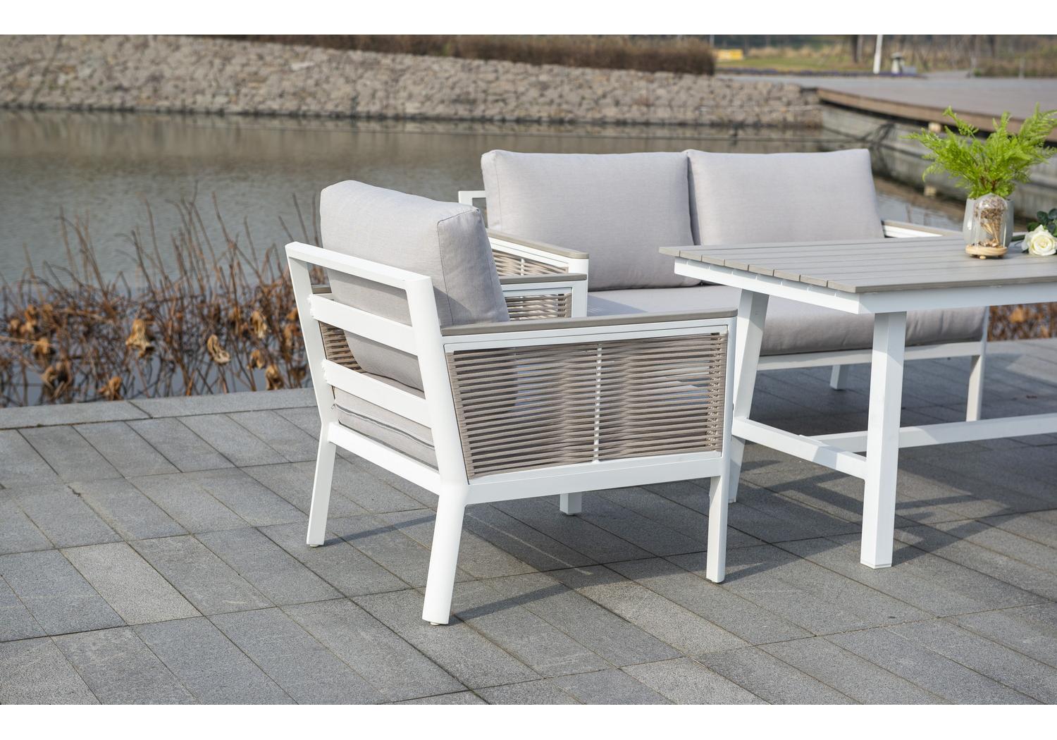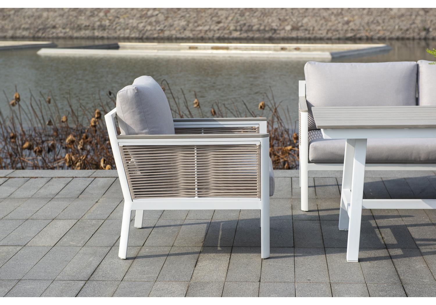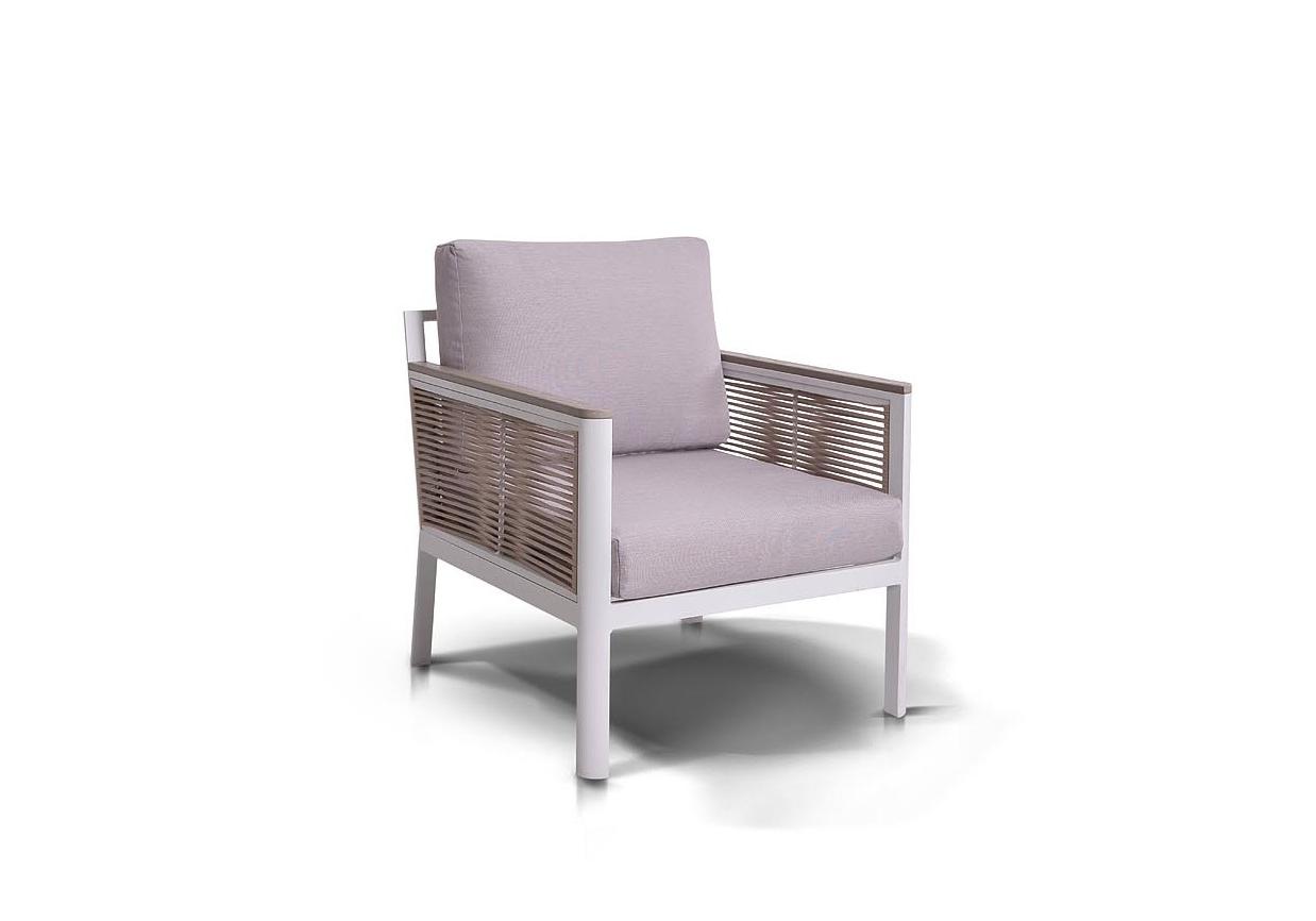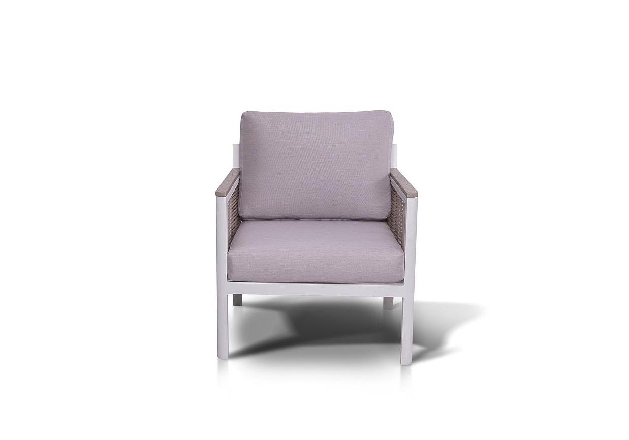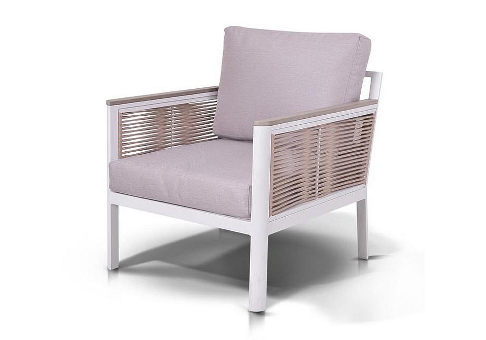 "Сан Ремо" кресло плетеное из роупа садовое, каркас алюминий белый, роуп бежевый, ткань бежевая