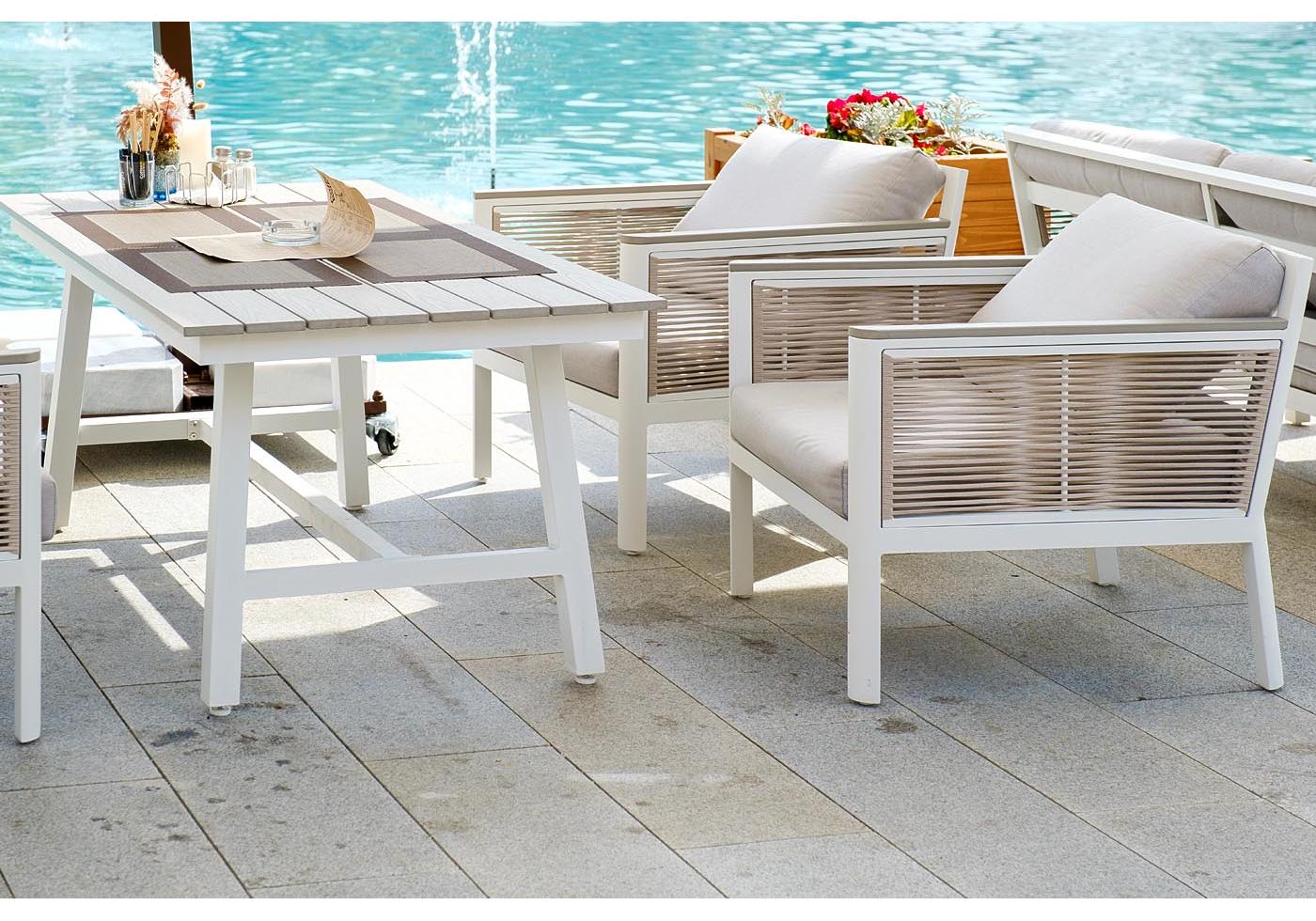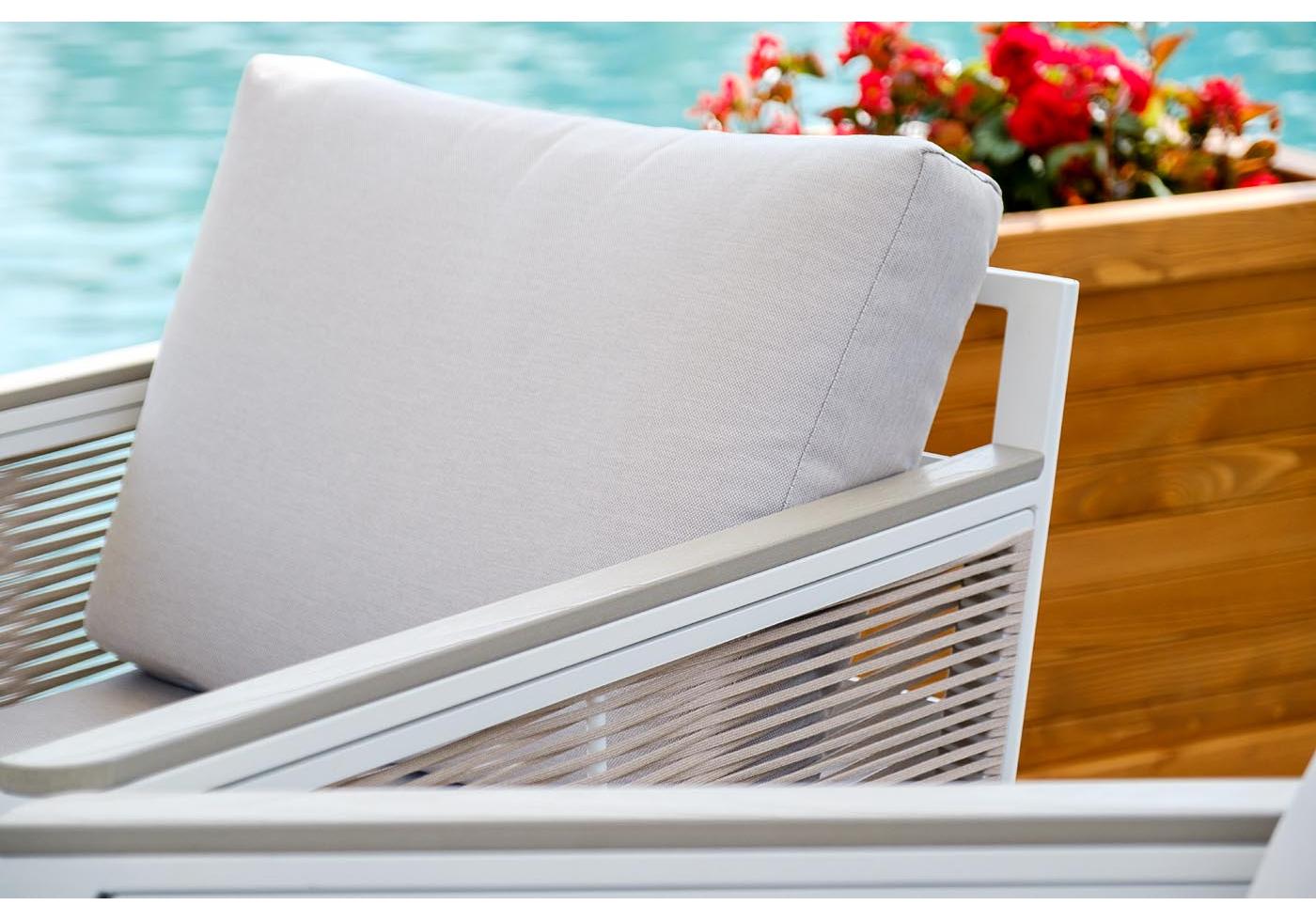 Кресло «Сан Ремо» можно использовать на открытой веранде, дачном участке или у бассейна. Данное кресло входит в комплект аналогичной лаунж-зоны.