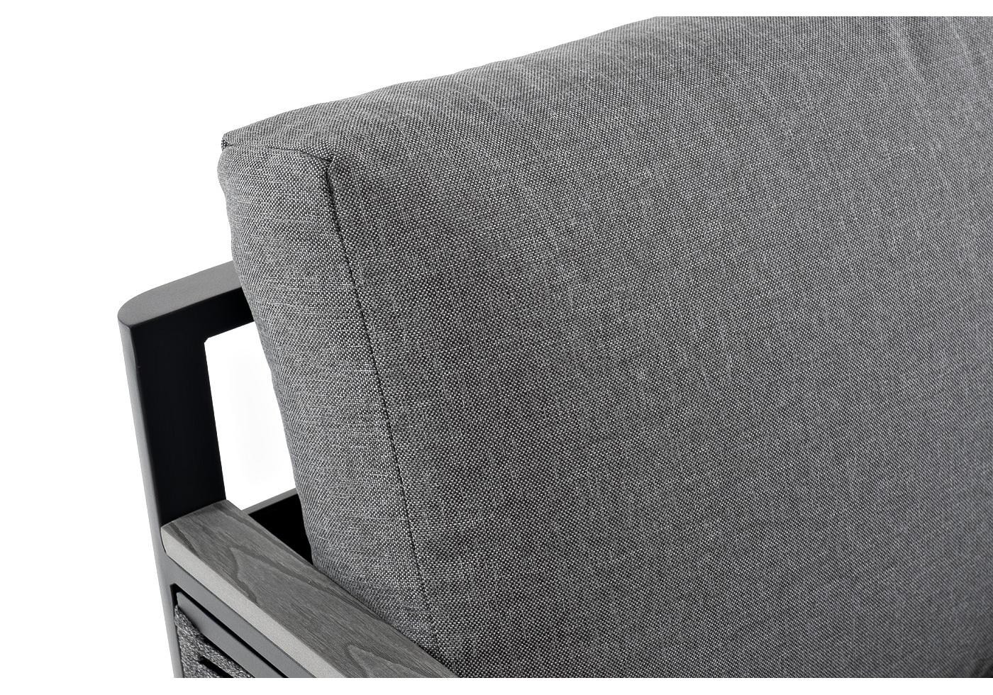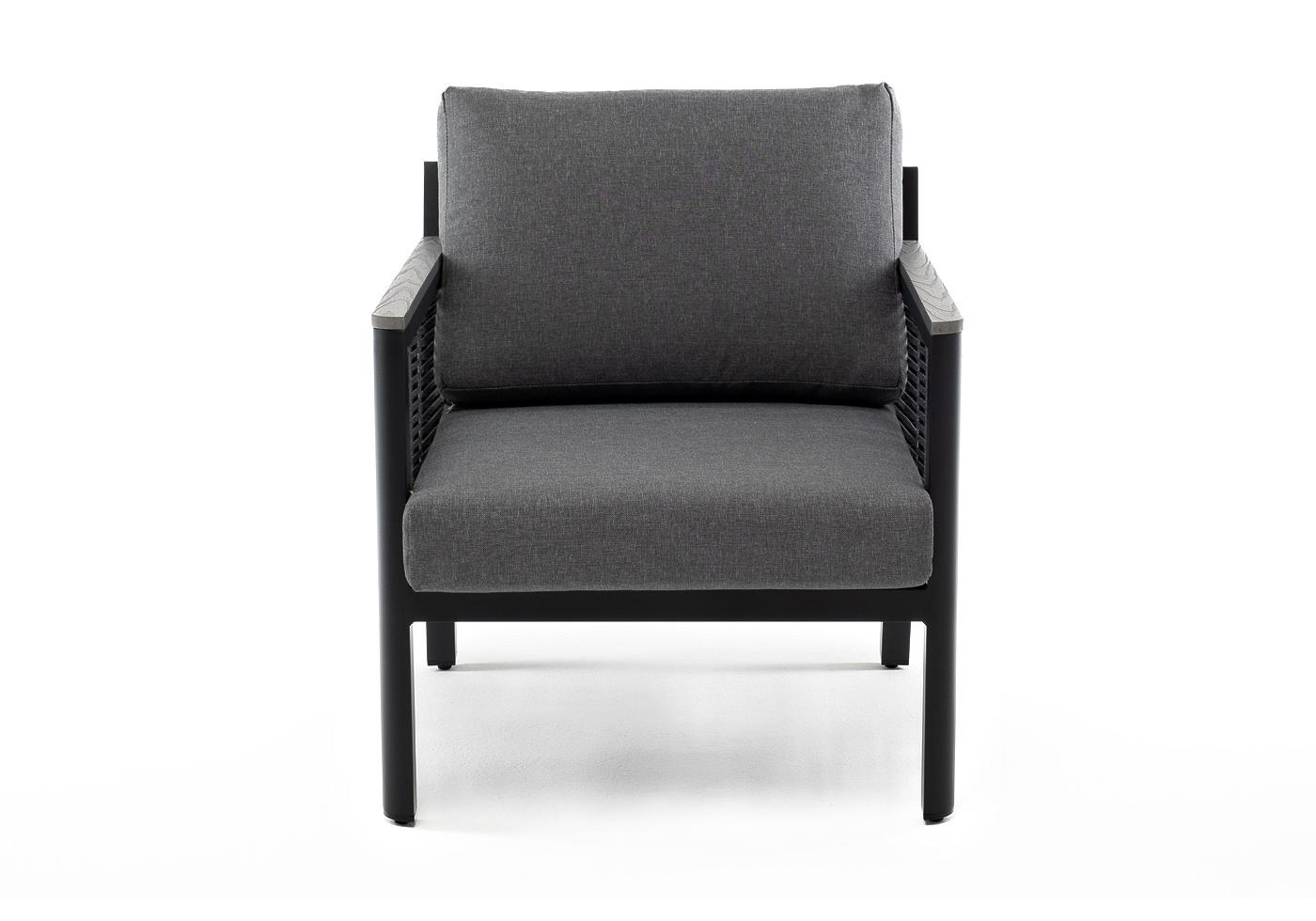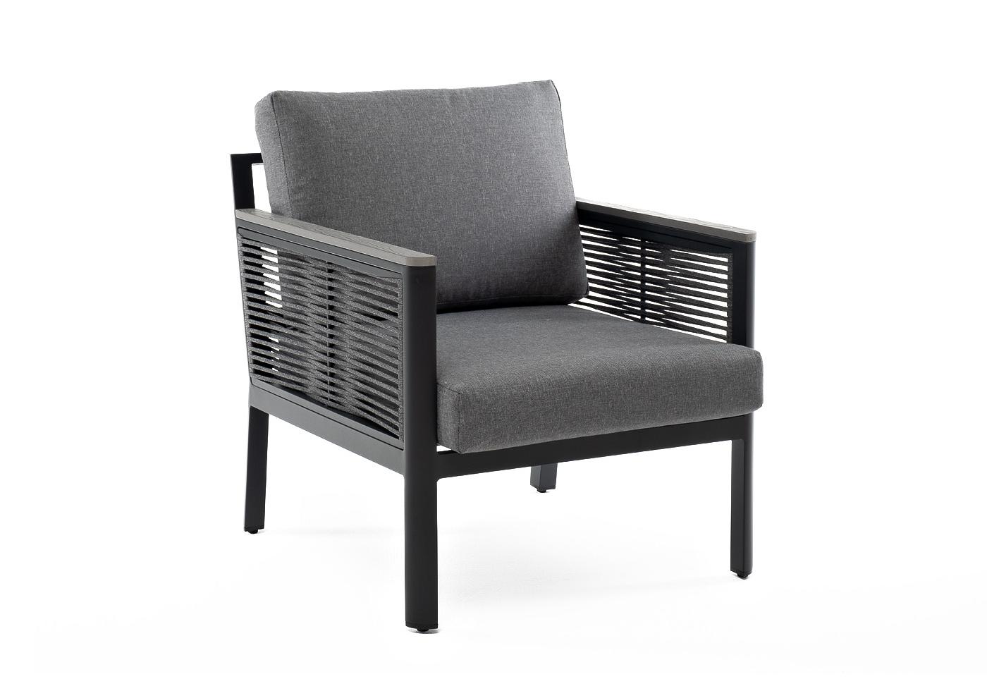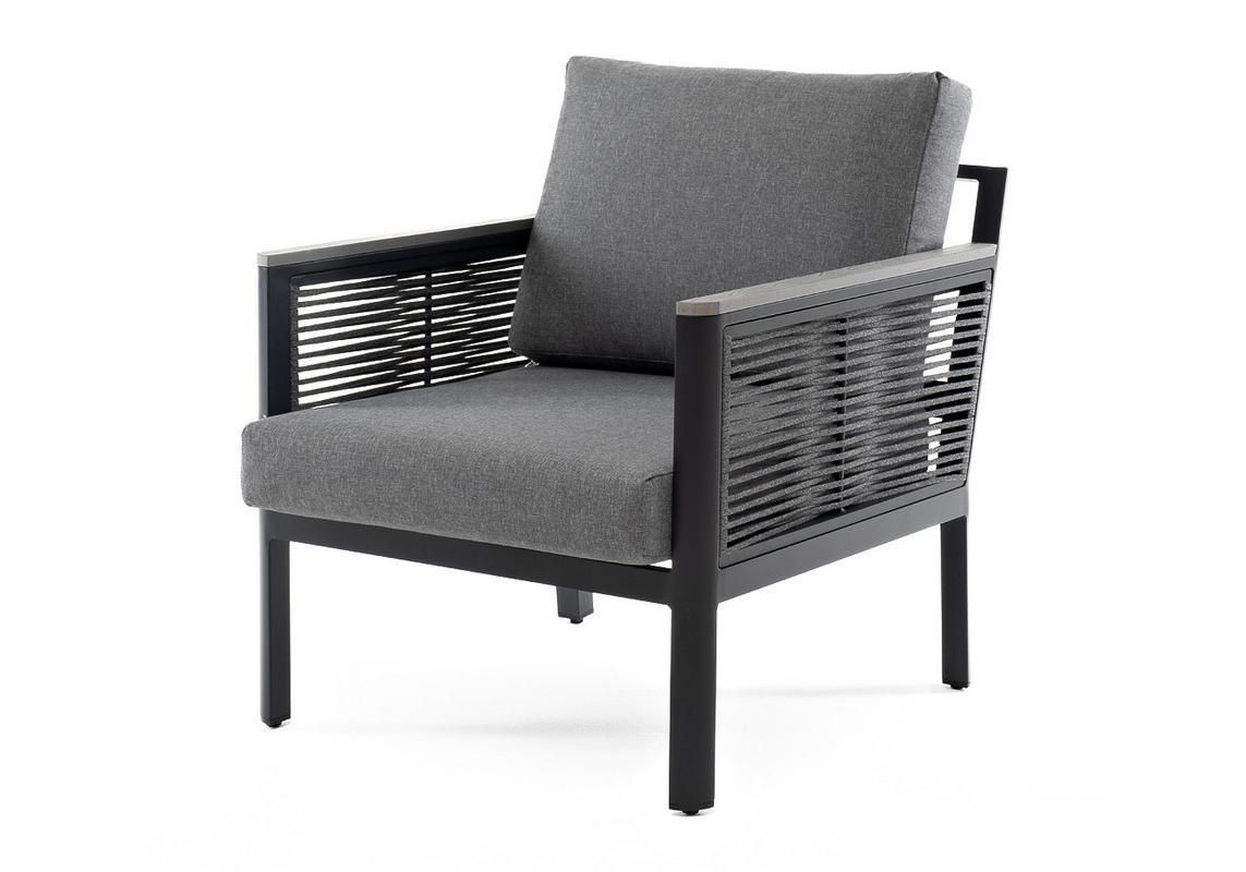 "Сан Ремо" кресло плетеное из роупа садовое, каркас алюминий темно-серый, роуп серый, ткань серая