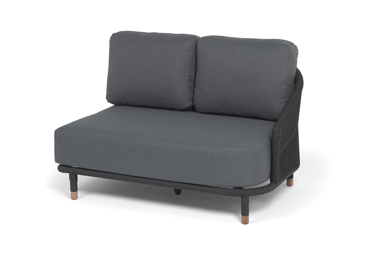 "Верона" левый модуль плетеный из роупа, каркас алюминий темно-серый (RAL7024) муар, роуп темно-серый круглый, ткань темно-серая 027, L131х89