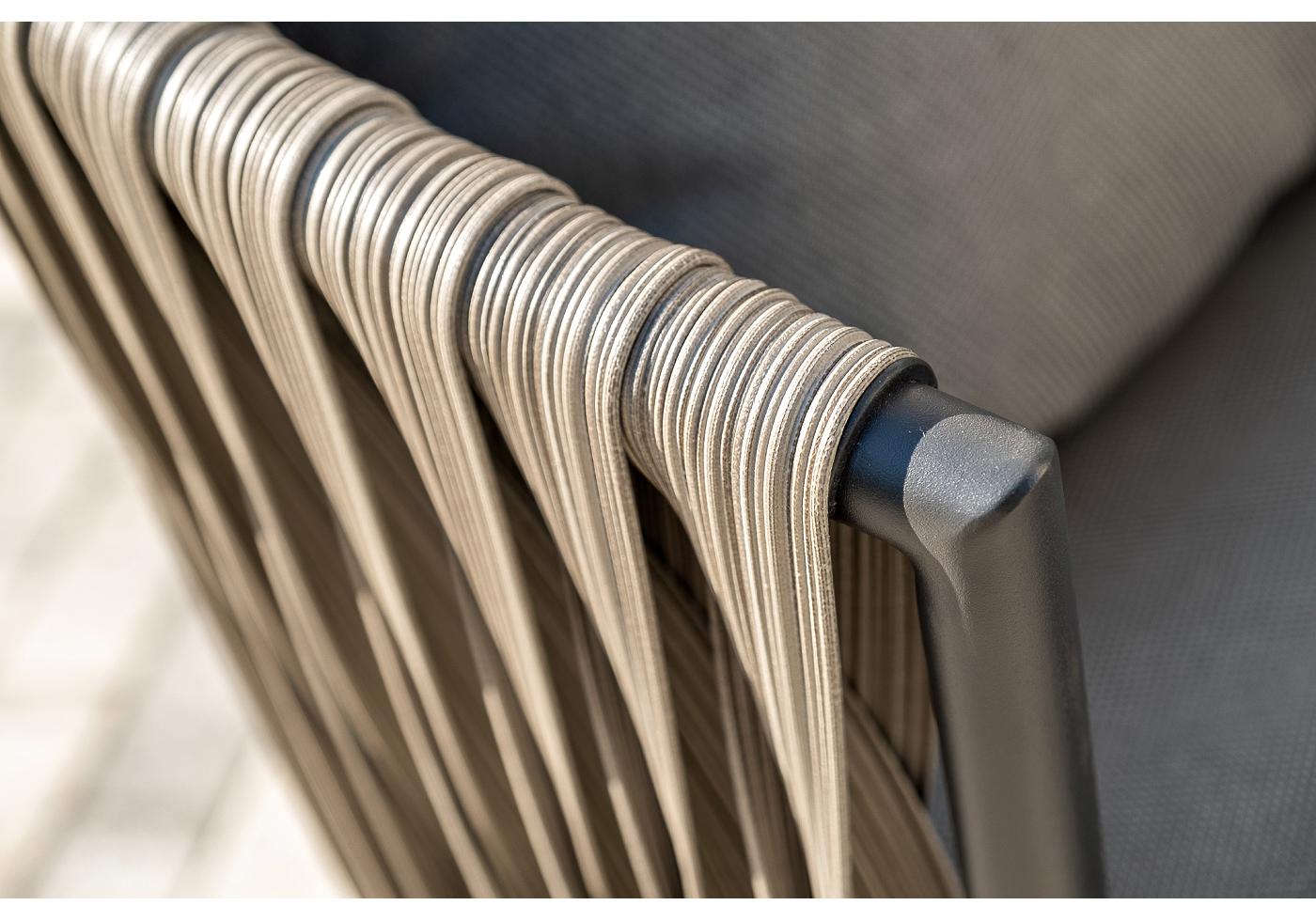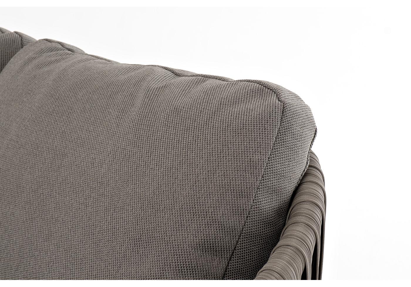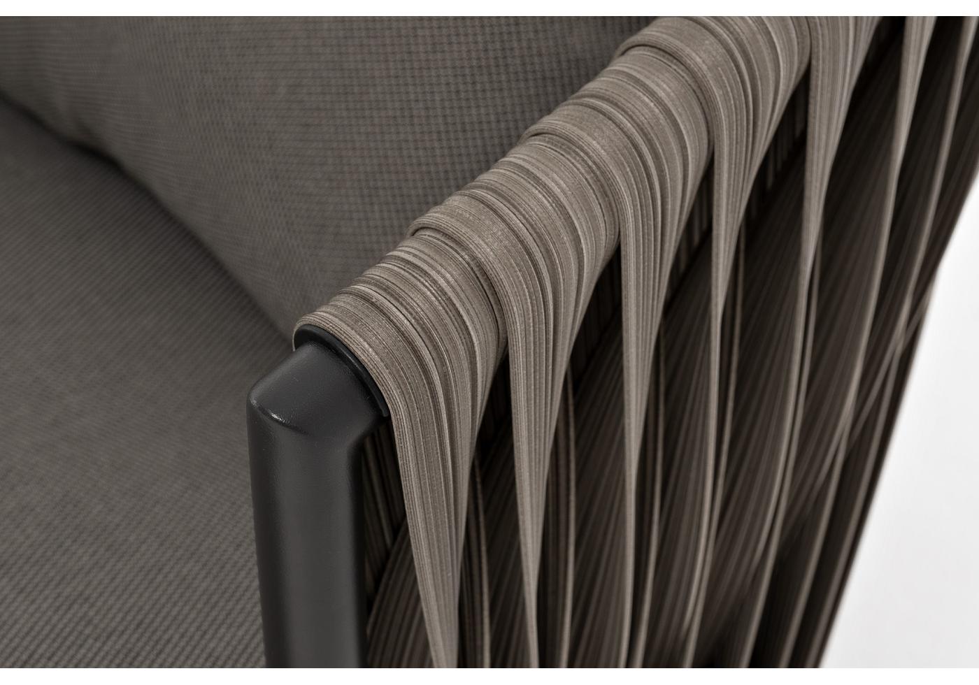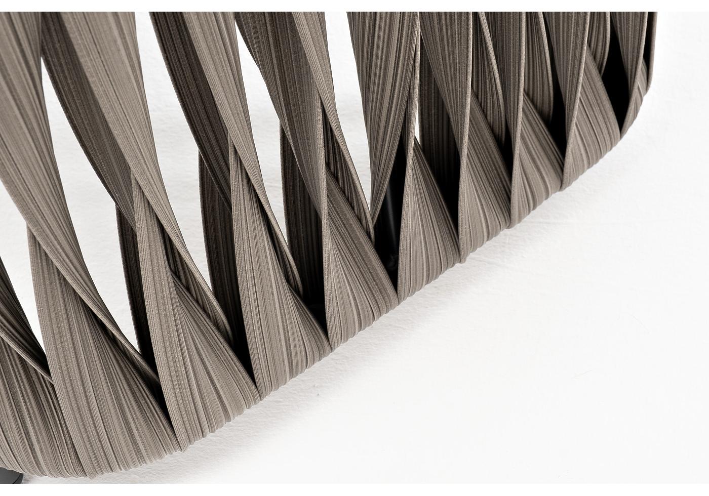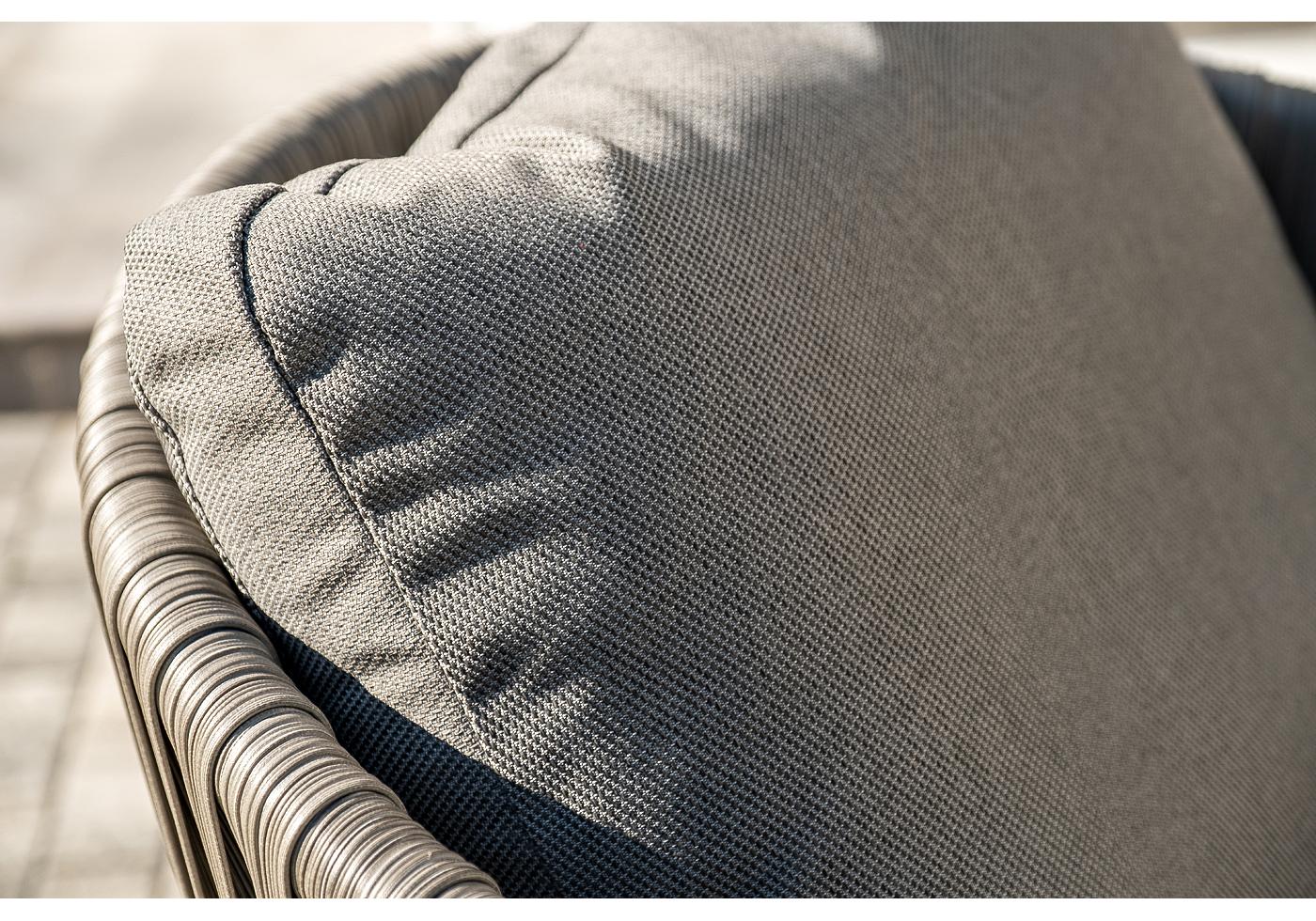 Из алюминия сделан устойчивый каркас мебели. Ее поверхность дополнена искусственным ротангом, из которого сделано ручное плетение - 50×3 мм, цвет графит.