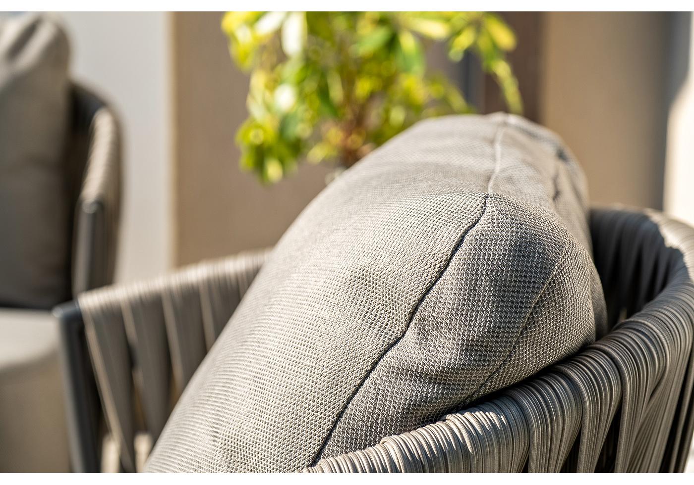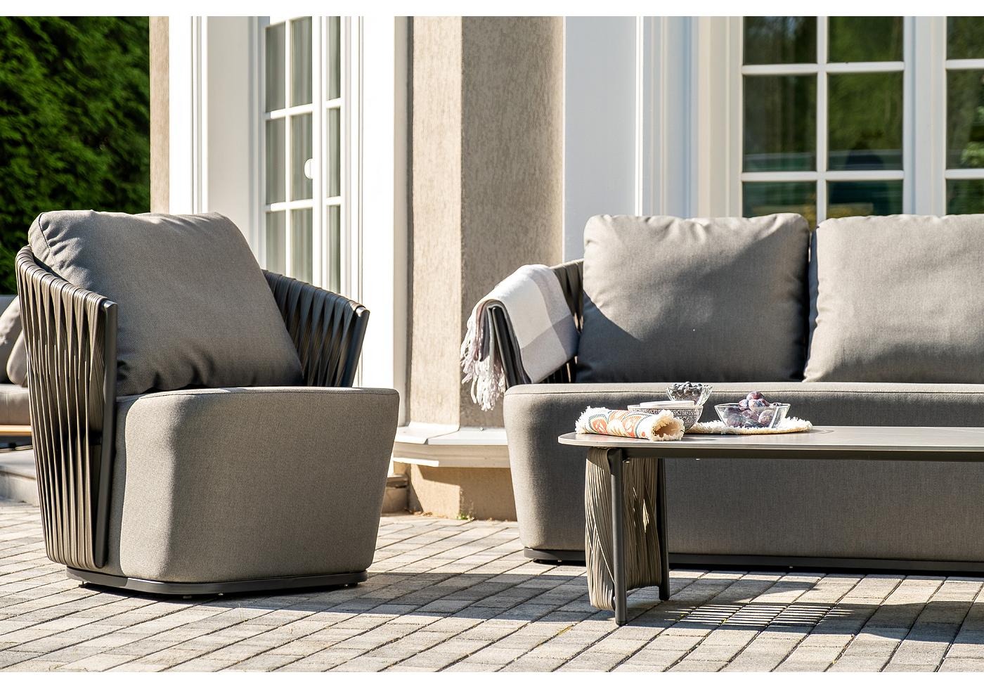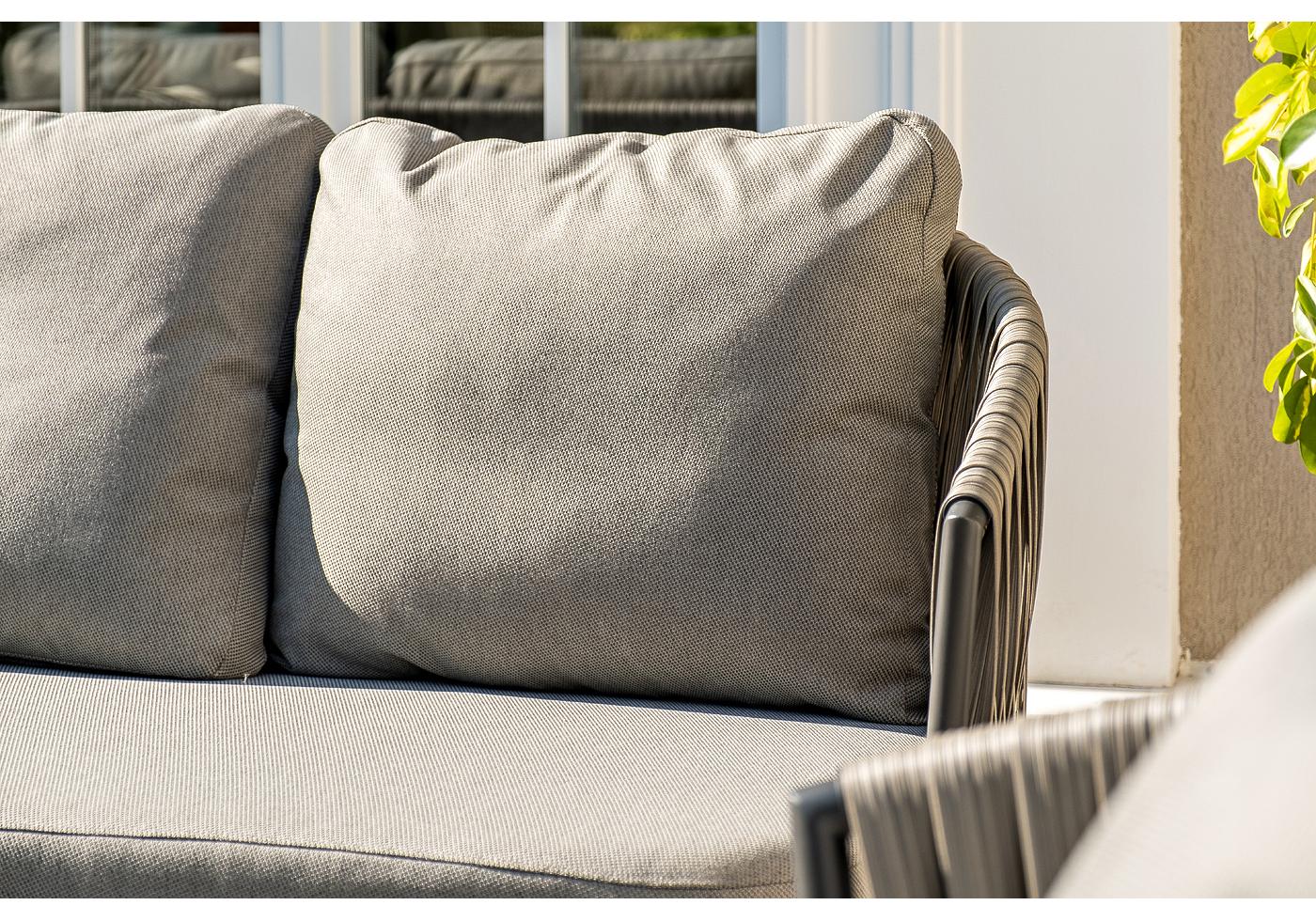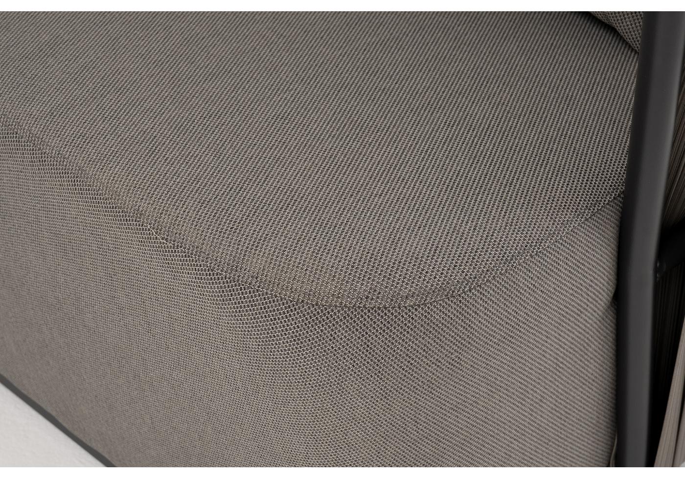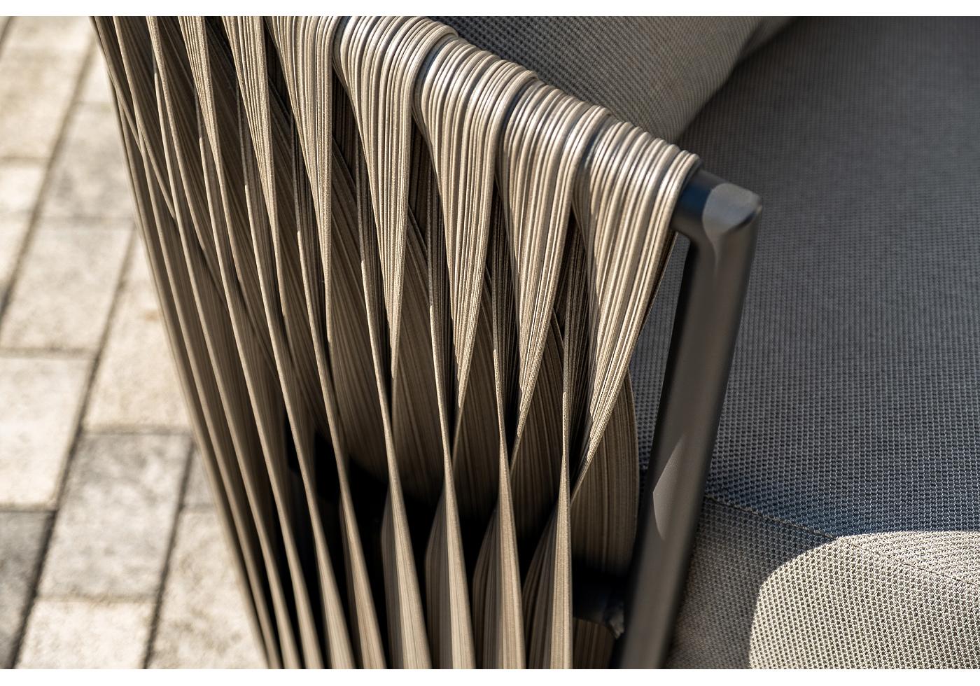 Из алюминия сделан устойчивый каркас мебели. Ее поверхность дополнена искусственным ротангом, из которого сделано ручное плетение - 50×3 мм, цвет графит.