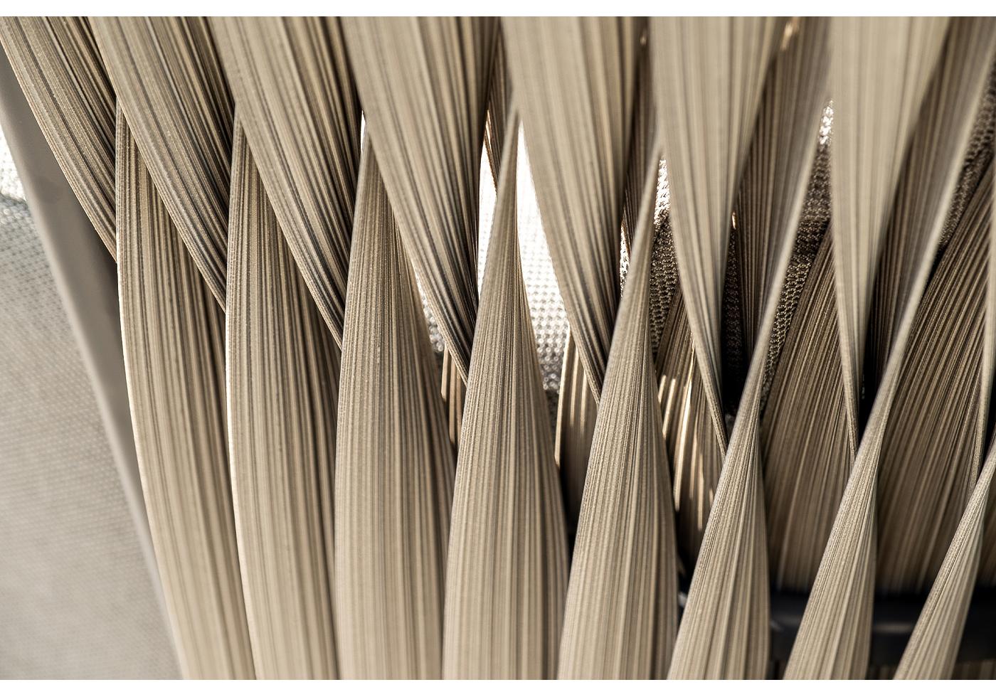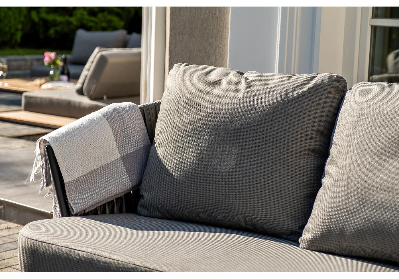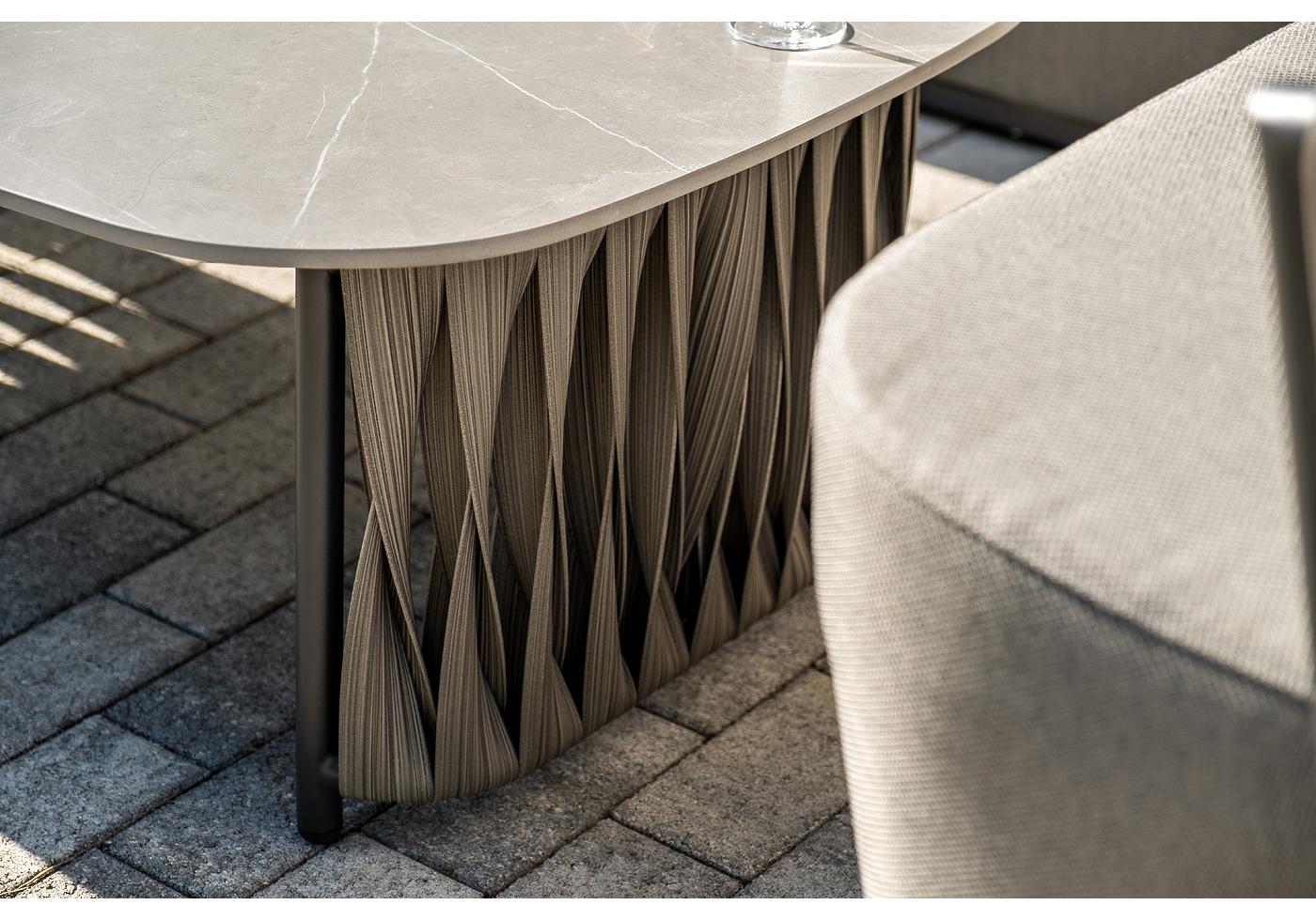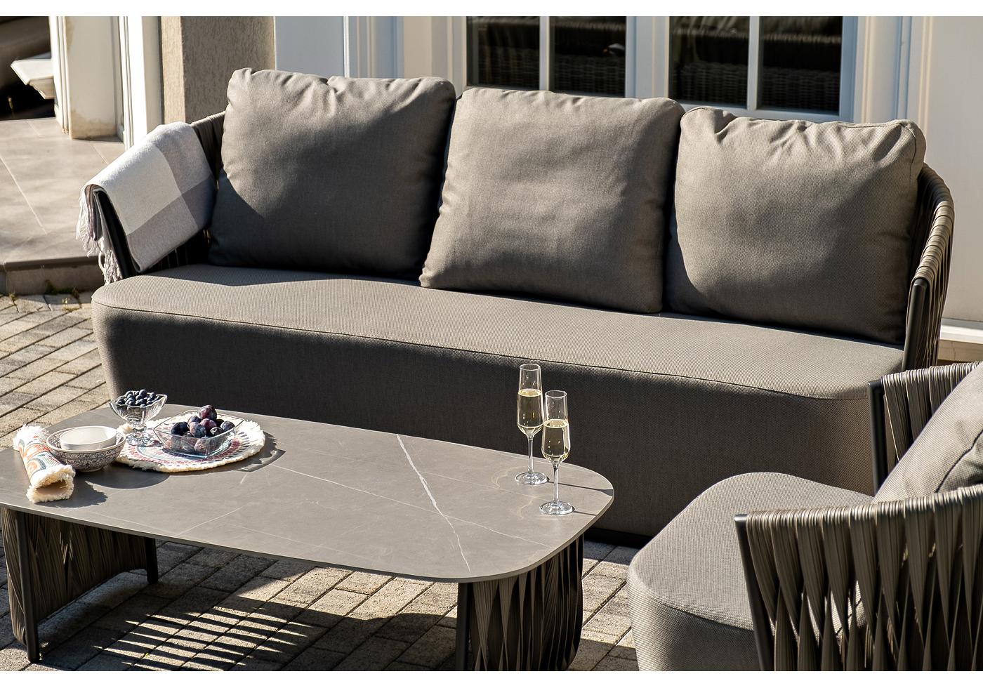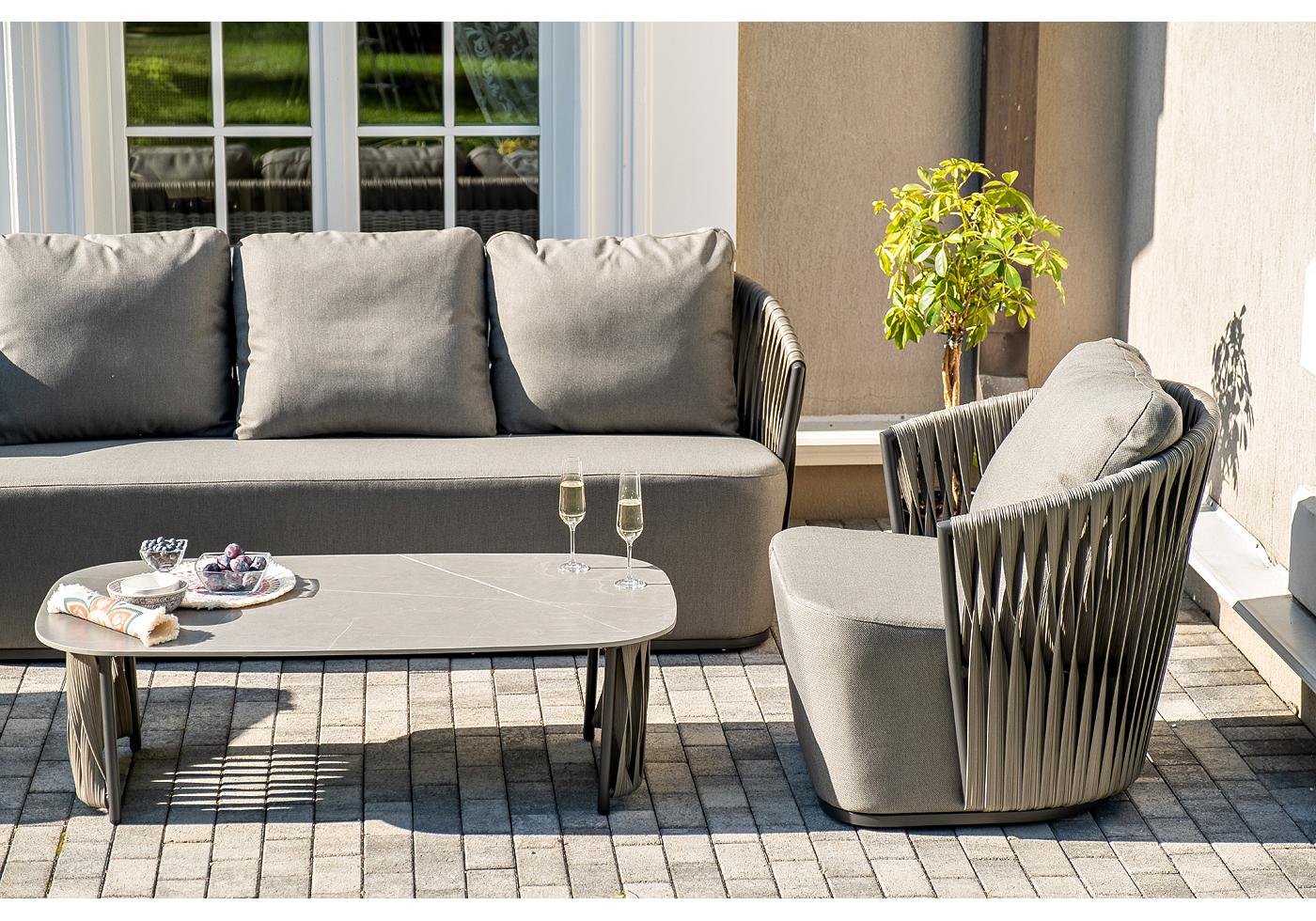 Из алюминия сделан устойчивый каркас мебели. Ее поверхность дополнена искусственным ротангом, из которого сделано ручное плетение - 50×3 мм, цвет графит.
