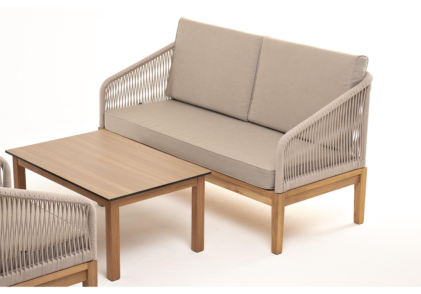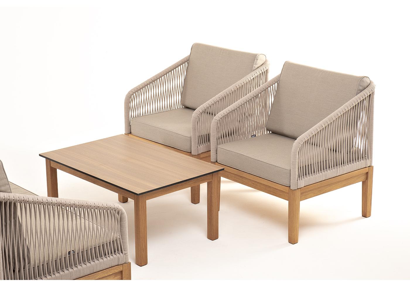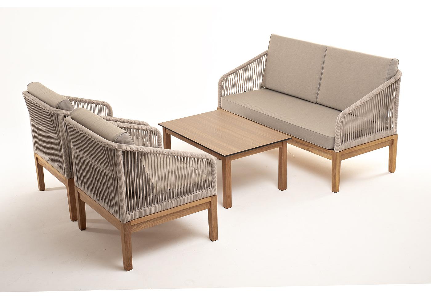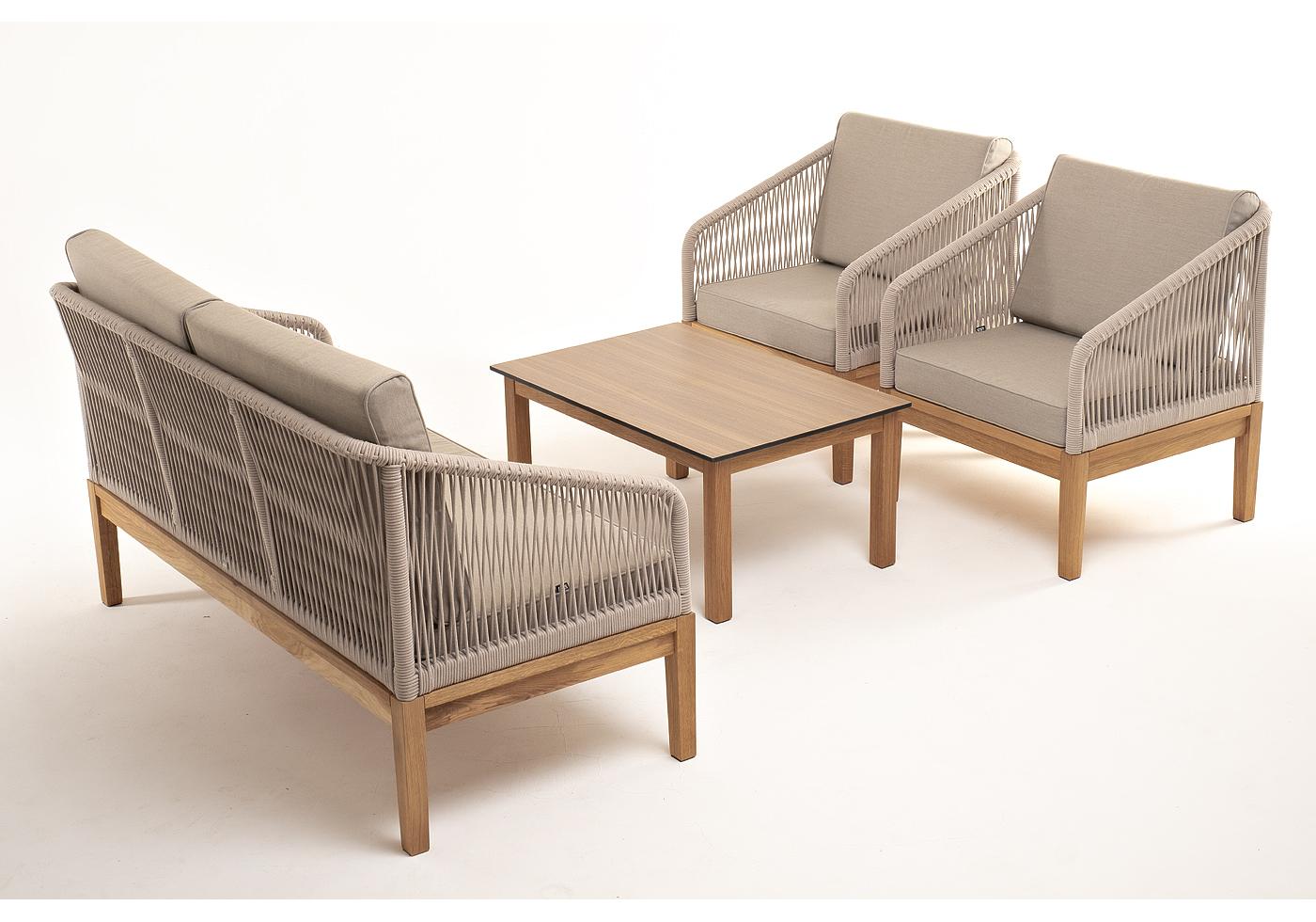 "Канны" лаунж-зона 4-местная из роупа со столиком "Канны" цвета "дуб", основание дуб, роуп бежевый