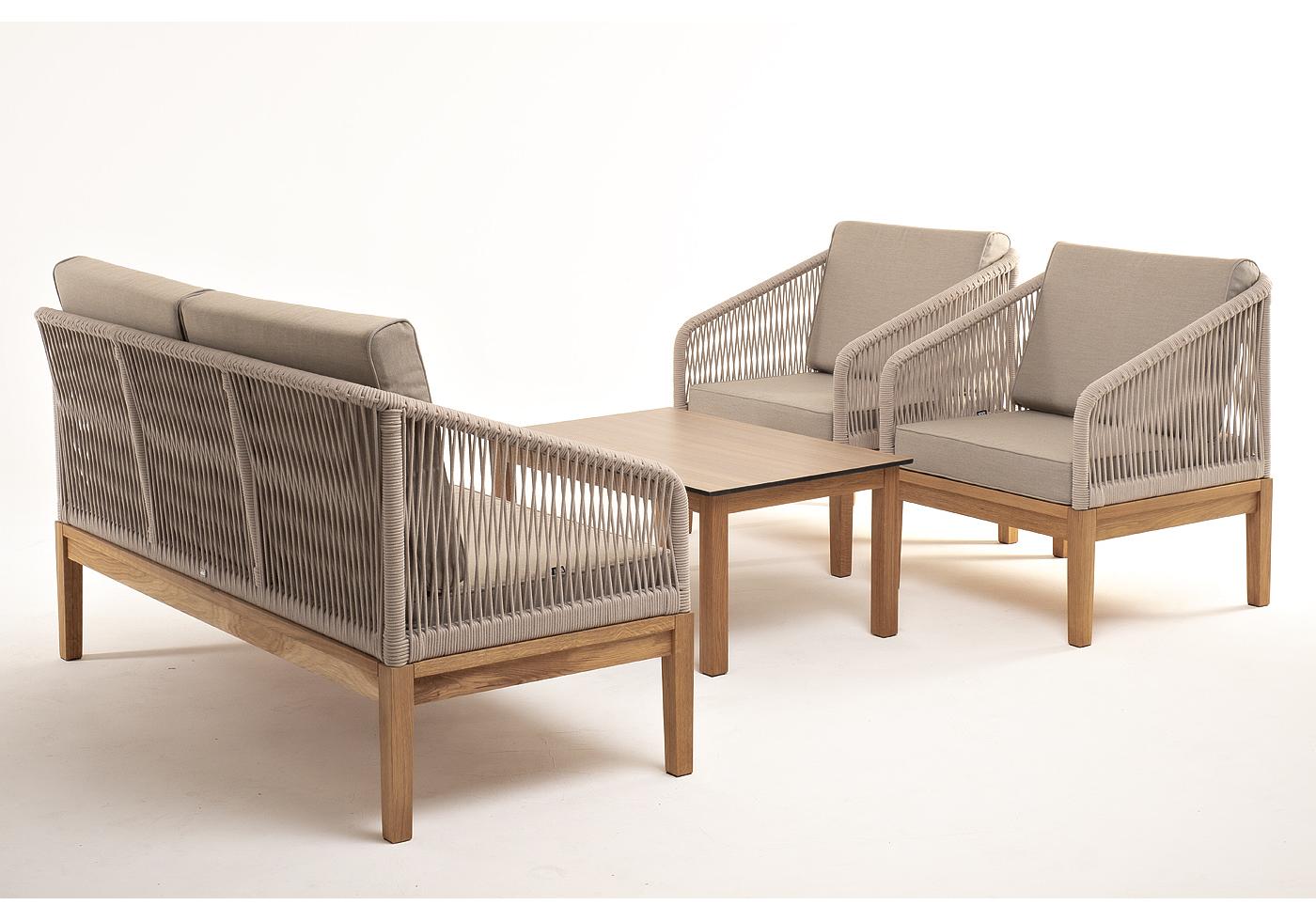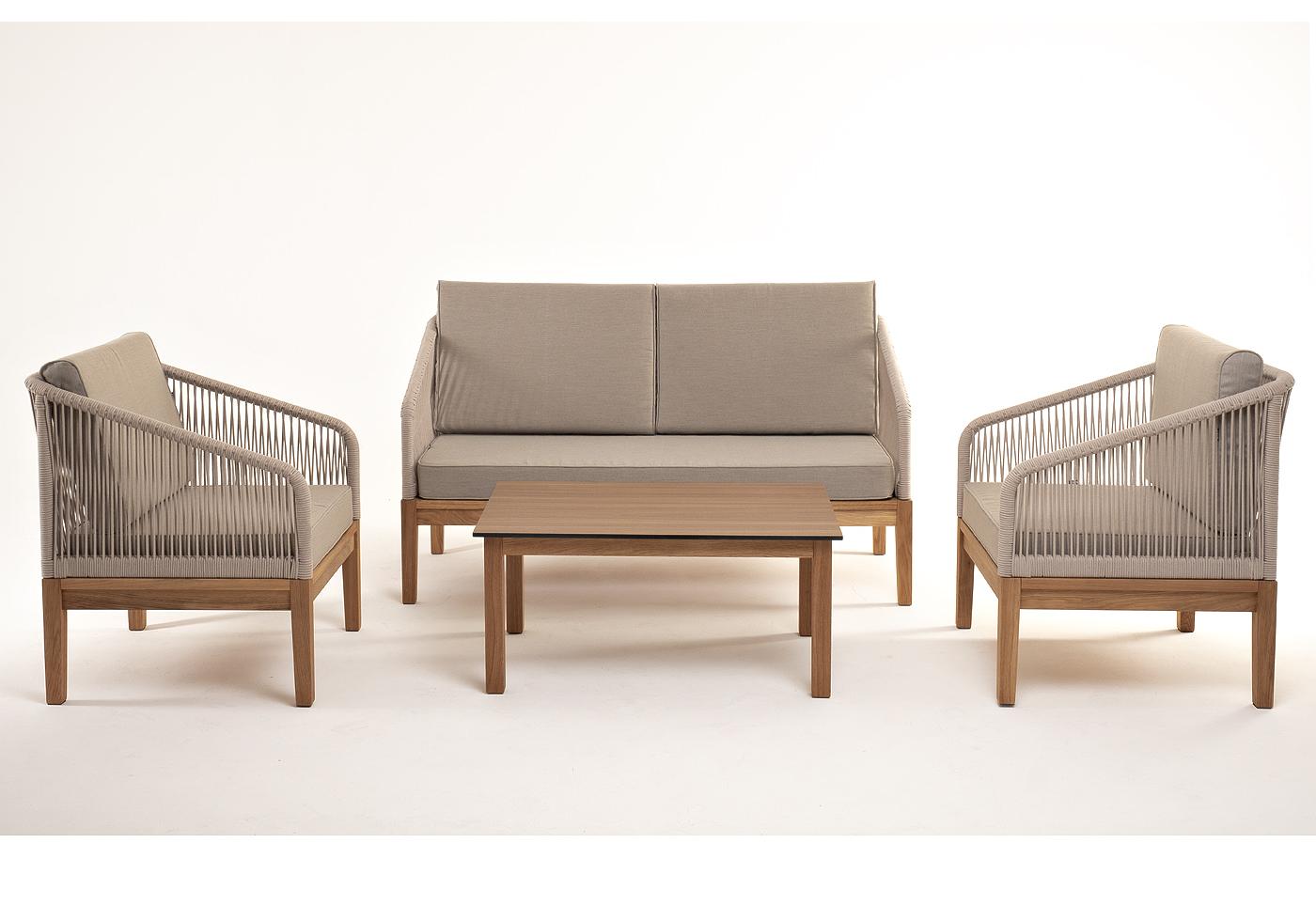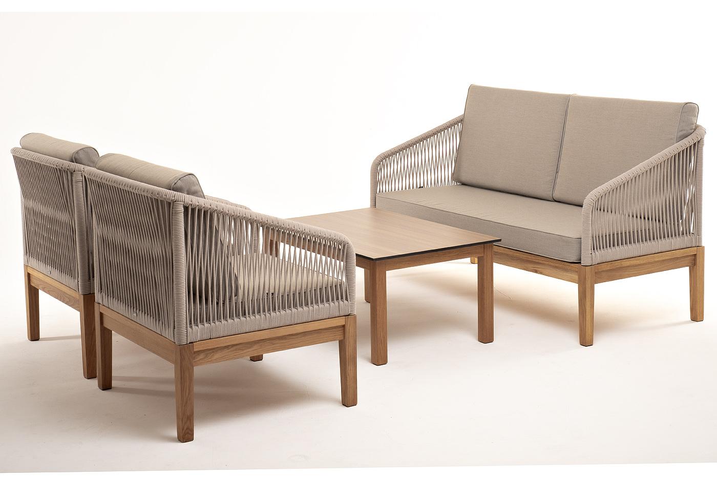 "Канны" лаунж-зона 4-местная из роупа со столиком "Канны" цвета "дуб", основание дуб, роуп бежевый