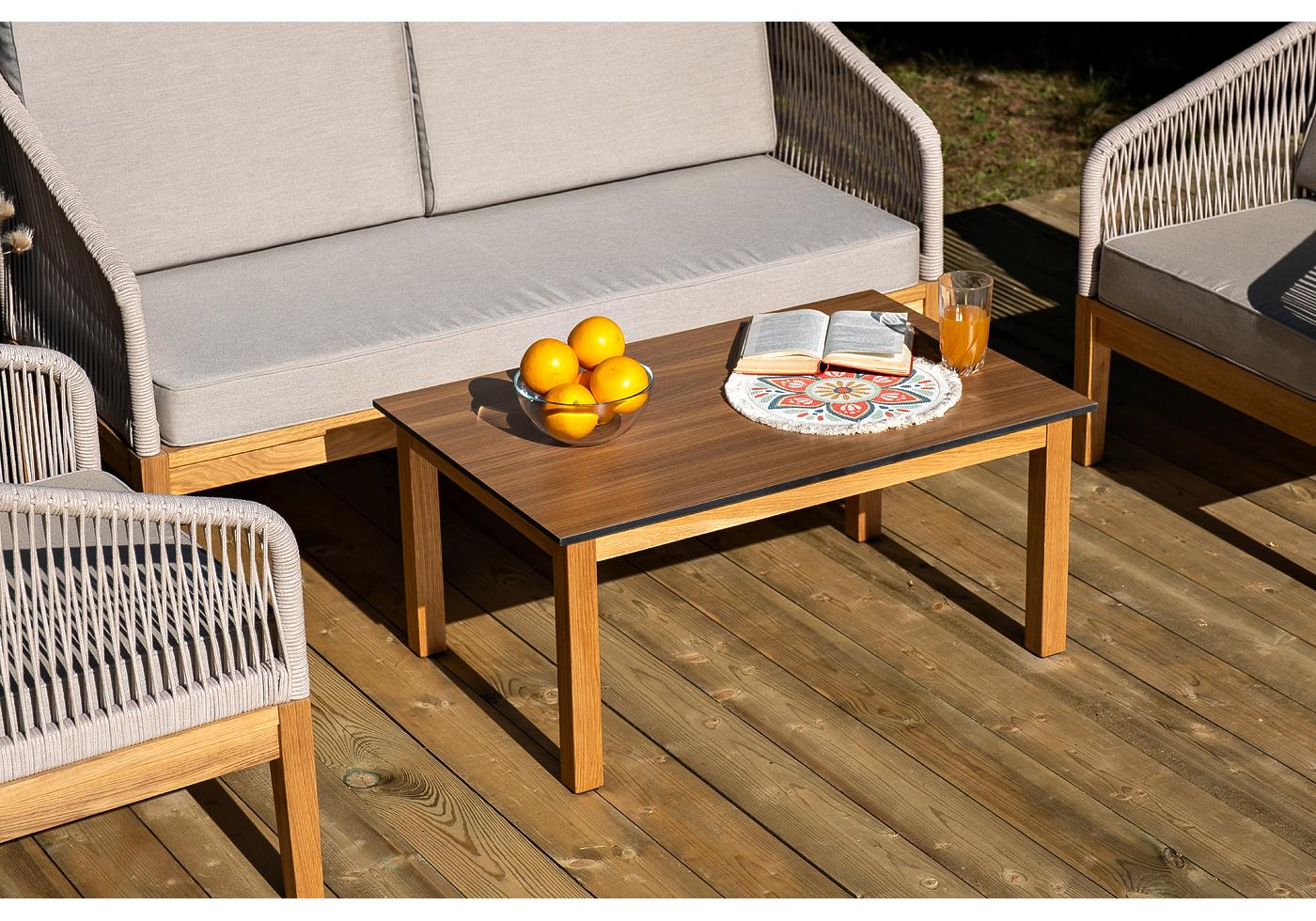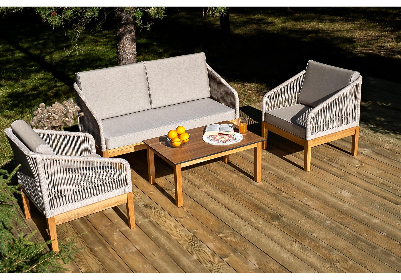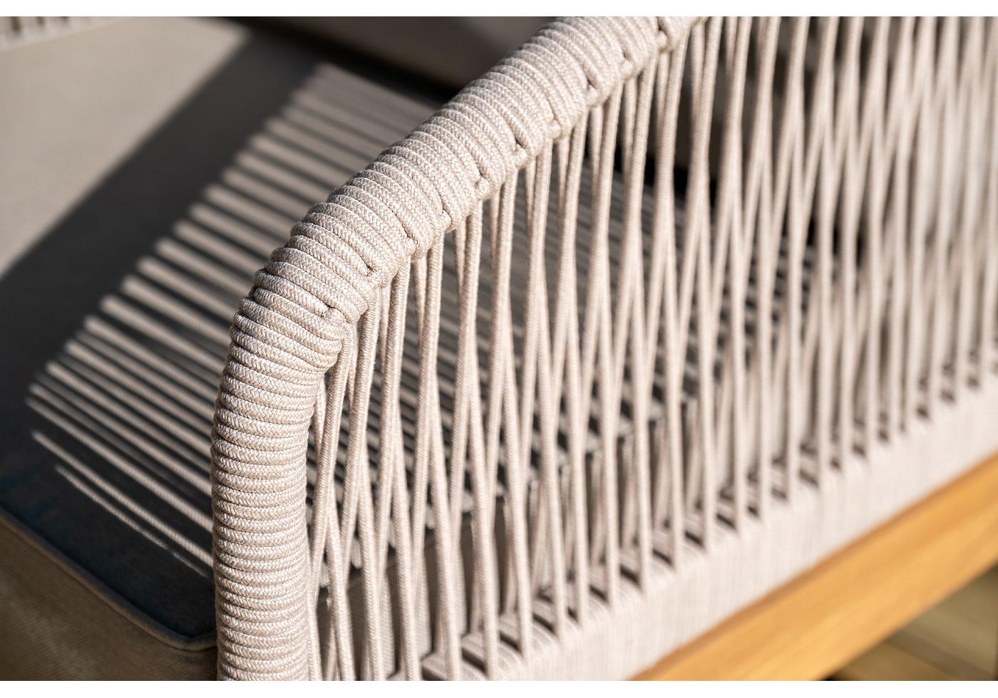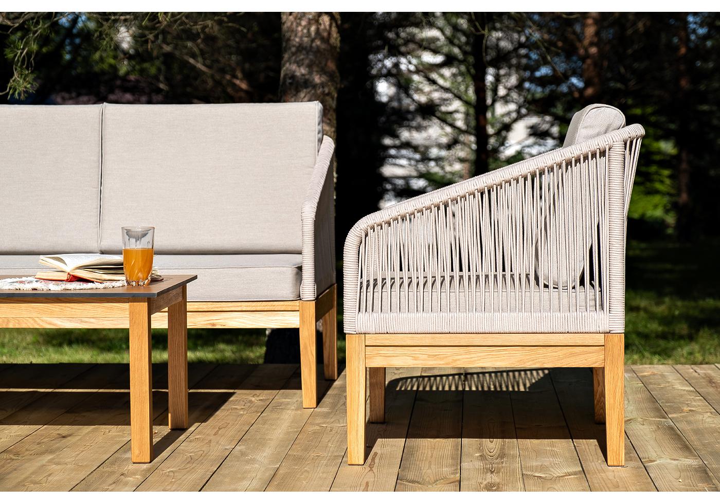 "Канны" лаунж-зона 4-местная из роупа со столиком "Канны" цвета "дуб", основание дуб, роуп бежевый