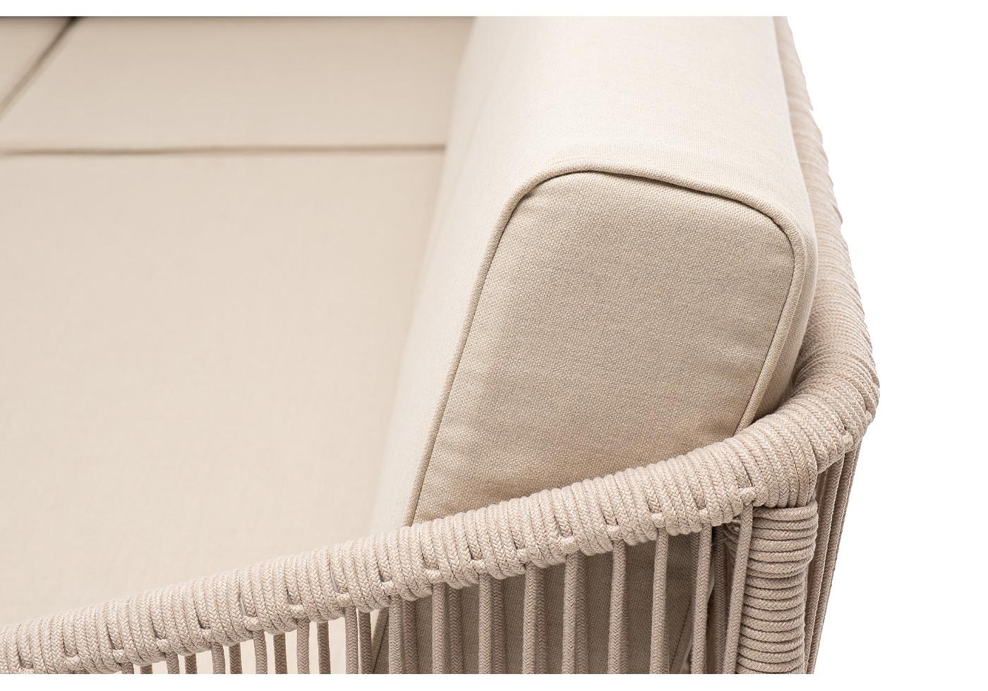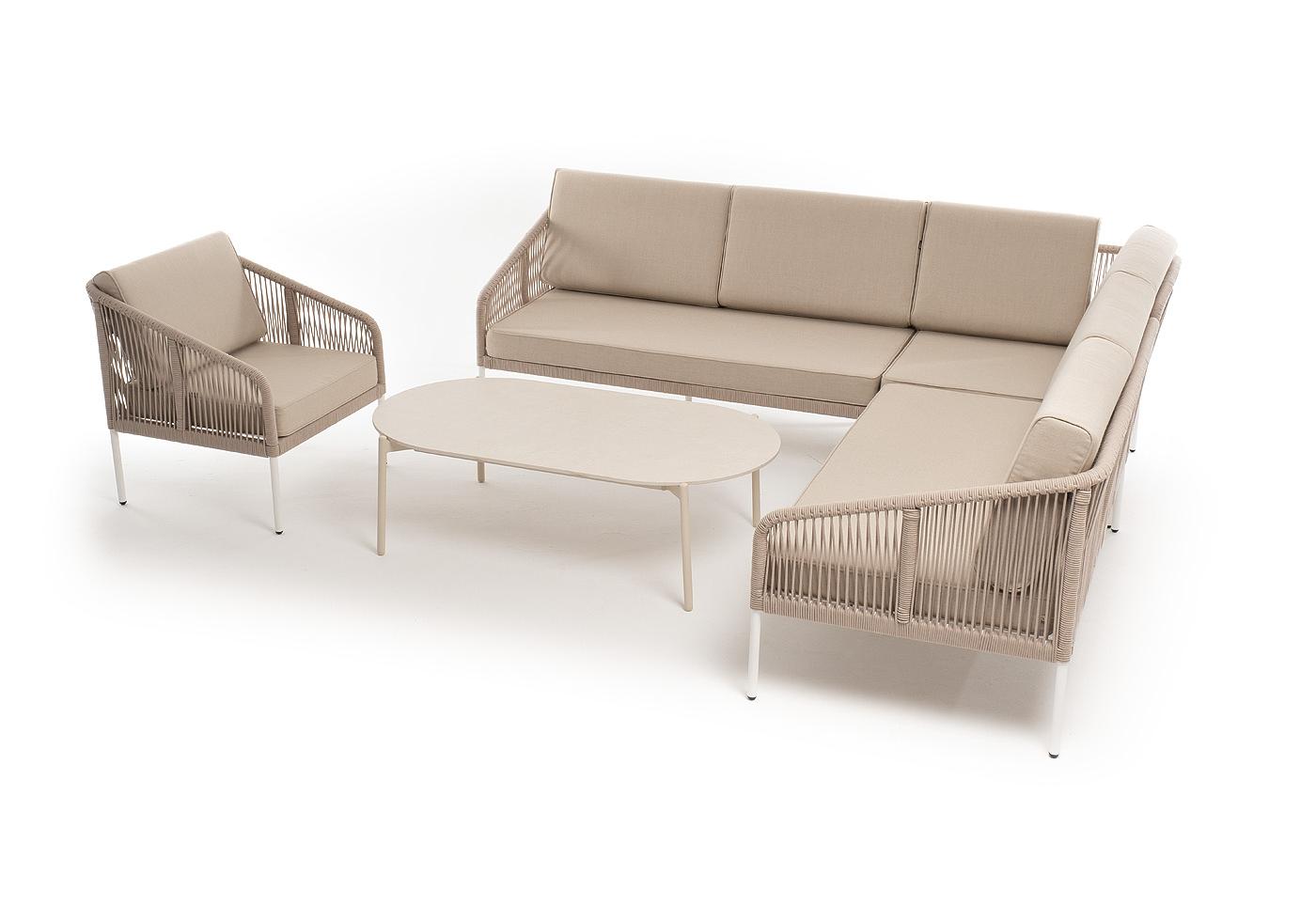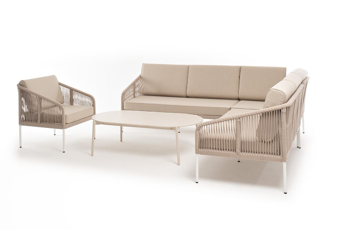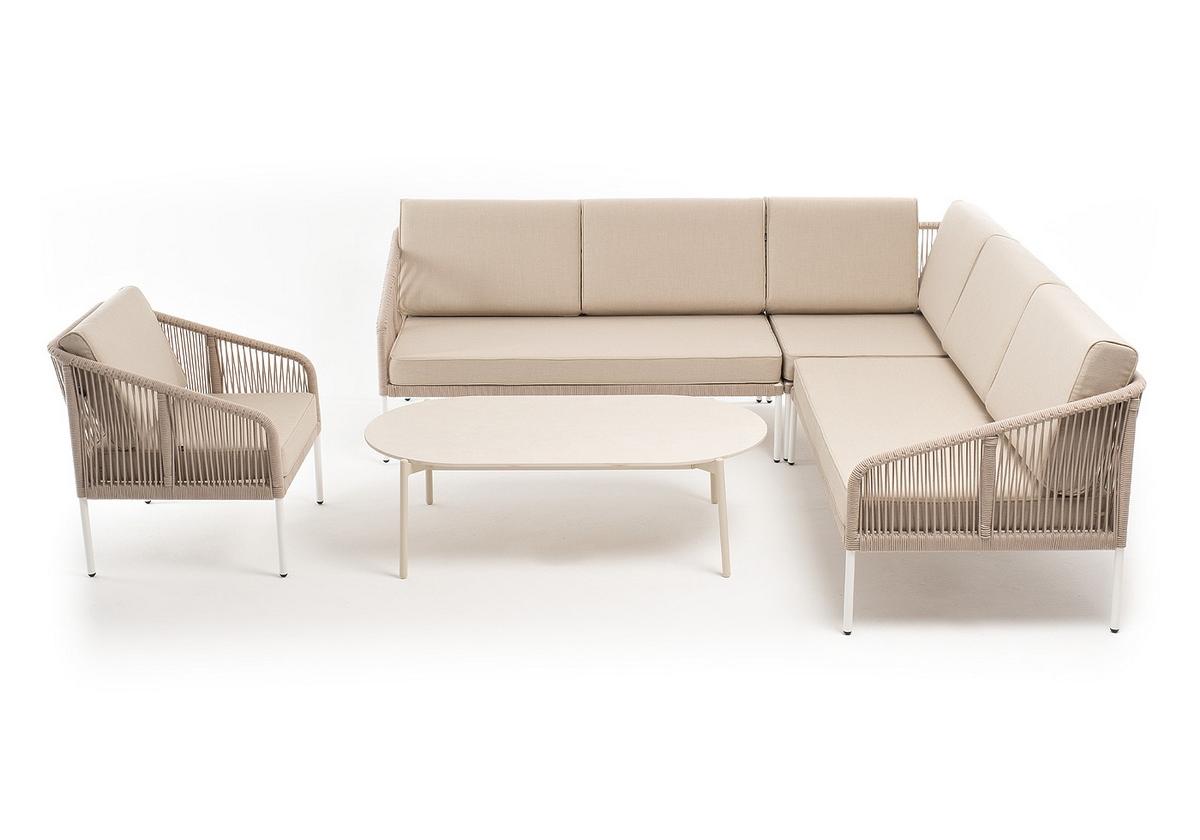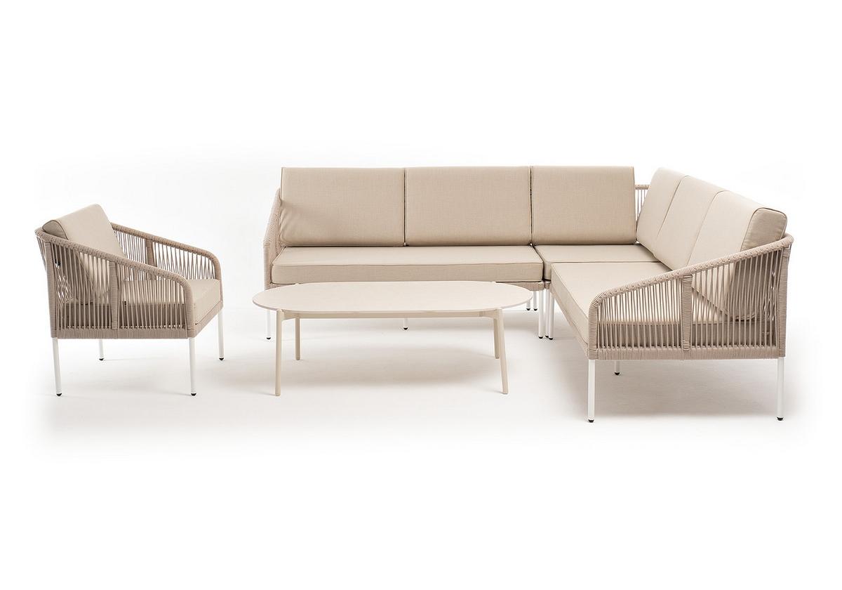 "Канны" модульная угловая лаунж-зона из роупа (веревки) со столом "Диего" (молочный), цвет бежевый