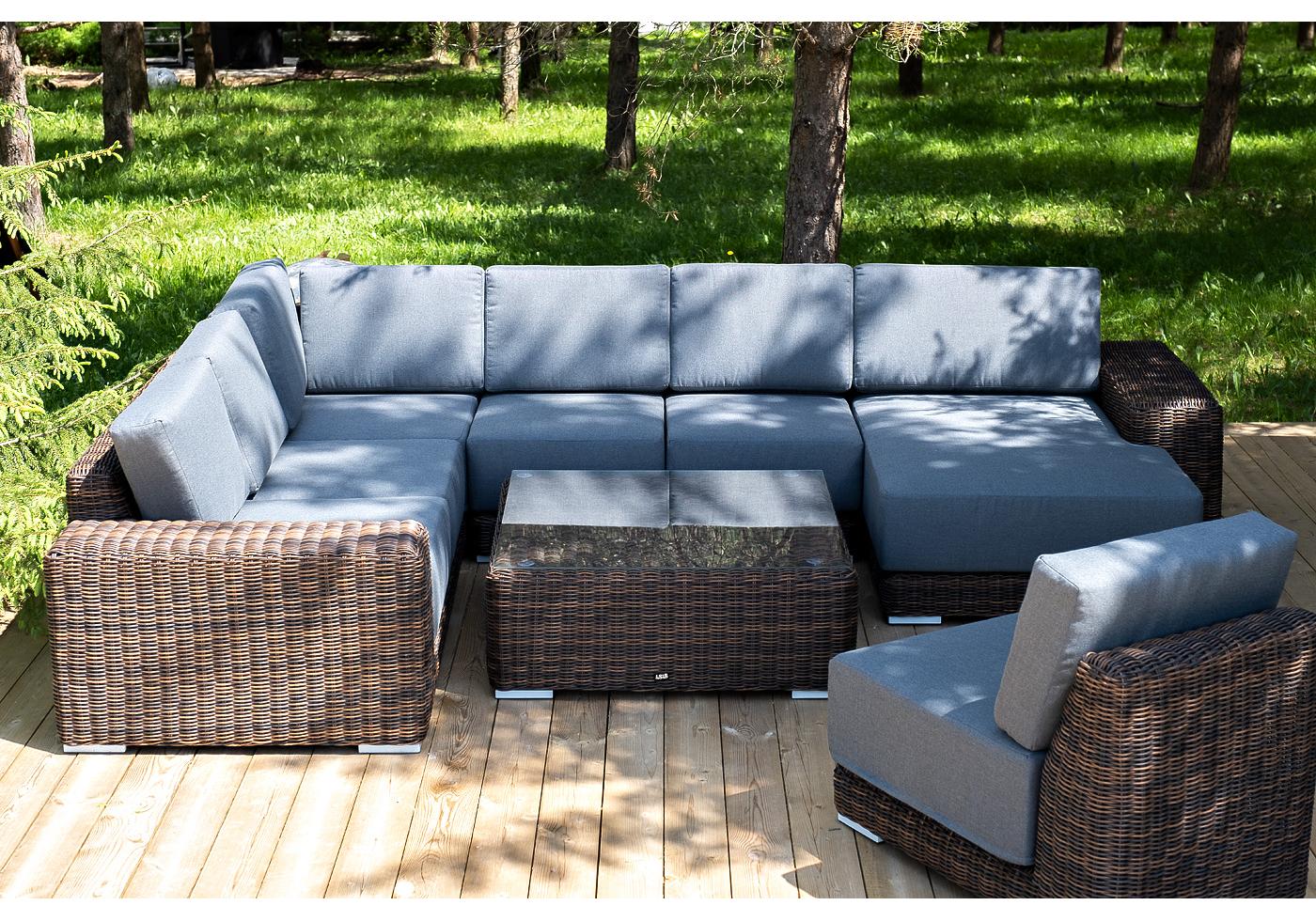 При изготовлении каркаса всех составляющих комплекта используется высокопрочный алюминий. Он дополнен круглым плетением из искусственного р "Капри" кушетка из искусственного ротанга, цвет коричневый 1шт. 1 460Х1 100Х650, "Капри" модуль диванный правый с подушками, цвет коричневый 1шт. 1 500Х900Х650, "Капри" модуль диванный прямой с подушками, цвет коричневый 3шт. 600Х900Х650, "Капри" модуль диванный угловой с подушками, цвет коричневый 1шт. 900Х900Х650, "Капри" журнальный столик плетеный, цвет коричневый 1шт. 950Х950Х350,