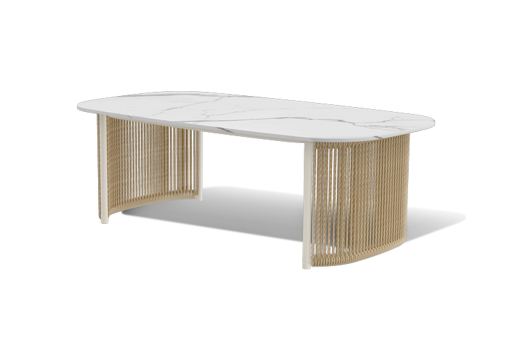 Комплект выполнен из алюминиевого каркаса, окрашенного порошковой износостойкой краской. Оттенок - «слоновая кость». Искусственный ротанг соломенного цвета украшает мебель в качестве круглого ручного плетения - 7 мм.