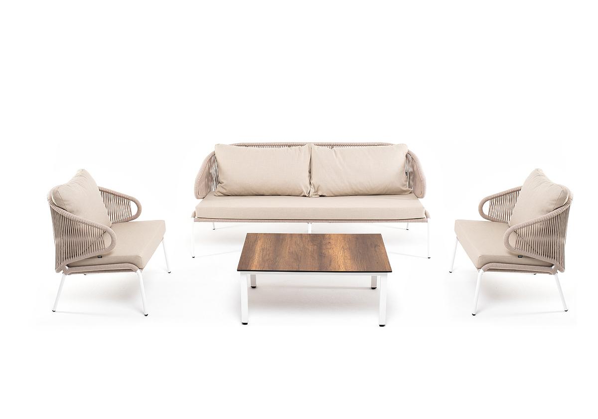 "Милан" лаунж-зона 5-местная плетеная из роупа (веревки), каркас алюминиевый белый, роуп бежевый