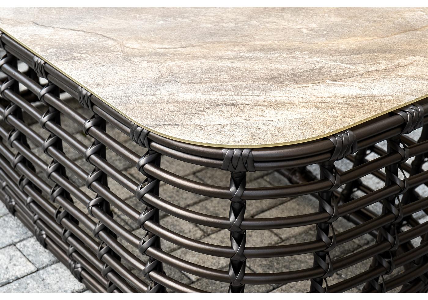 Модели имеют алюминиевый каркас, который оплетен вручную искусственным ротангом бронзового цвета.