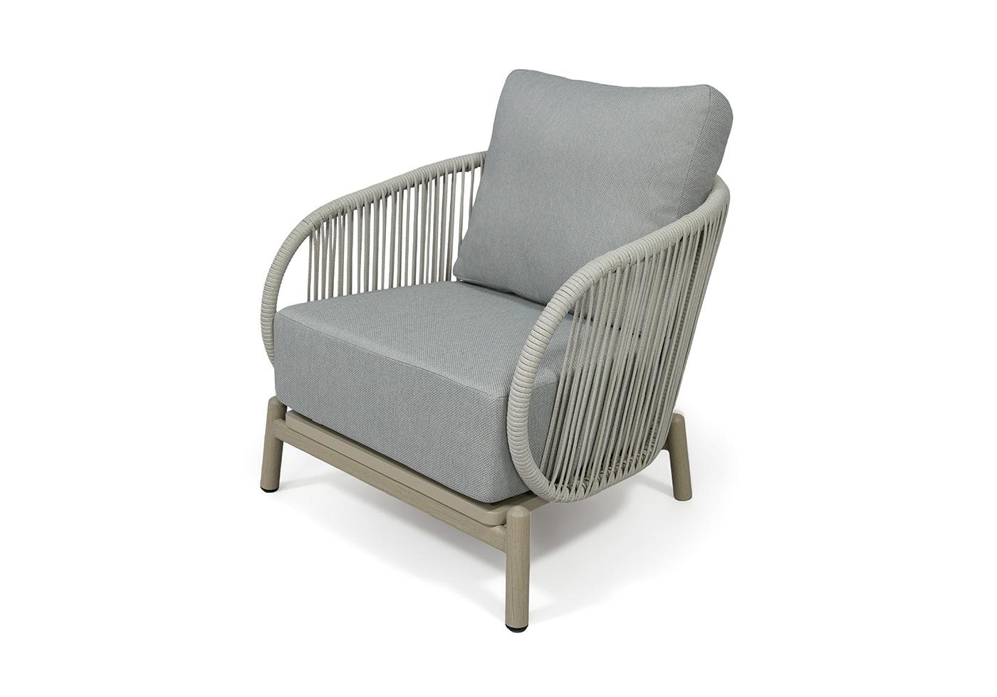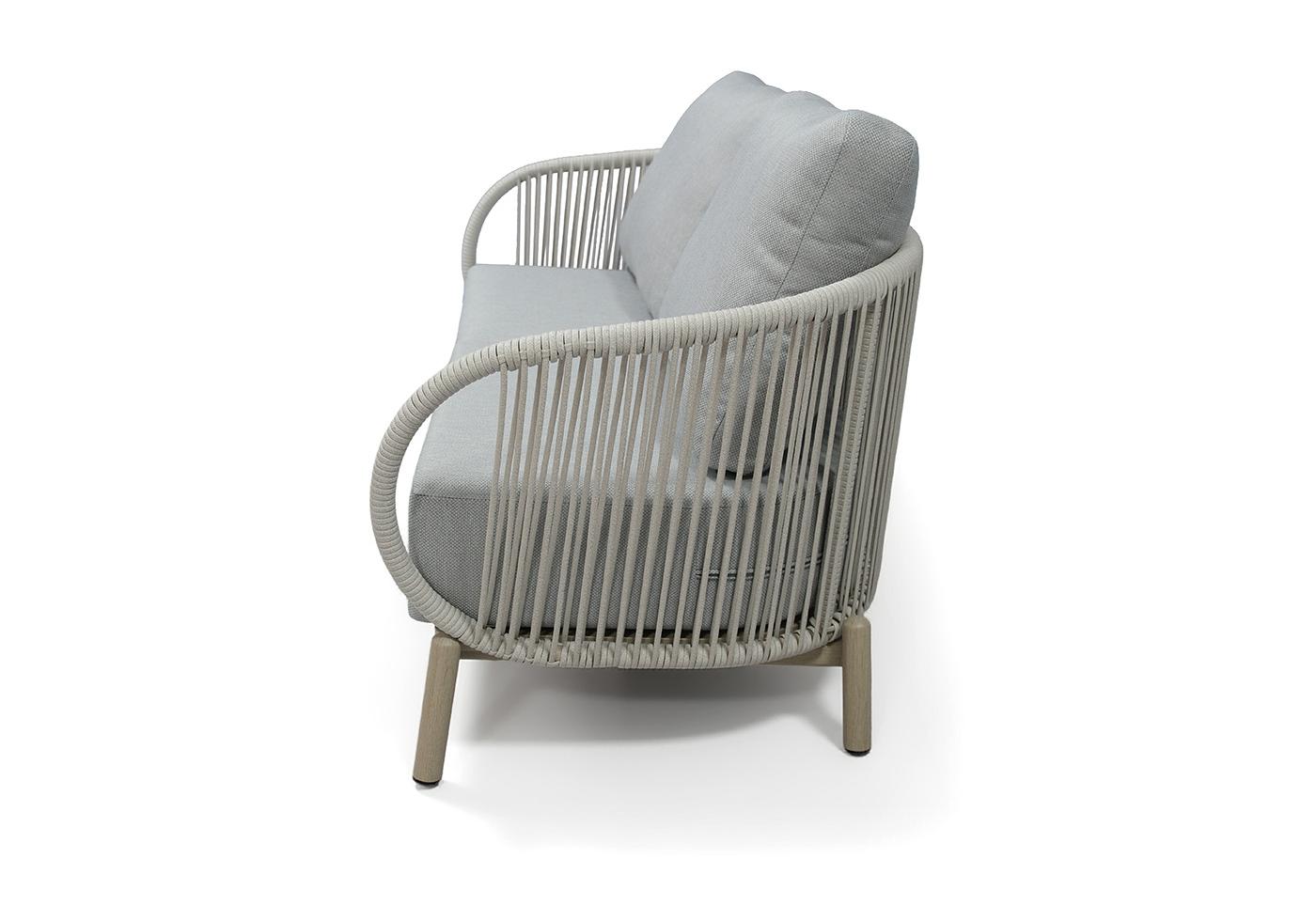 В основе мебели - алюминиевый каркас и круглый искусственный ротанг. Каркас оплетен с помощью ручного метода и представлен в светло-сером цвете.