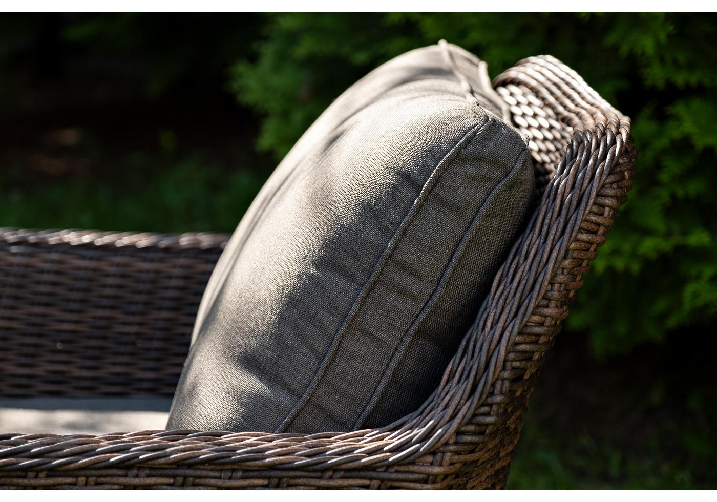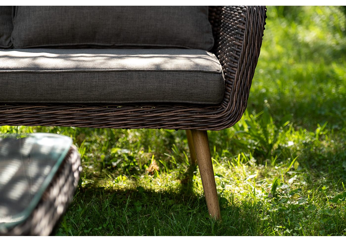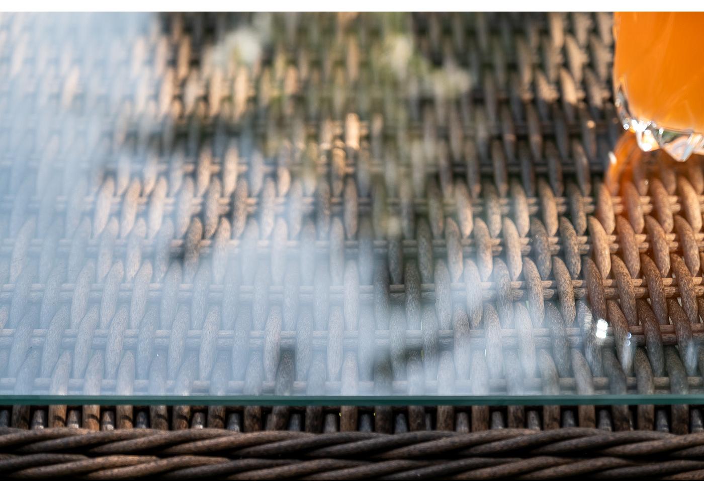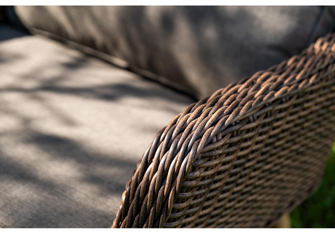 Каркас всей группы выполнен из прочного алюминия, который оплетен круглым искусственным ротангом. Цвет – коричневый.