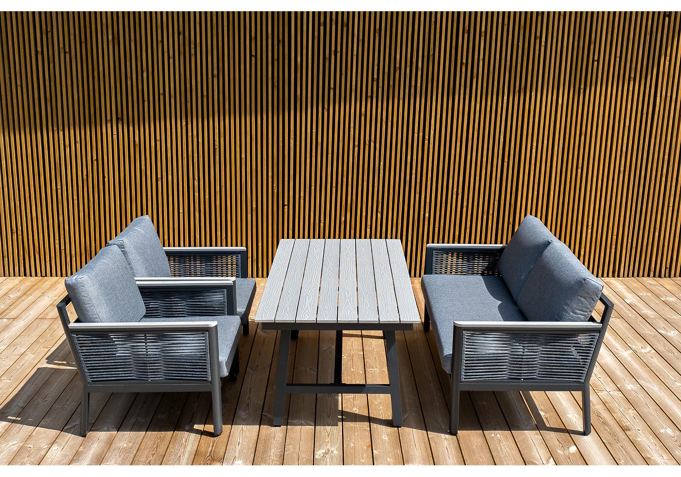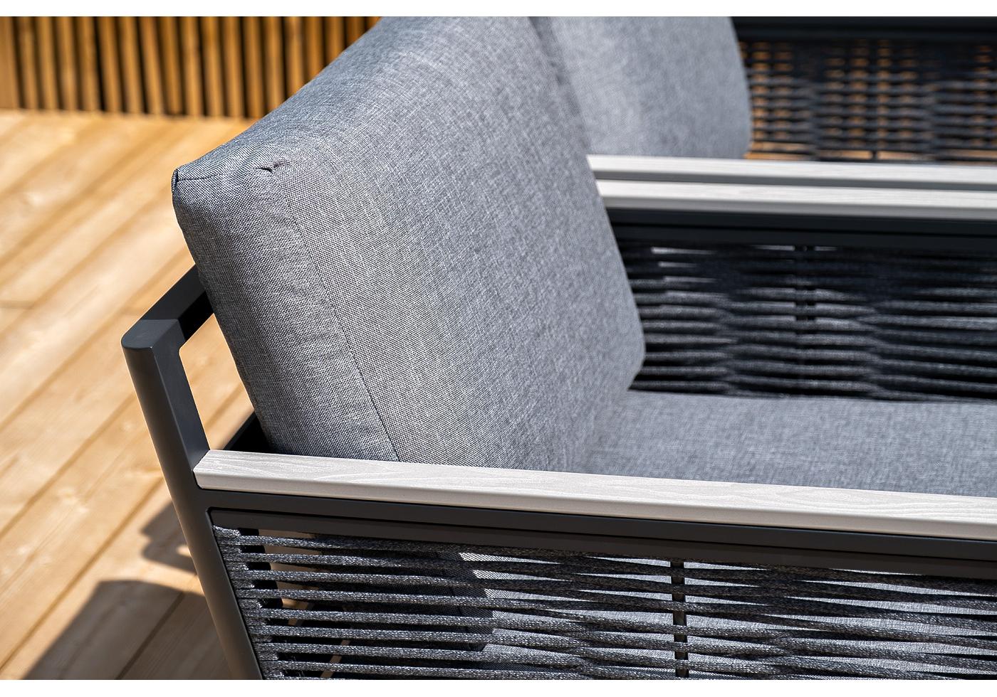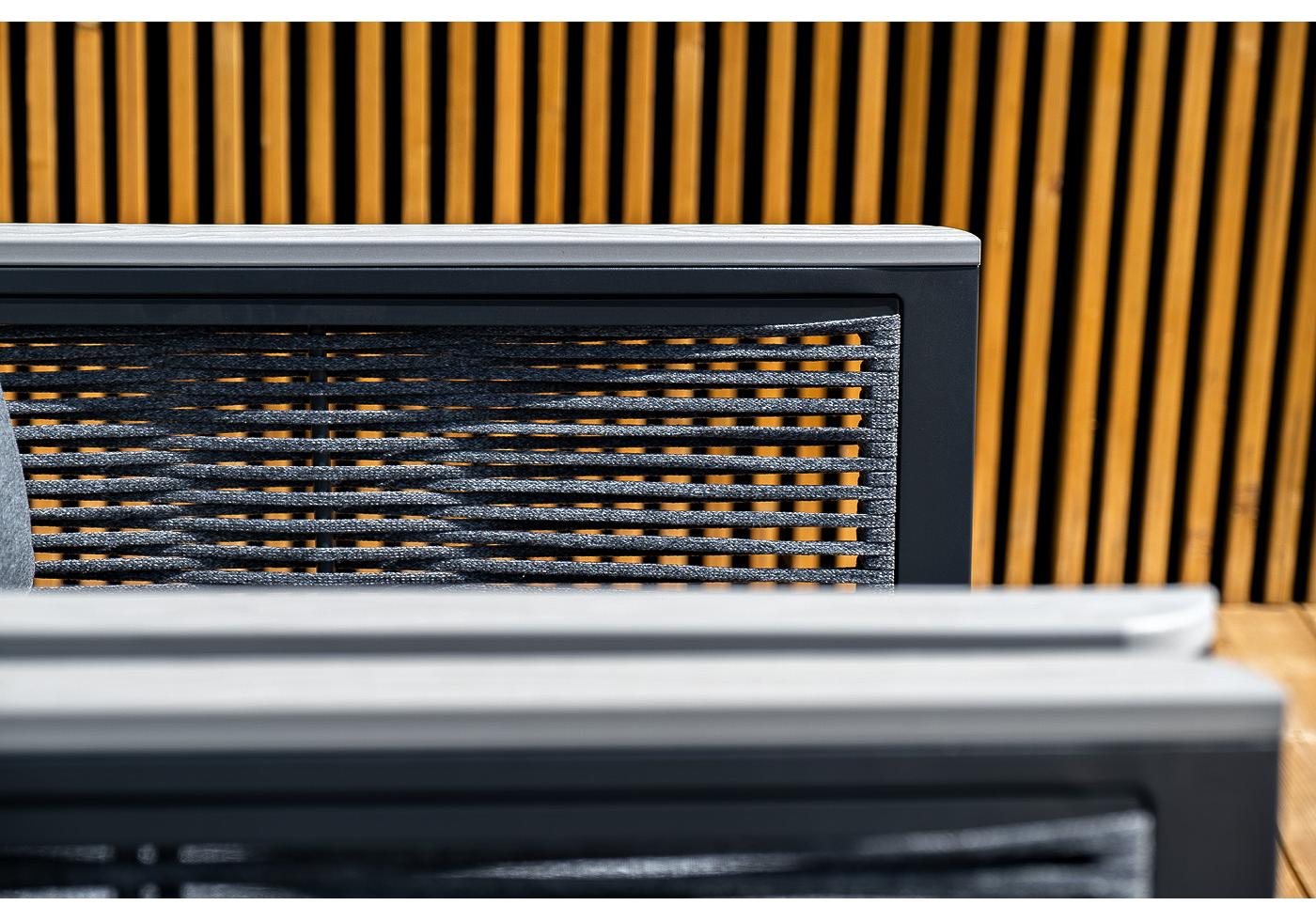 «Сан Ремо» лаунж-зона, алюминиевый каркас серый цвета, вручную оплетенный роупом серого цвета.