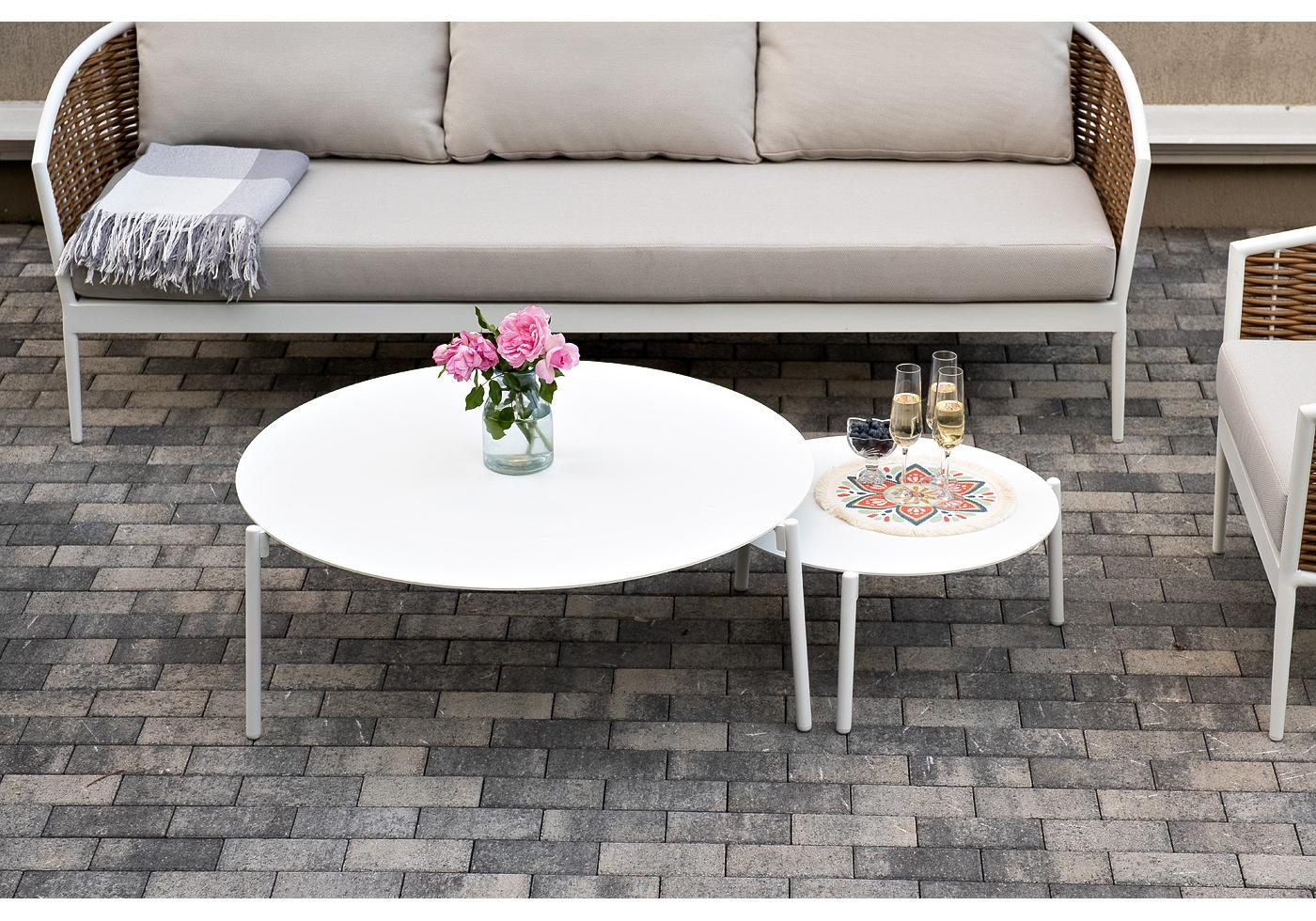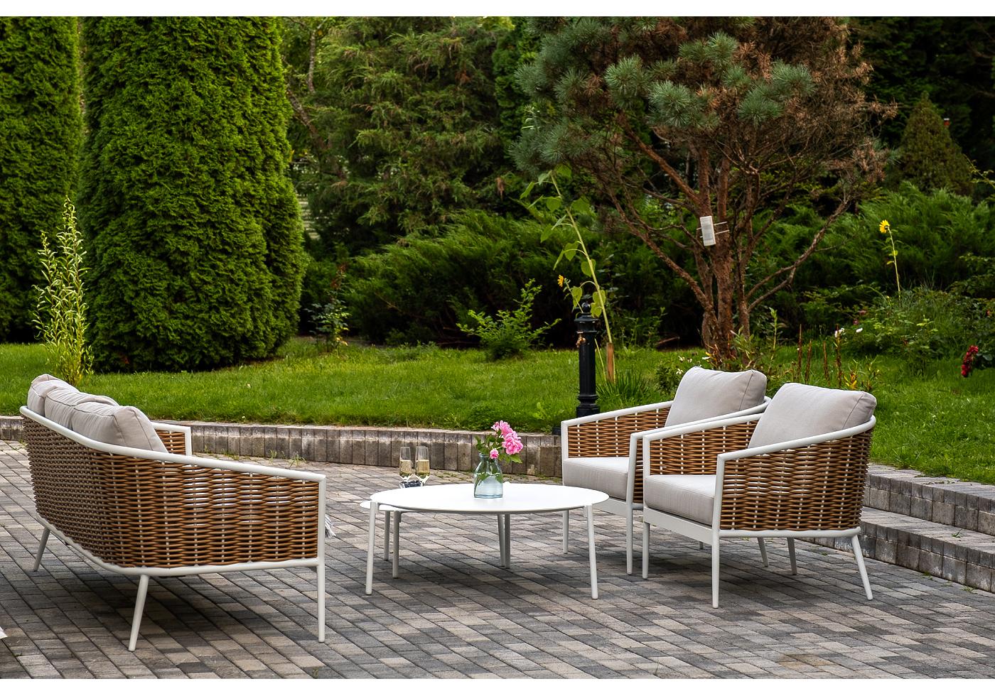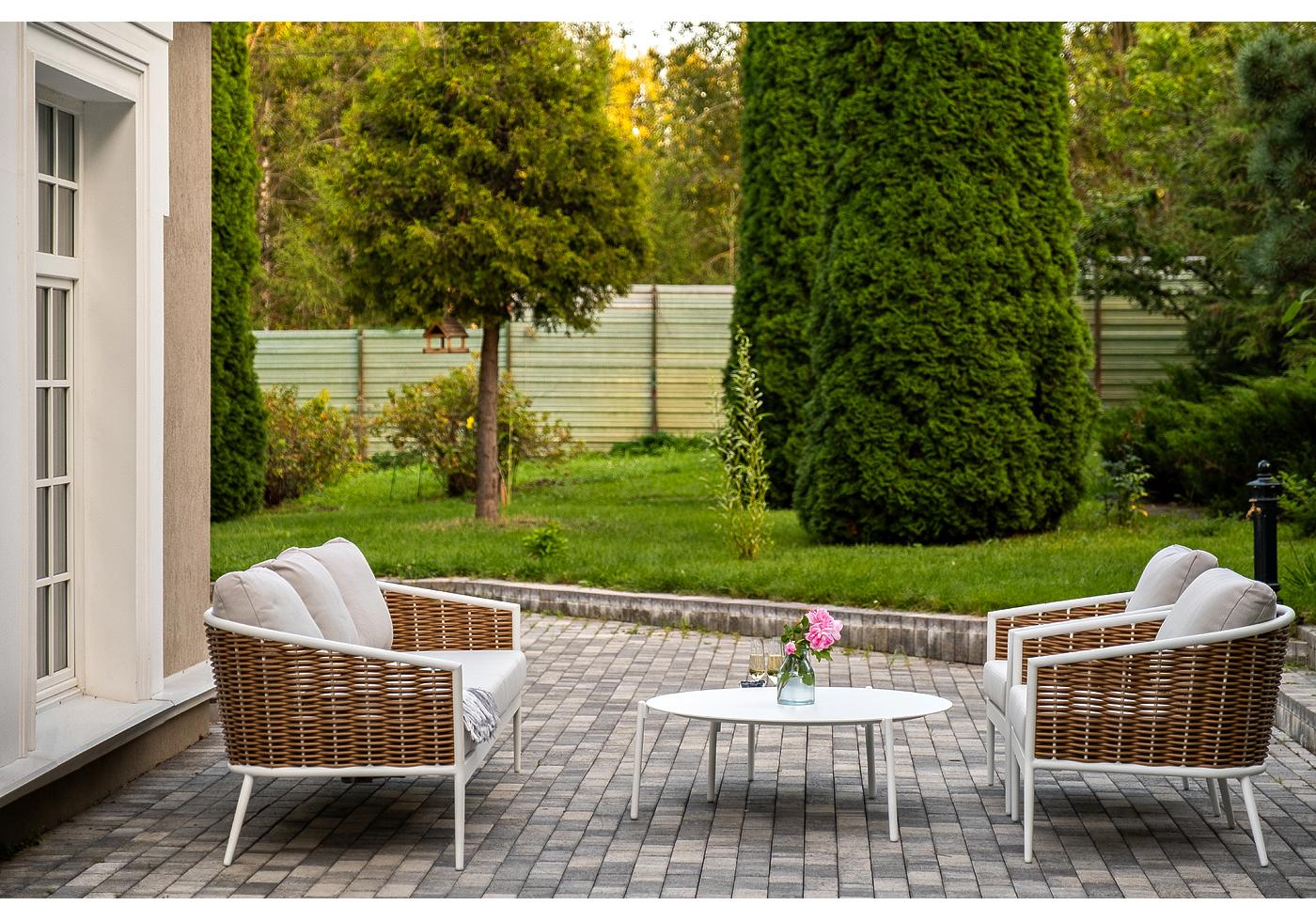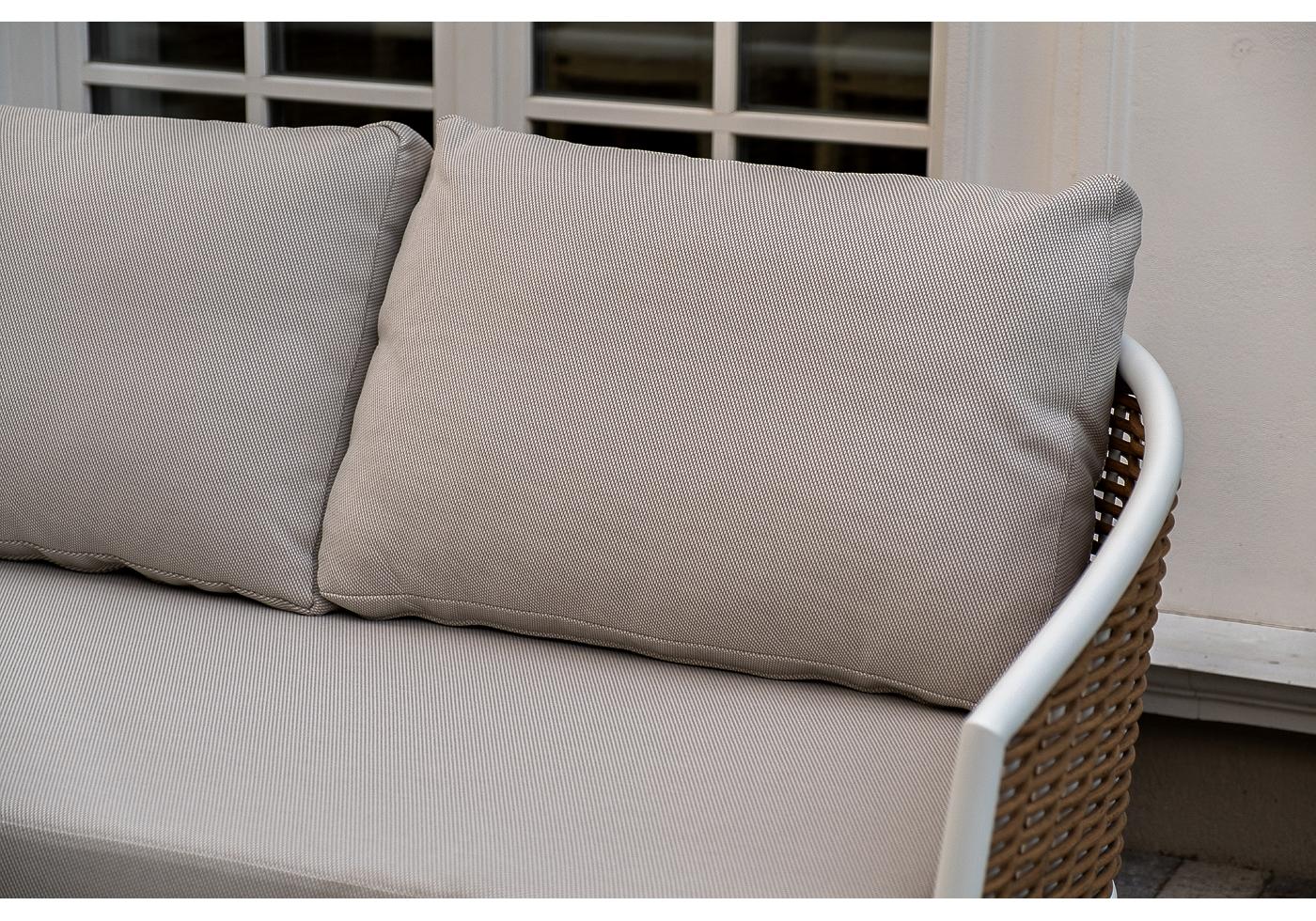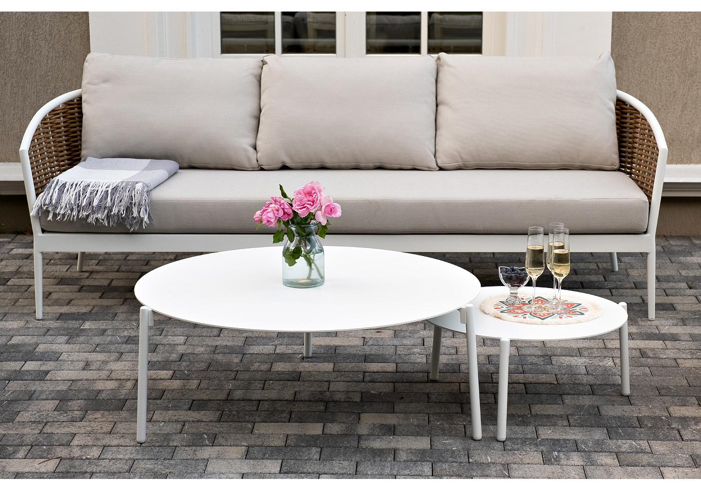Плетена "Тоскана" диван из искусственного ротанга трехместный, цвет соломенный 1шт. 2 260Х815Х750, "Тоскана" кресло из искусственного ротанга, цвет соломенный 2шт. 815Х870Х750, "Тоскана" журнальный столик круглый Ø103, H28,5, цвет белый 1шт. 1 030Х1 030Х285, "Тоскана" журнальный столик круглый Ø65, H38,5, цвет белый 1шт. 650Х650Х385,