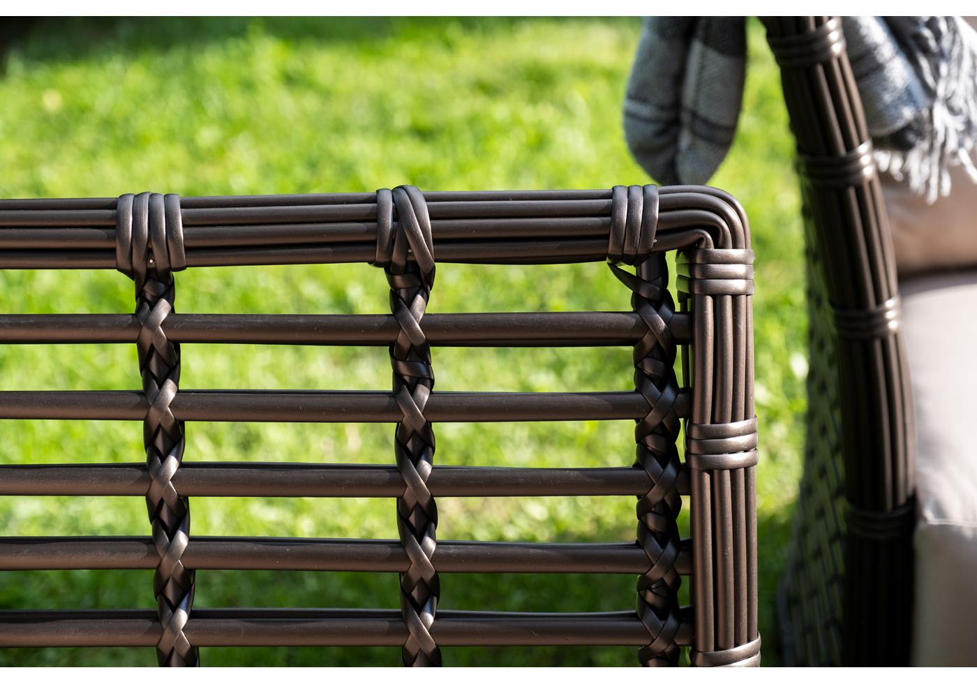 Модели имеют алюминиевый каркас, который оплетен вручную искусственным ротангом бронзового цвета.