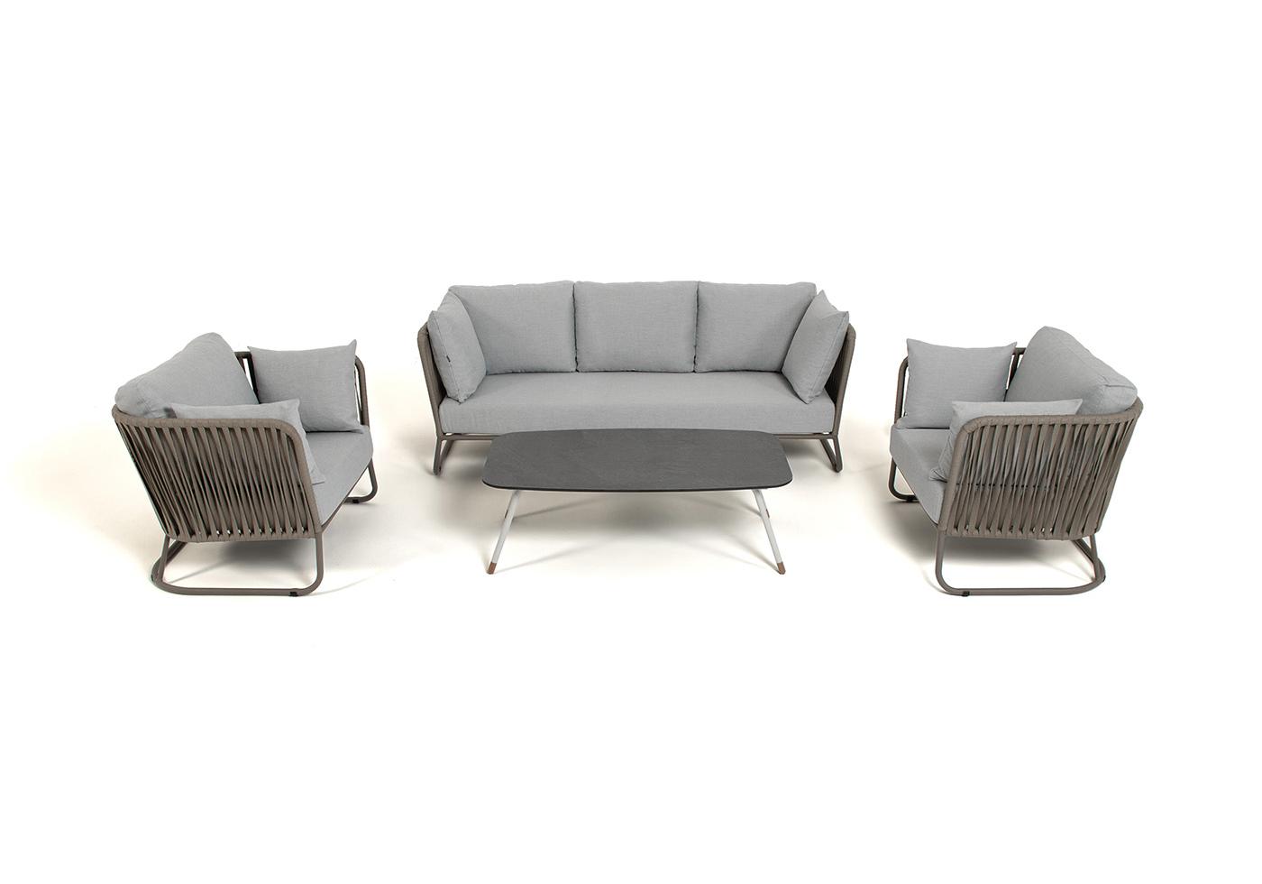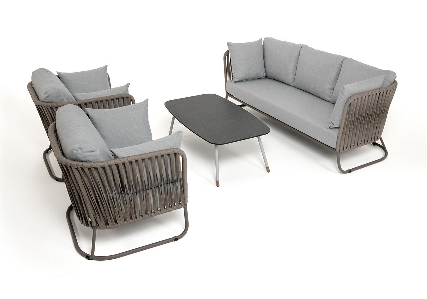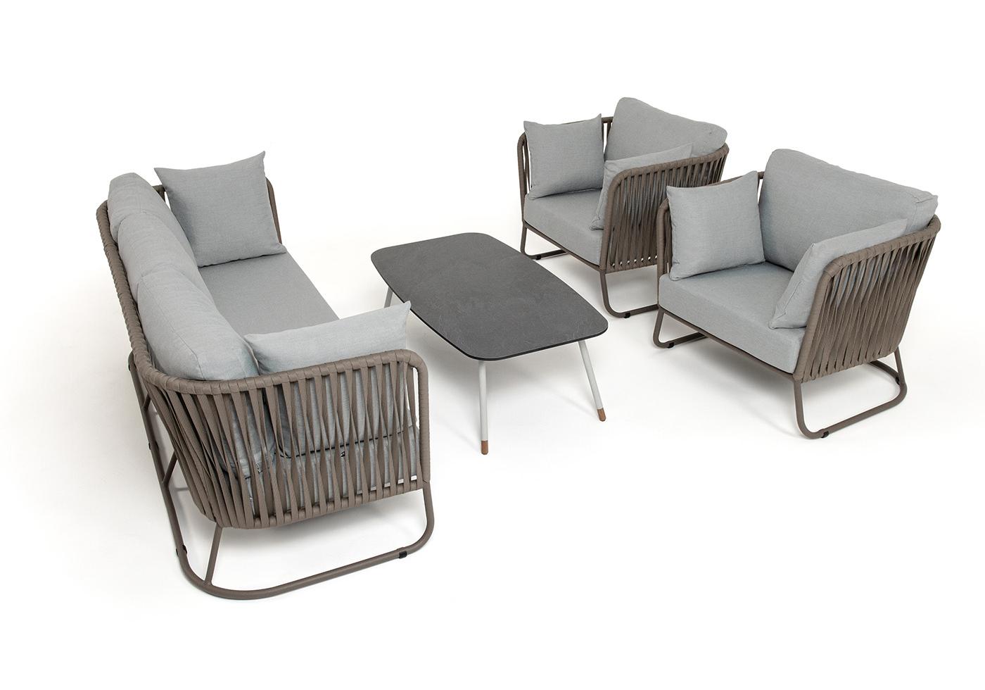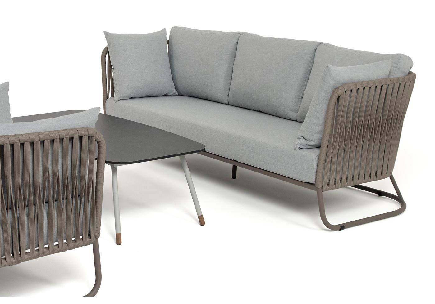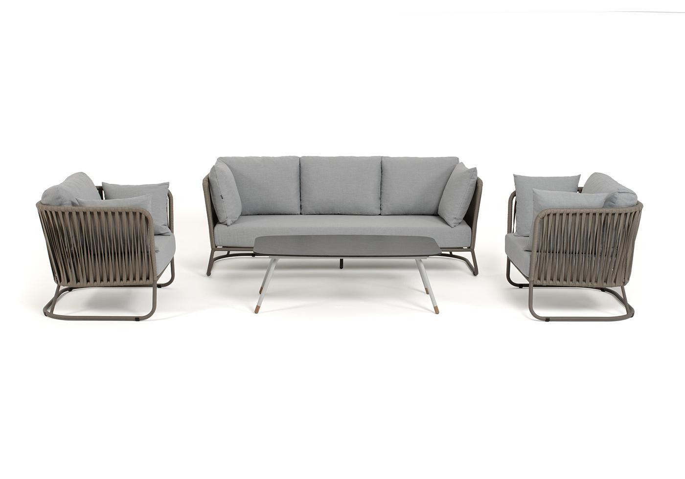 Кресла и диван идут в комплекте с мягкими подушками в чехлах "Багамы" диван 3-местный плетеный из роупа, каркас алюминий бежево-серый (RAL7006) муар, роуп серо-коричневый 23мм, ткань светло-серая 1шт. 2 000Х800Х735, "Багамы" кресло плетеное из роупа, каркас алюминий бежево-серый (RAL7006) муар, роуп серо-коричневый 23мм, ткань светло-серая 2шт. 920Х800Х735, "Верона" журнальный стол из HPL 120х65, H40, каркас светло-серый (RA L7035) муар, цвет столешницы "серый гранит" 1шт. 1 200Х650Х400,