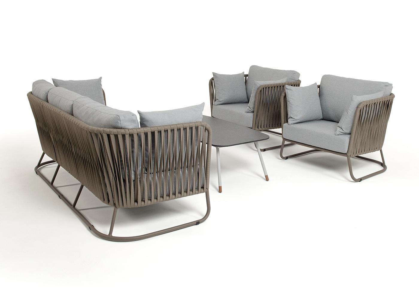 "Багамы" лаунж-зона 5-местная плетеная из роупа (веревки), каркас алюминиевый бежево-серый, роуп серо-коричневый