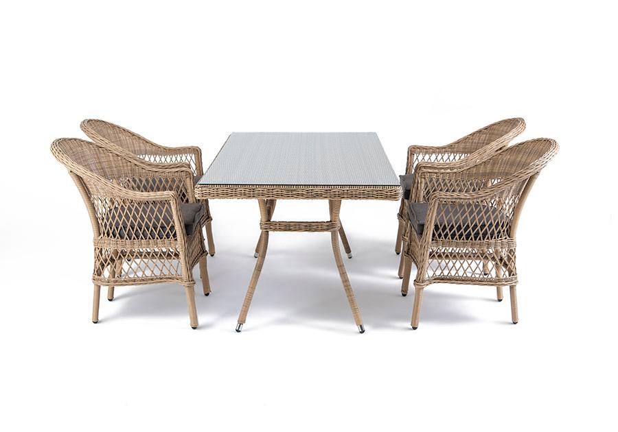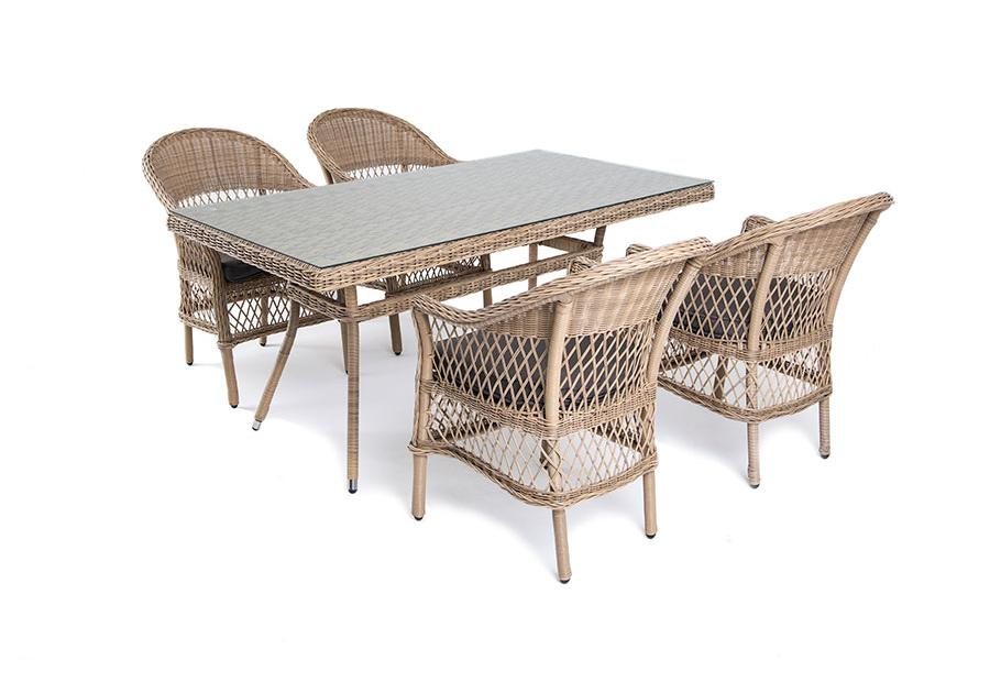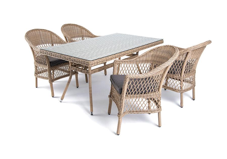 "Амароне" обеденная группа из искусственного ротанга на 4 персоны, цвет соломенный