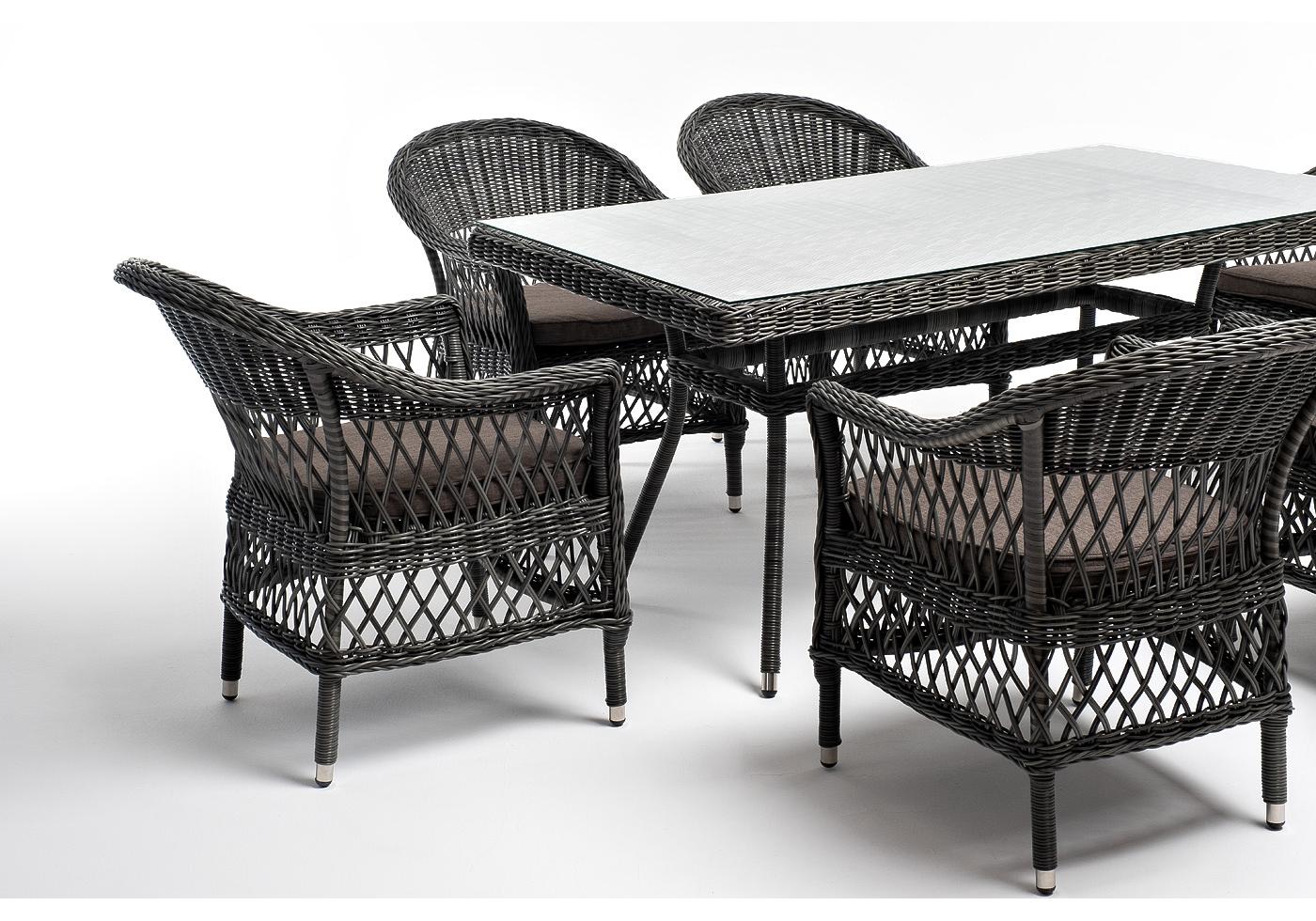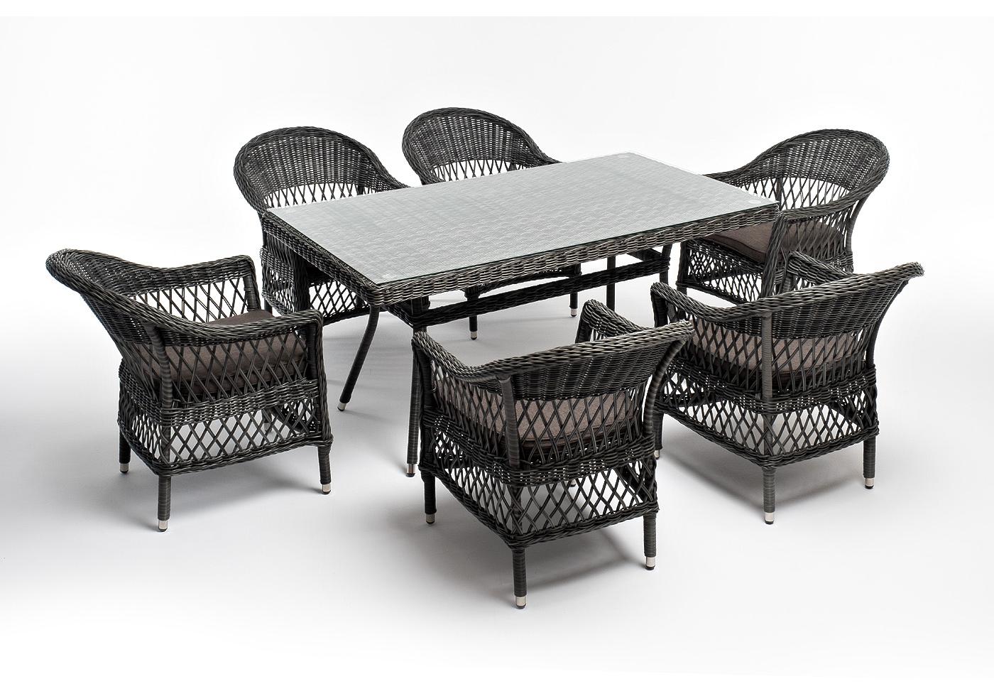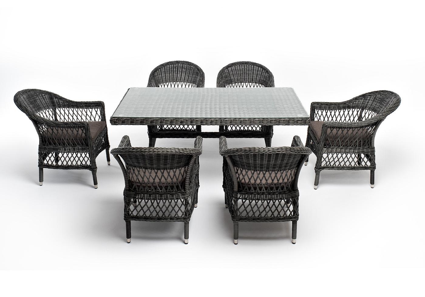 "Амароне" обеденная группа из искусственного ротанга на 6 персон, цвет графит
