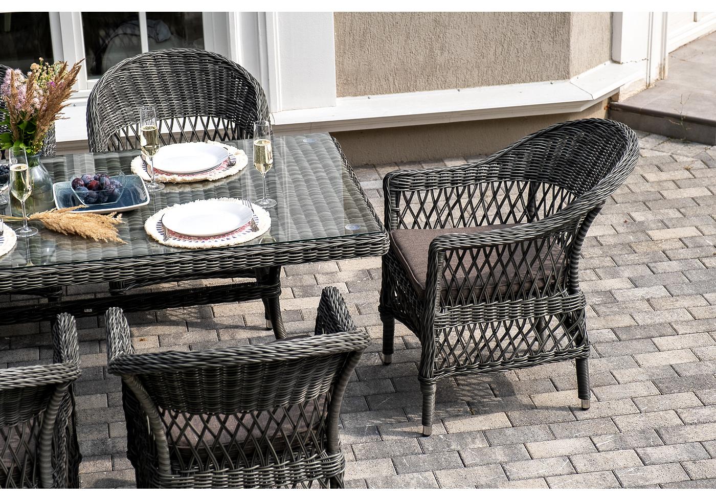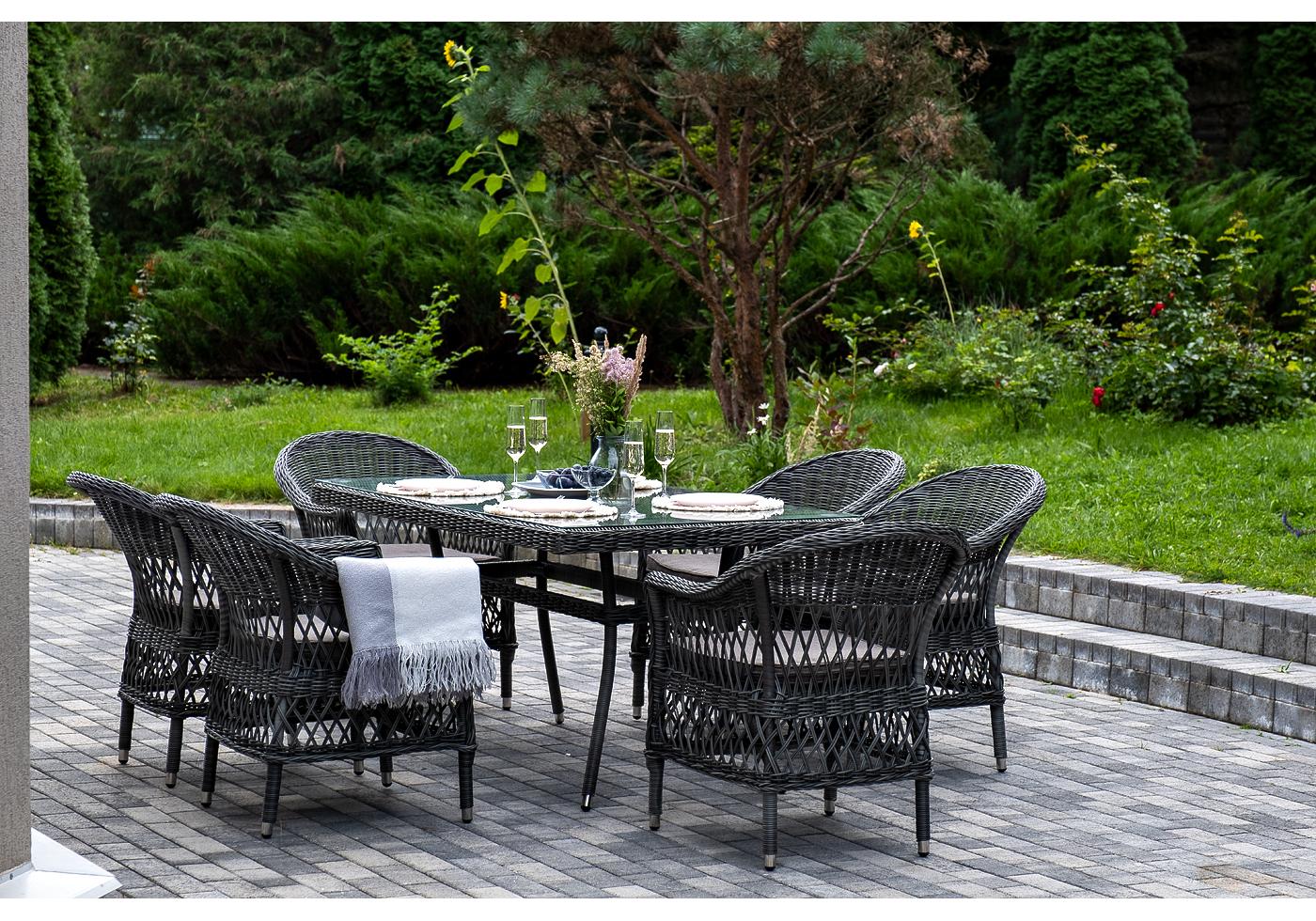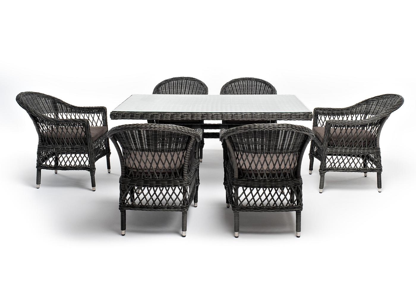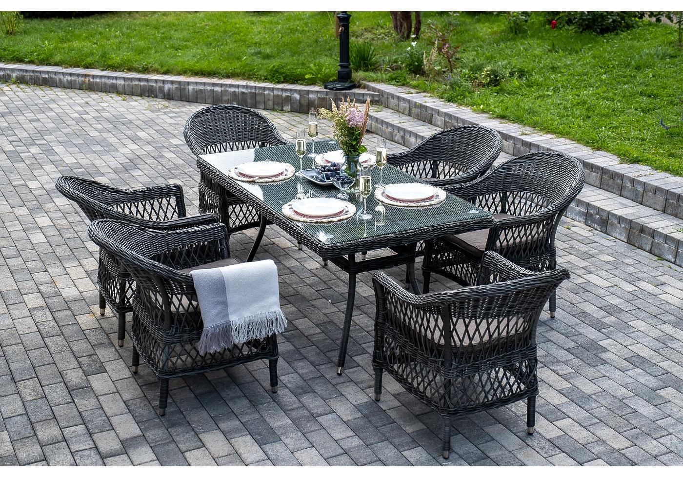 "Амароне" обеденная группа из искусственного ротанга на 6 персон, цвет графит