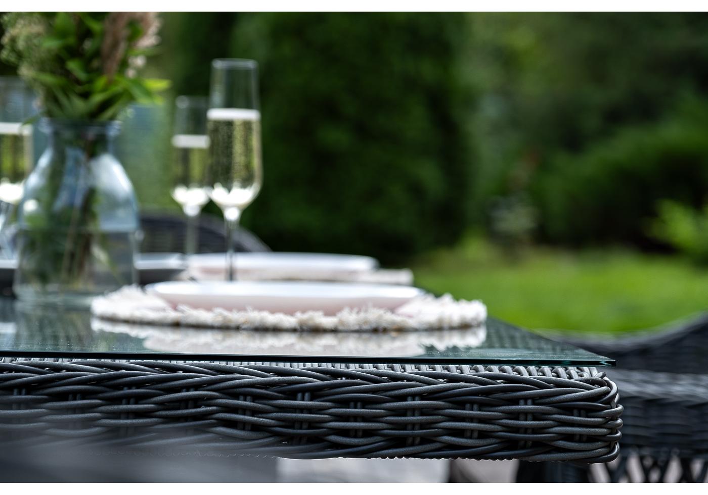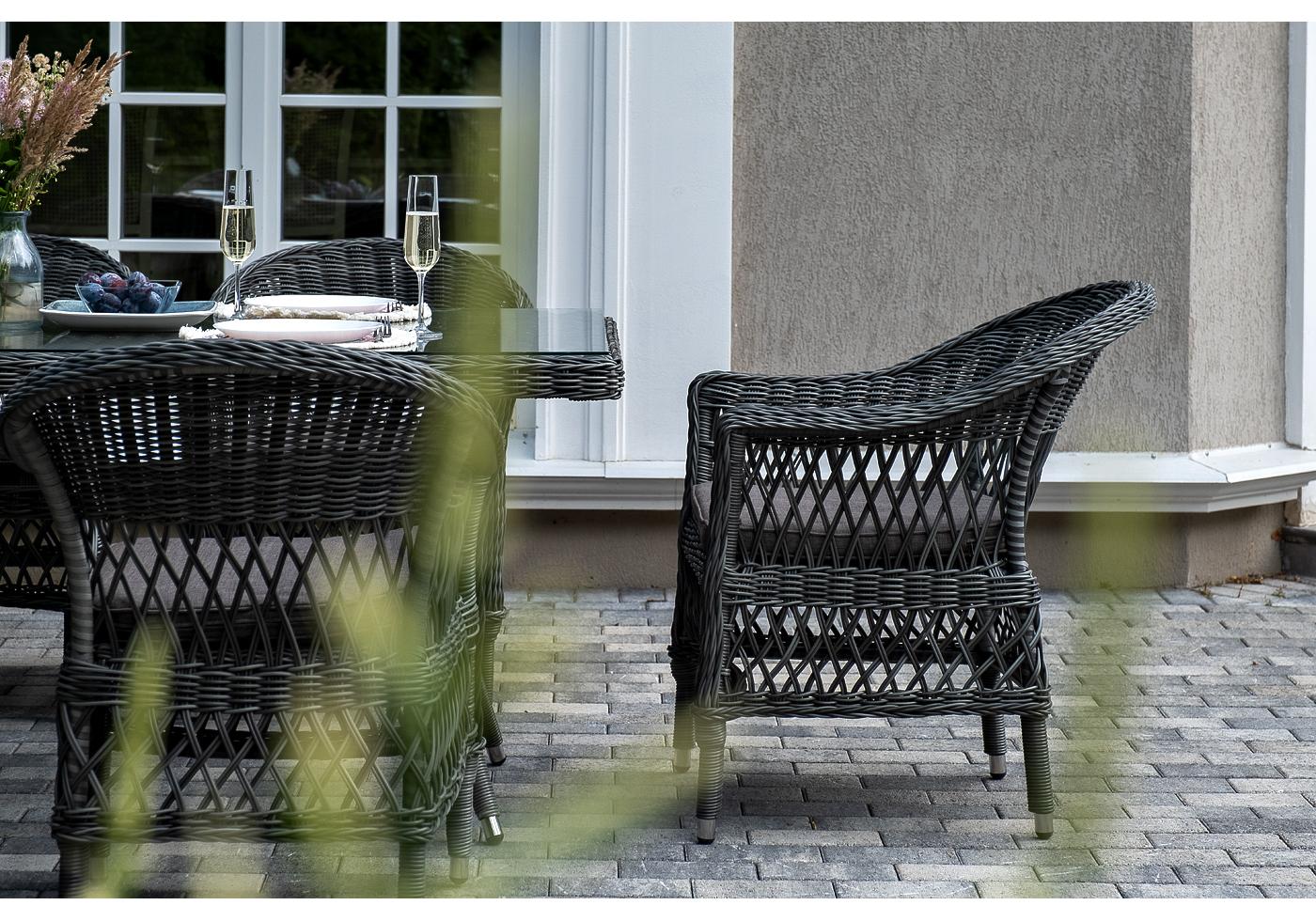 Обеденная группа «Амароне» относится к числу садовой мебели для обустройства открытых террас и веранд.