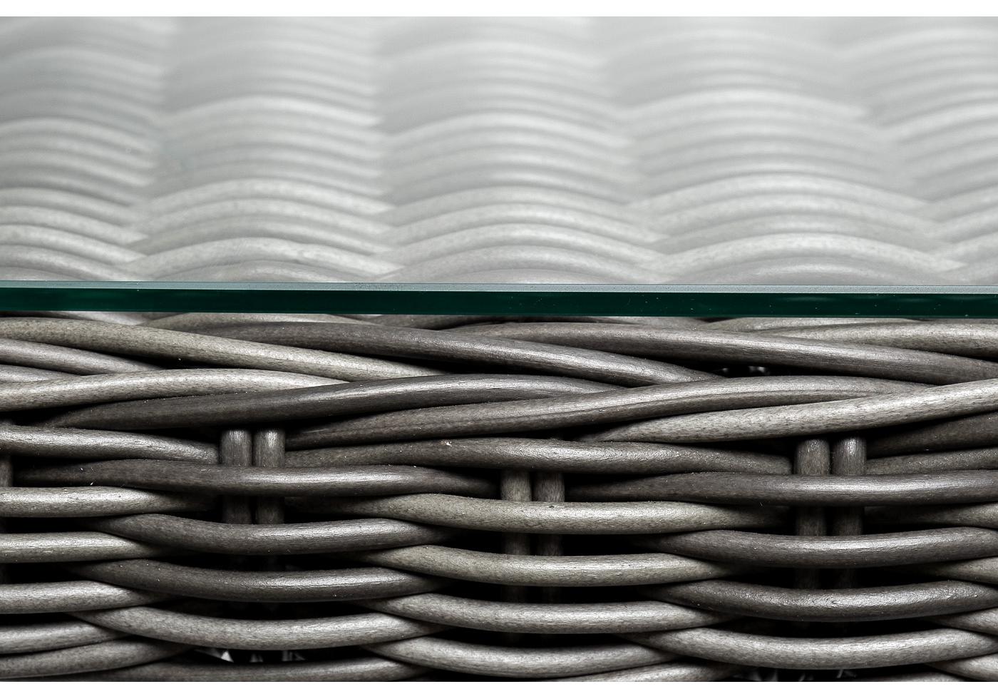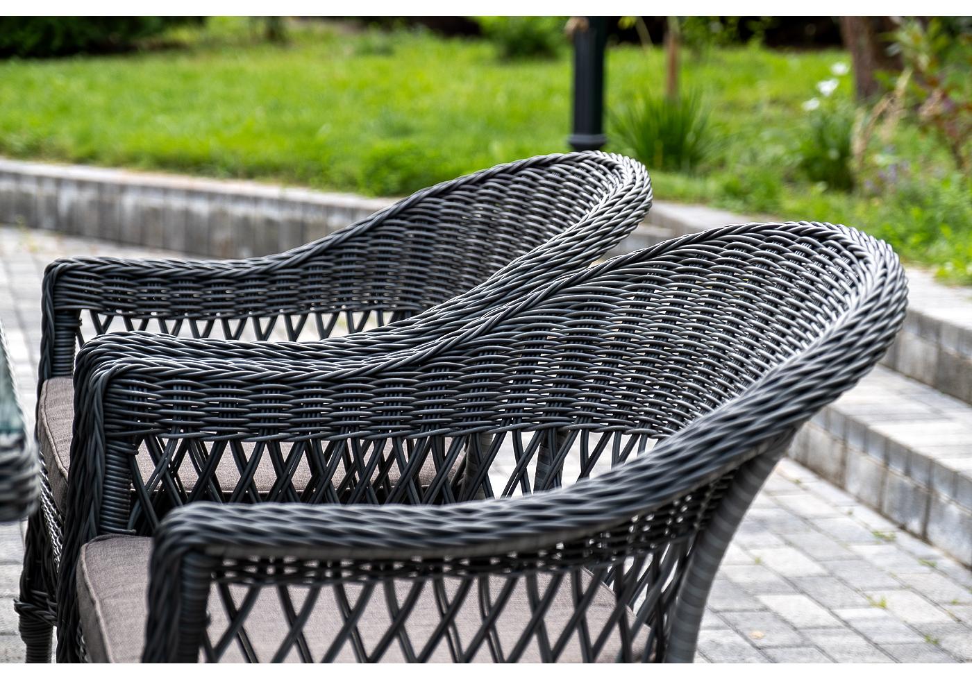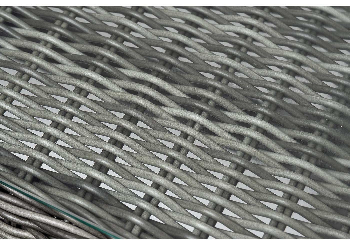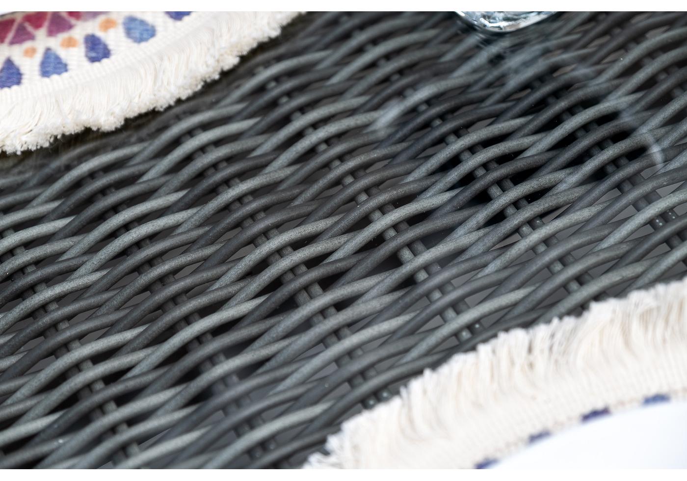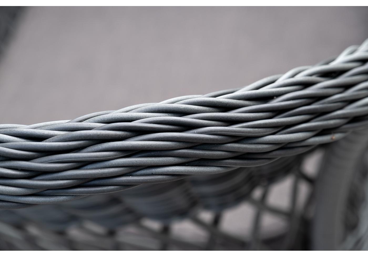Алюминий используется при создании прочного каркаса мебели. Оформлен ручным плетением из круглого искусственного ротанга графитового цвета.