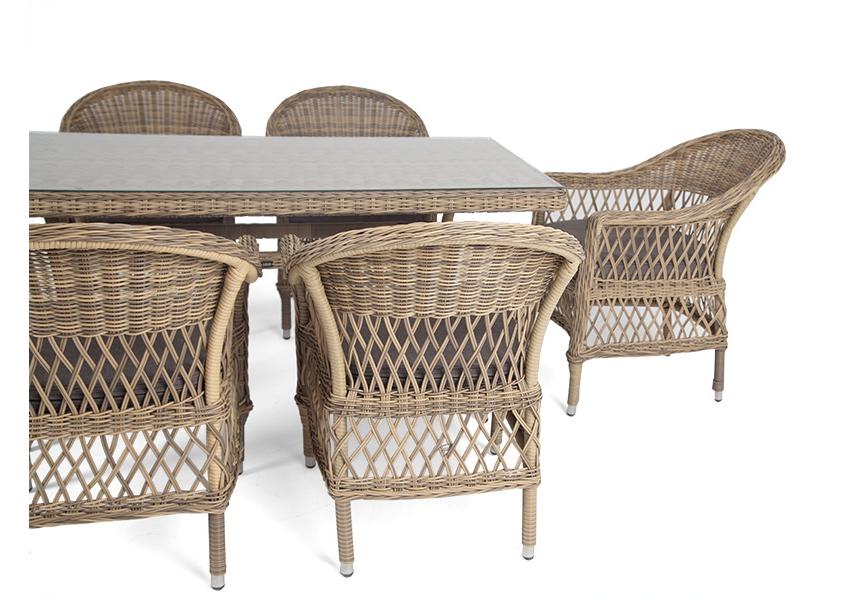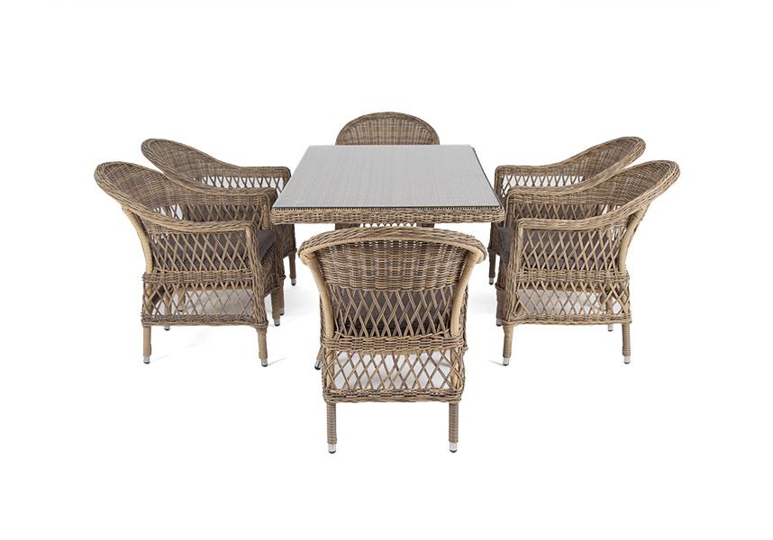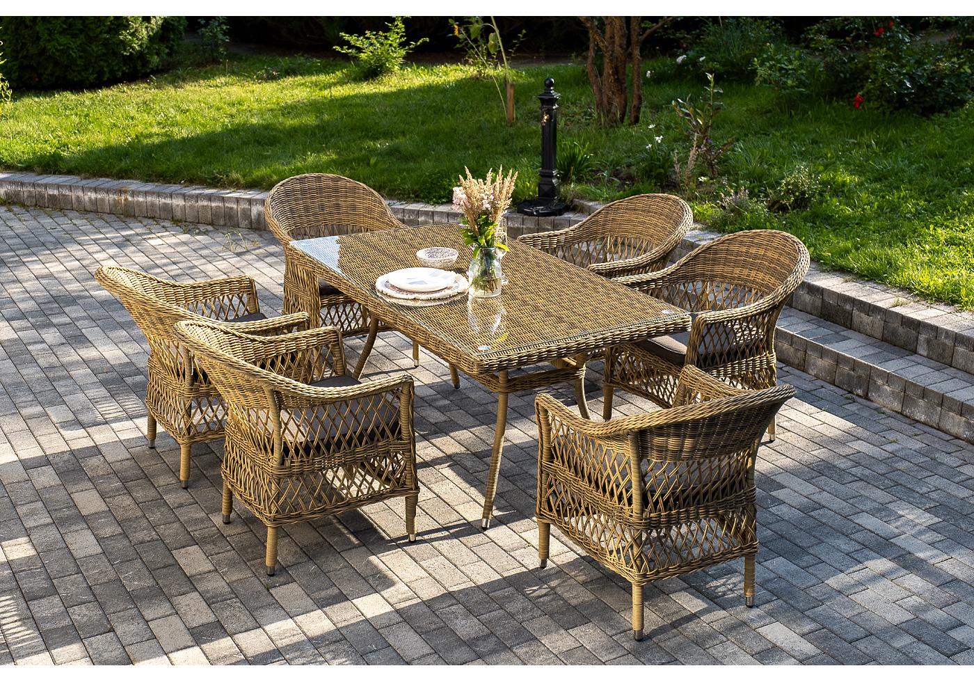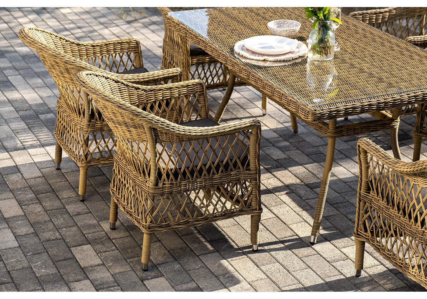 "Амароне" обеденная группа из искусственного ротанга на 6 персон, цвет соломенный