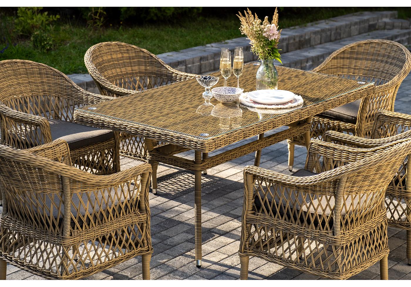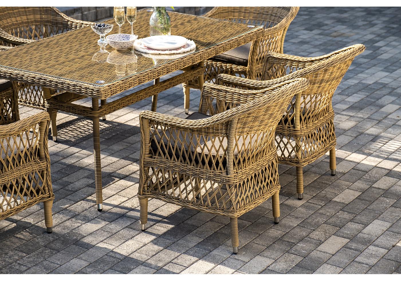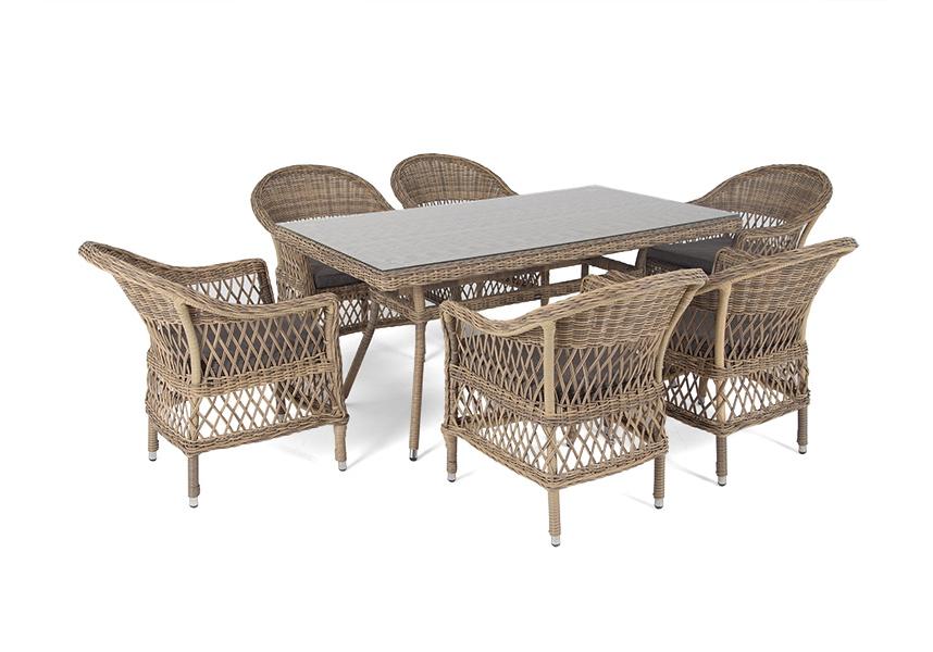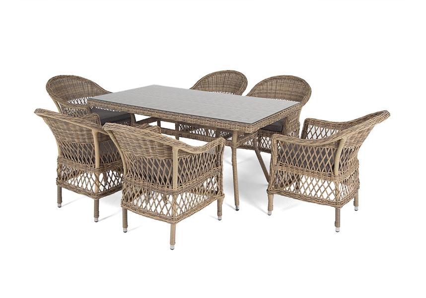 "Амароне" обеденная группа из искусственного ротанга на 6 персон, цвет соломенный
