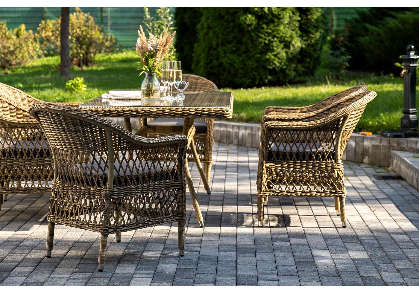 Обеденная группа «Амароне» относится к числу садовой мебели для обустройства открытых террас и веранд.