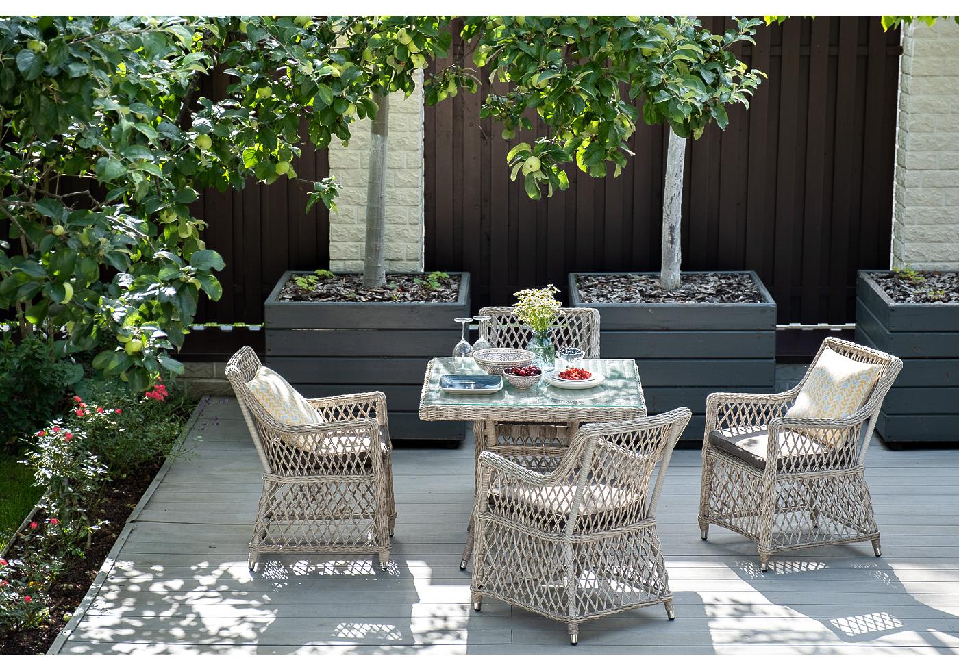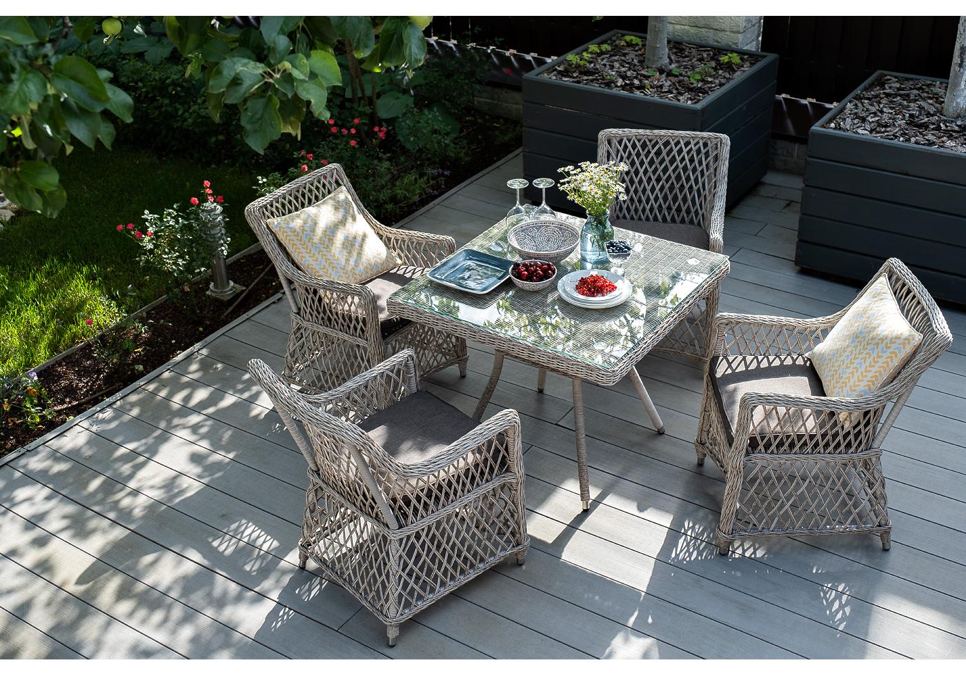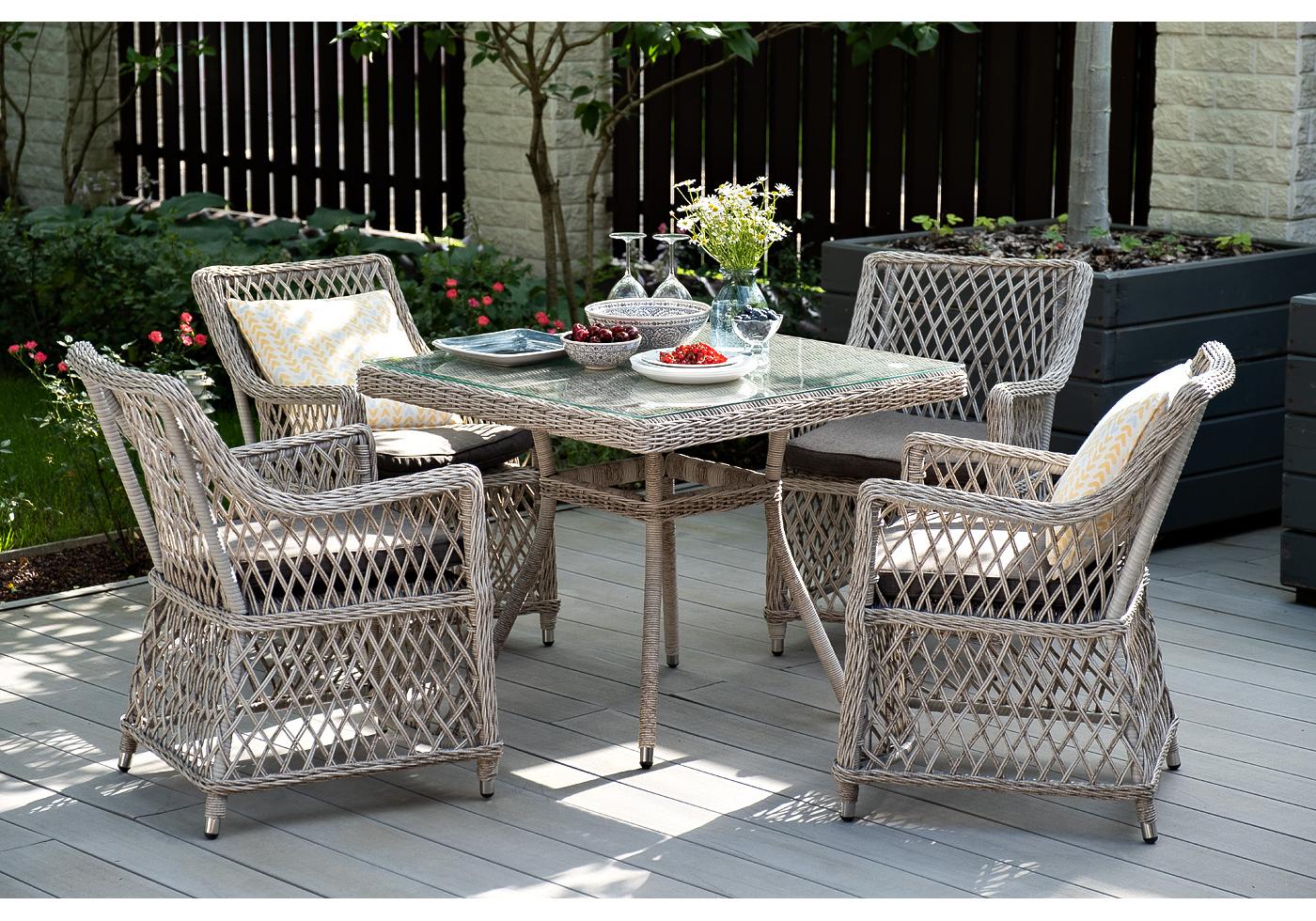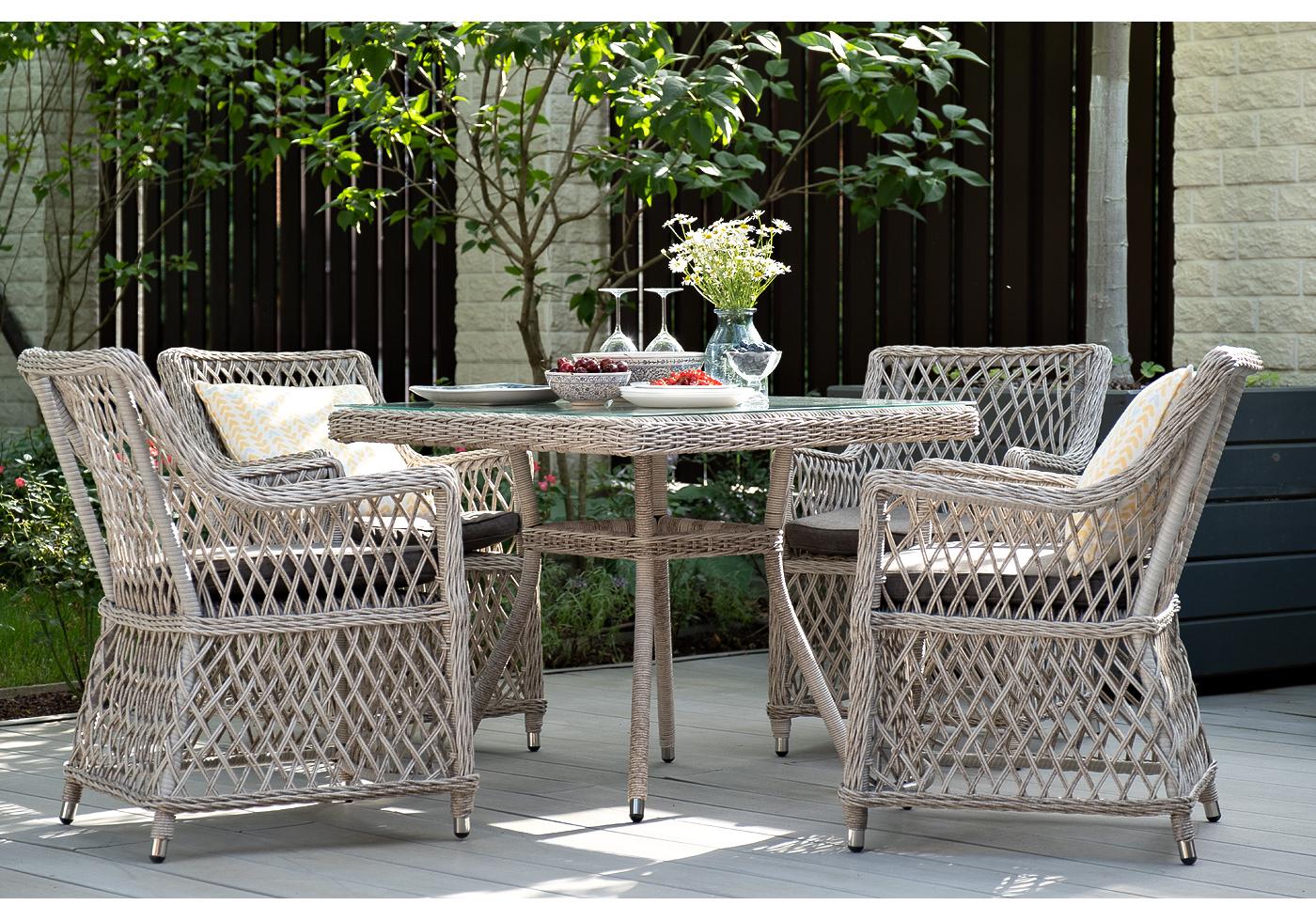 "Айриш" обеденная группа плетеная на 4 персоны, цвет бежевый