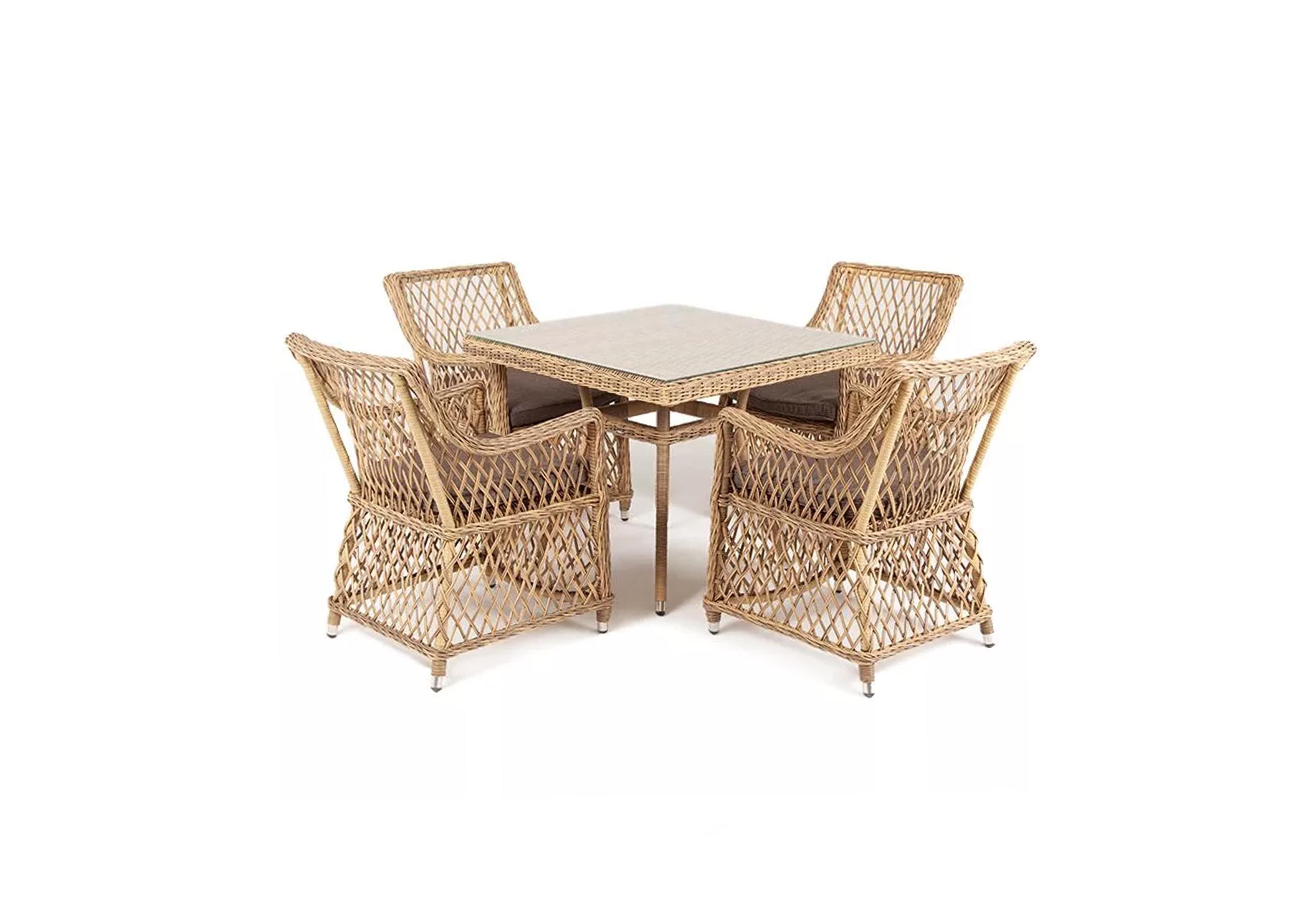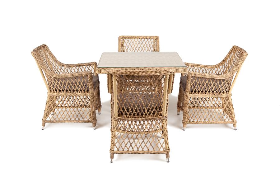 "Латте" плетеное кресло из искусственного ротанга, цвет соломенный 4шт. 550Х680Х840, "Айриш" стол плетеный из искусственного ротанга, цвет соломенный 1шт. 900Х900Х750,