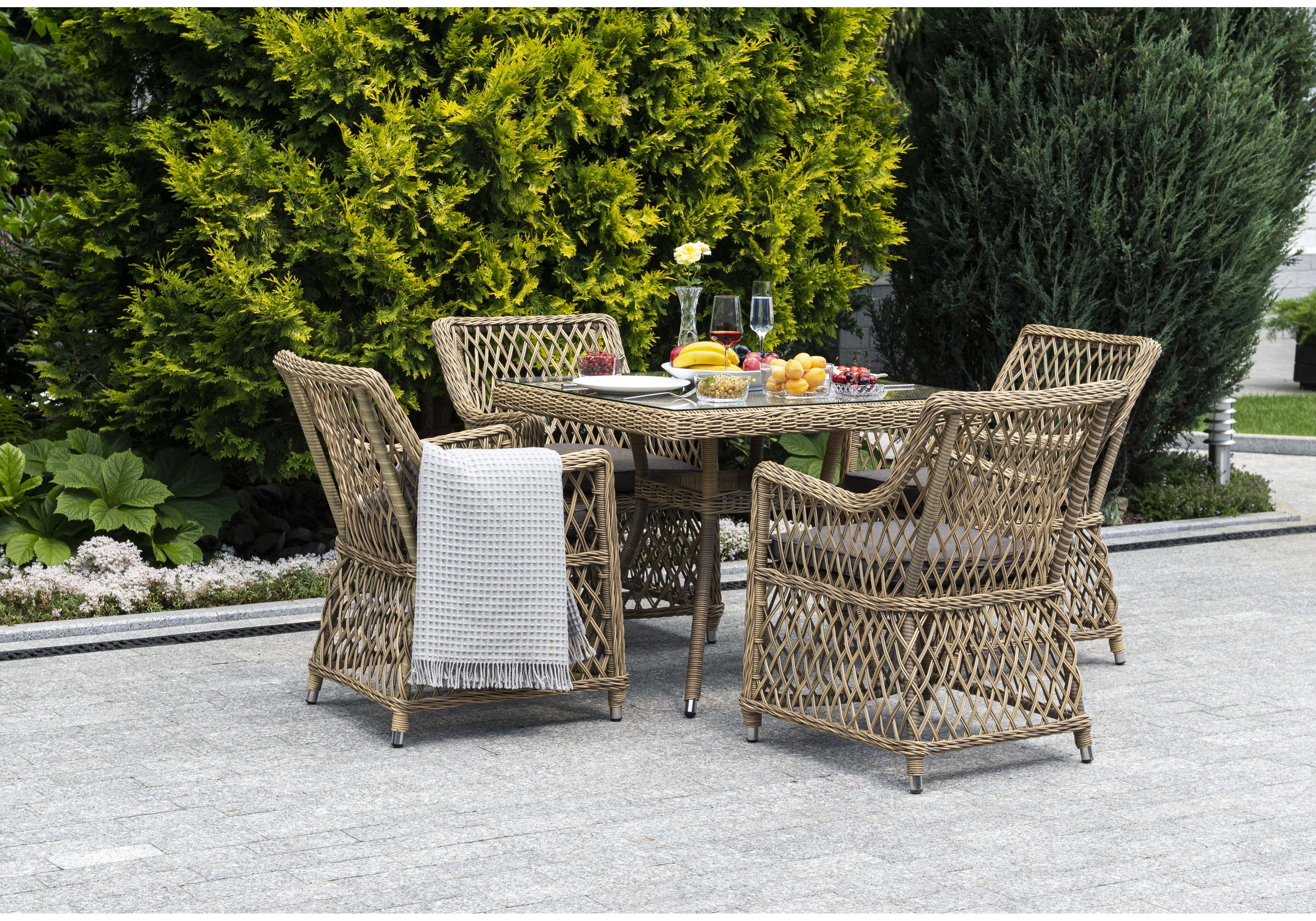"Айриш" обеденная группа плетеная на 4 персоны, цвет соломенный