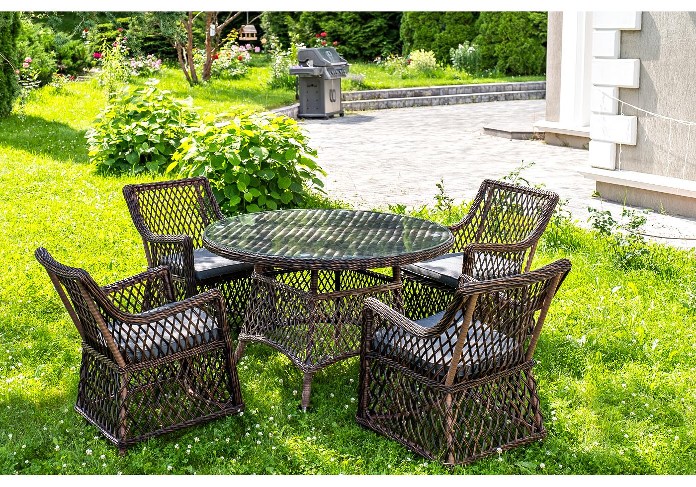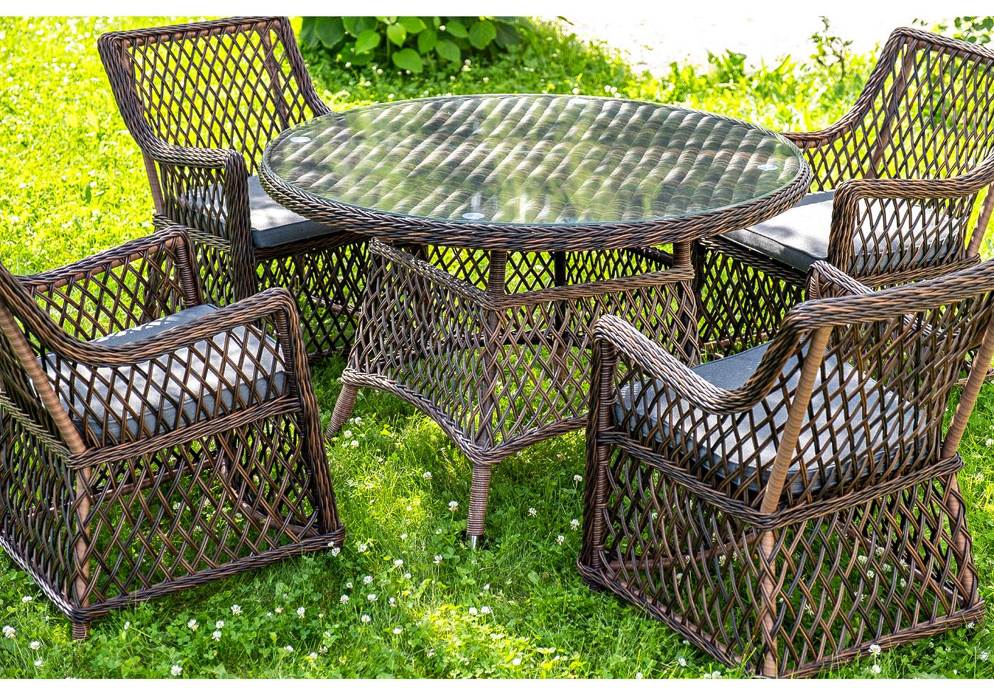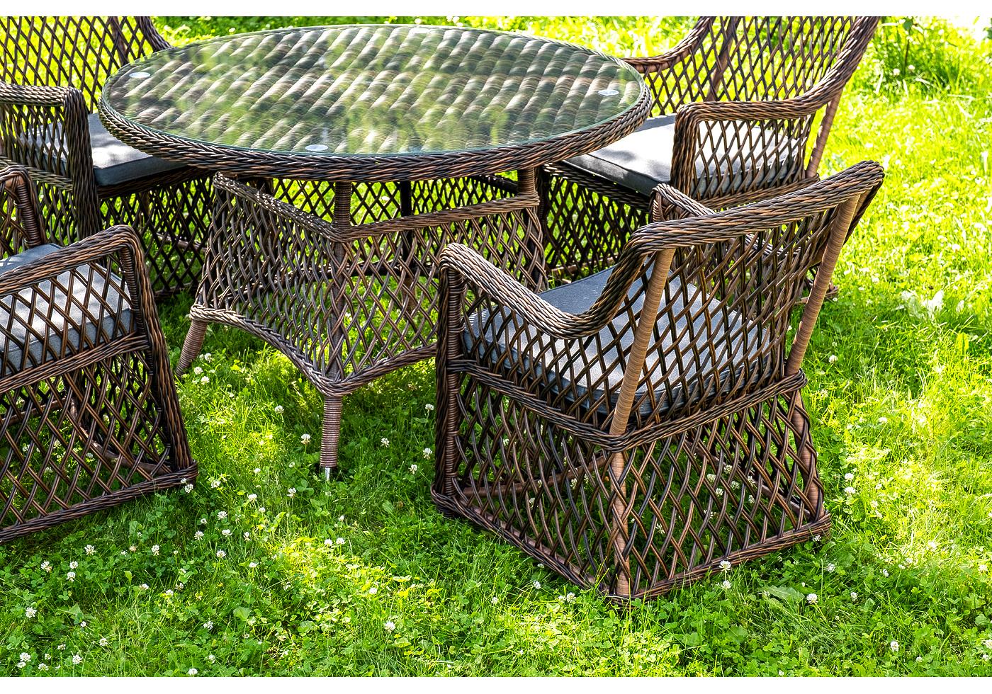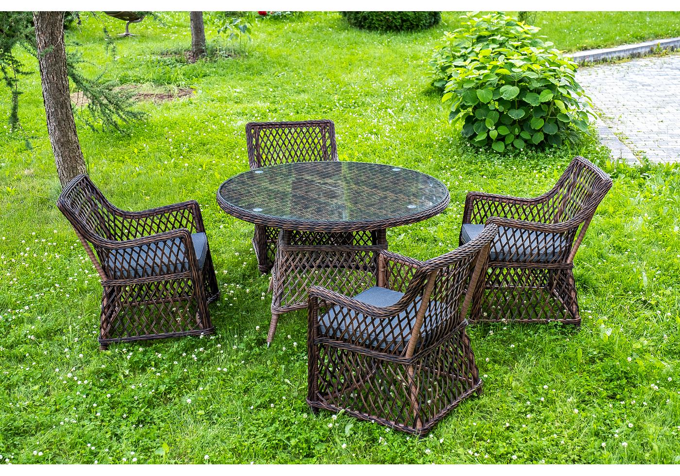 Вы также можете приобрести каждый из элементов по "Эспрессо" плетеный круглый стол, диаметр 118 см, цвет коричневый 1шт. 1 180Х1 180Х750, "Латте" плетеное кресло из искусственного ротанга, цвет коричневый 4шт. 550Х660Х850,