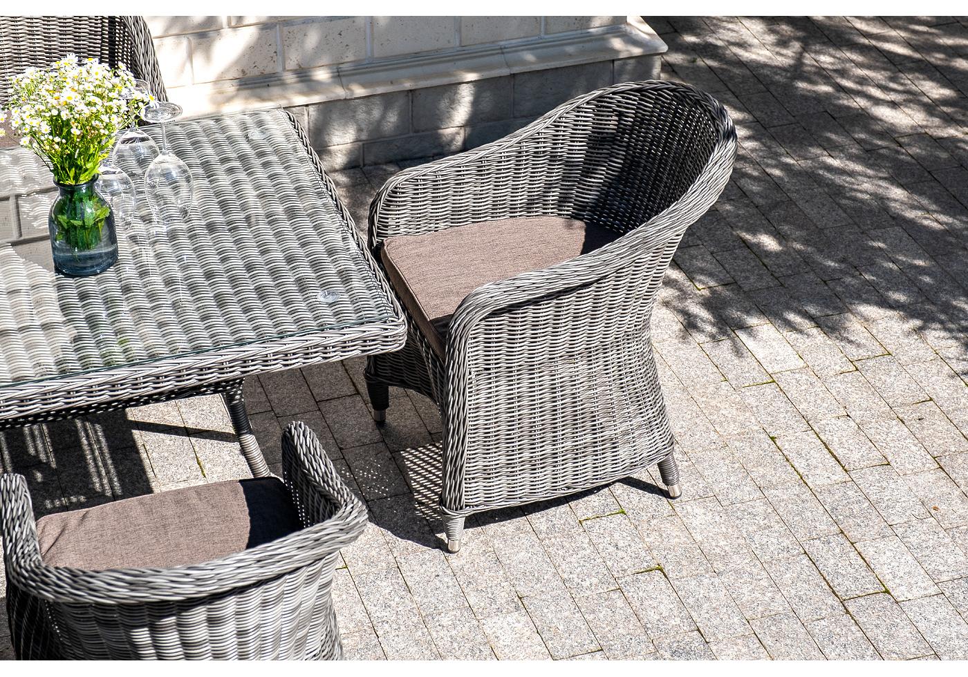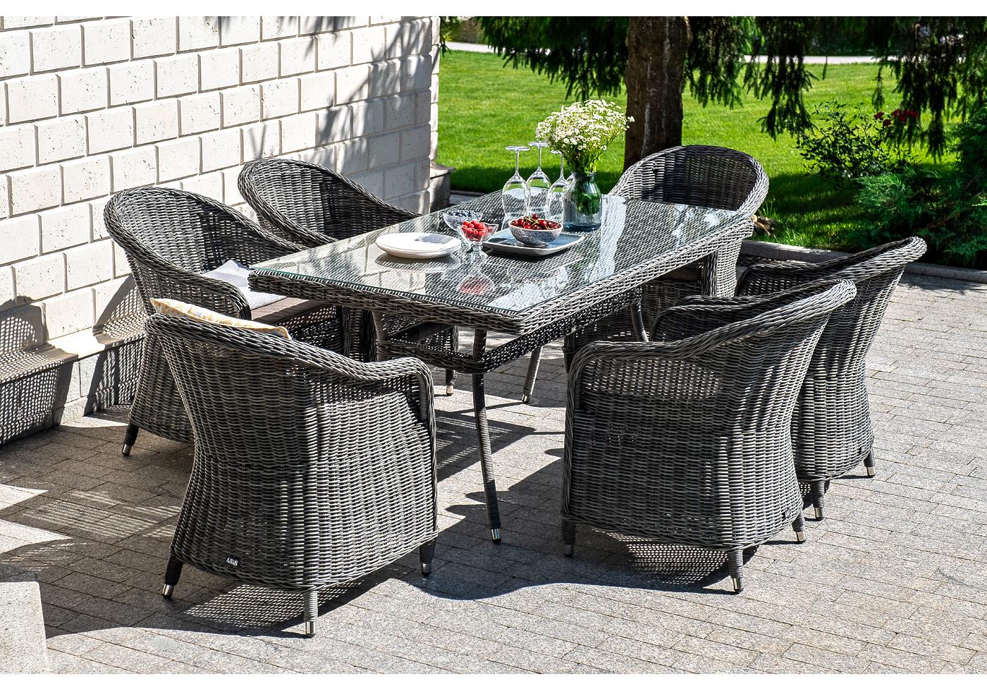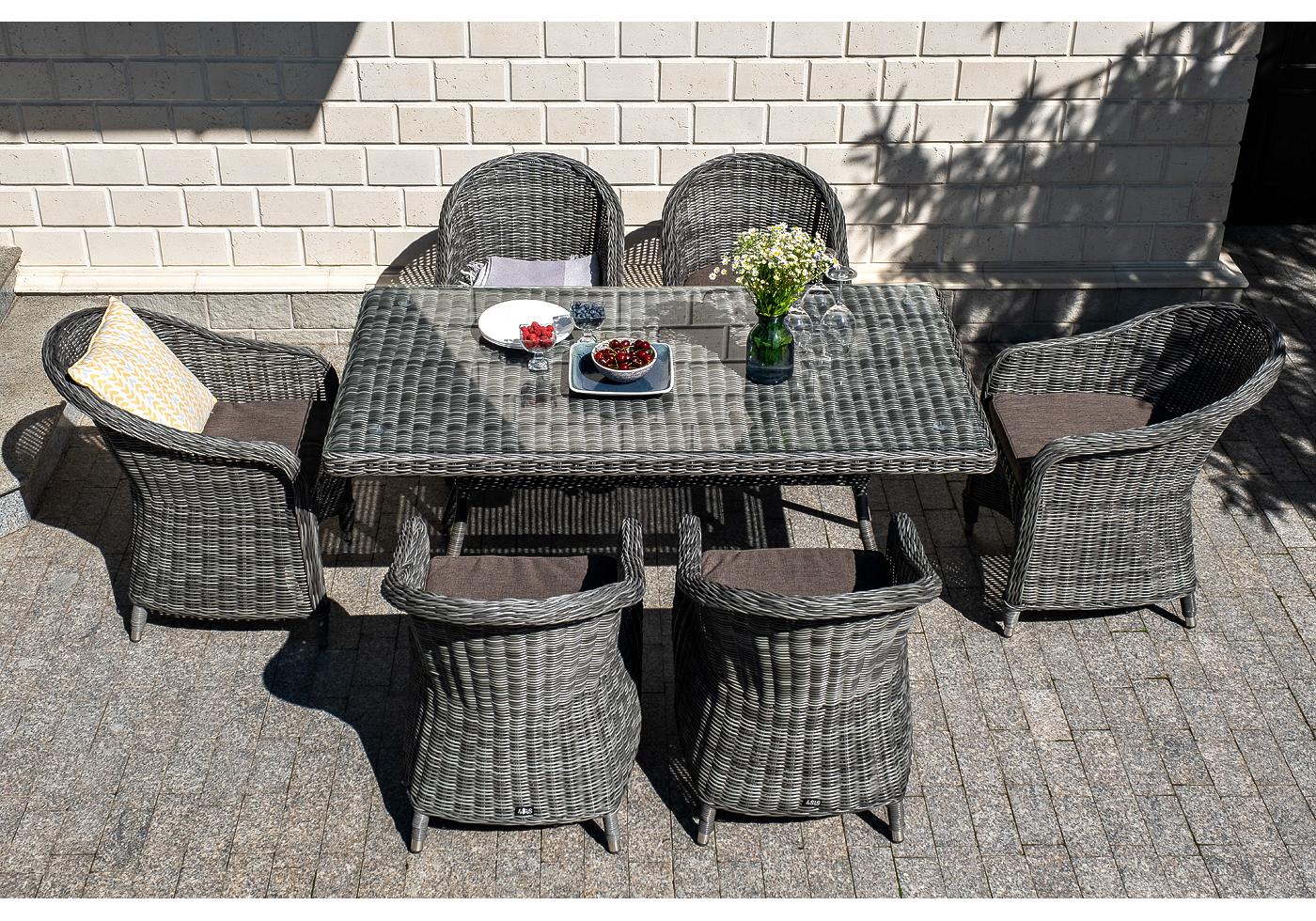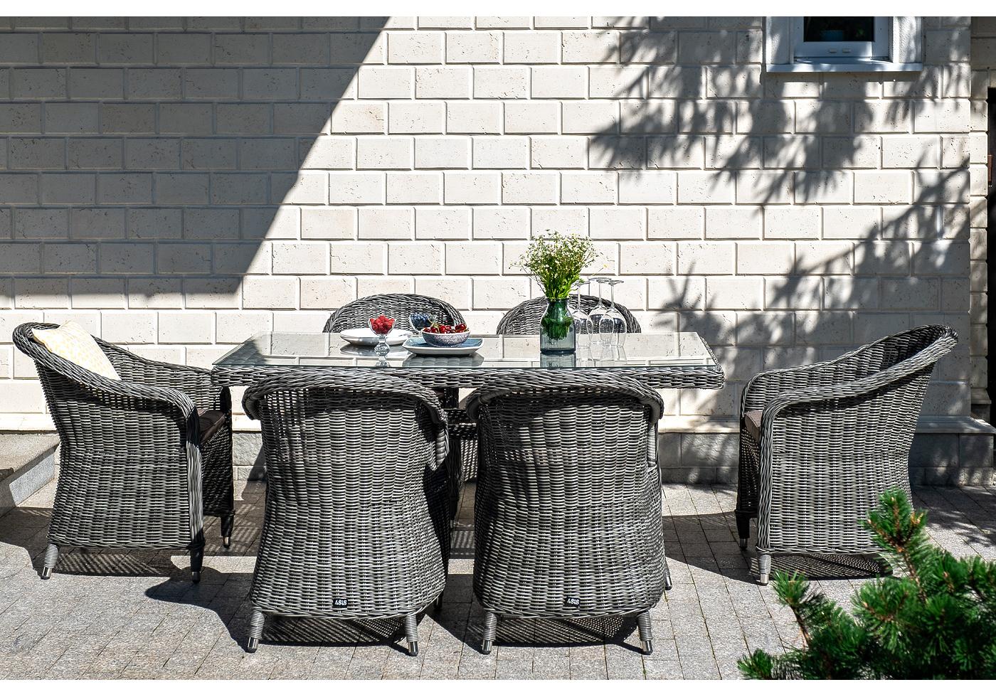 Стеклянная столешница, толщино "Латте" плетеный стол из искусственного ротанга 160х90см, цвет графит 1шт. 1 600Х900Х750, "Равенна" плетеное кресло из искусственного ротанга, цвет графит 6шт. 570Х680Х810,
