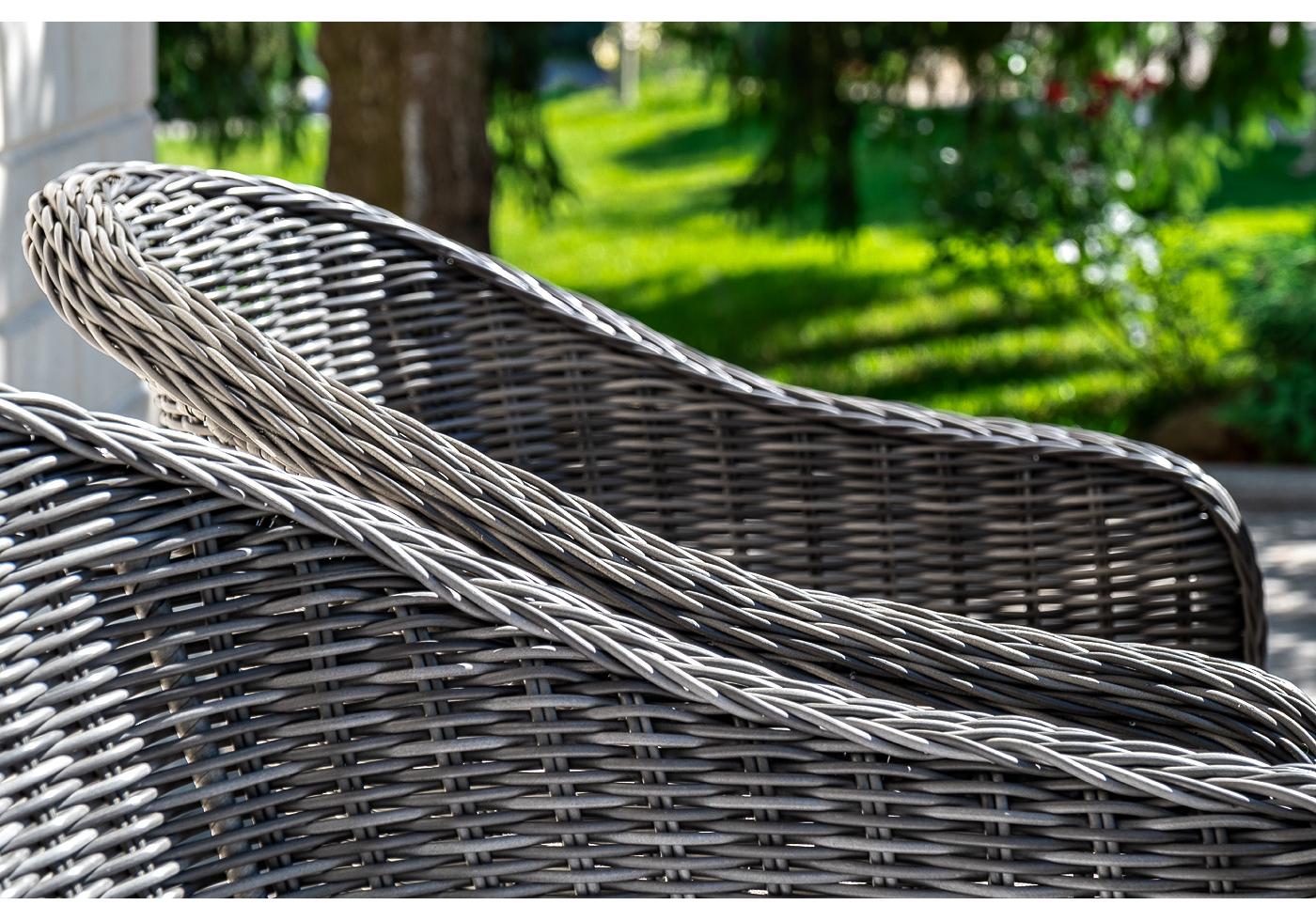 Каркас мебели сделан из прочного алюминия, который выдерживает большие нагрузки. Оплетка выполнена из искусственного ротанга ручного плетения – всесезонного износостойкого материала. Он может долго находиться под солнечными лучами и даже при низких температурах.