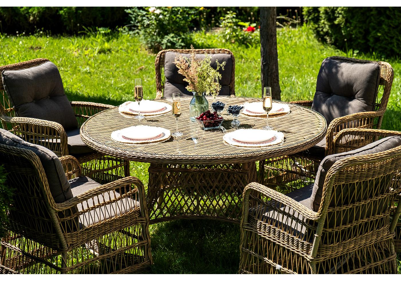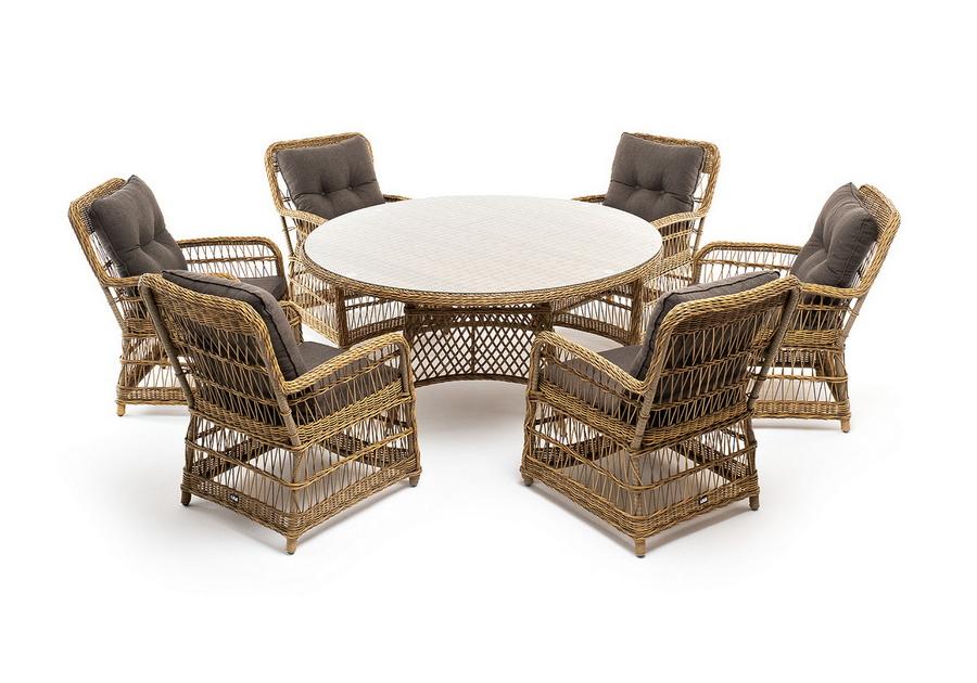 Высо "Эспрессо" плетеный круглый стол, диаметр 150 см, цвет соломенный 1шт. 1 500Х1 500Х750, "Цесена" кресло плетеное из искусственного ротанга, цвет соломенный 6шт. 600Х800Х910,