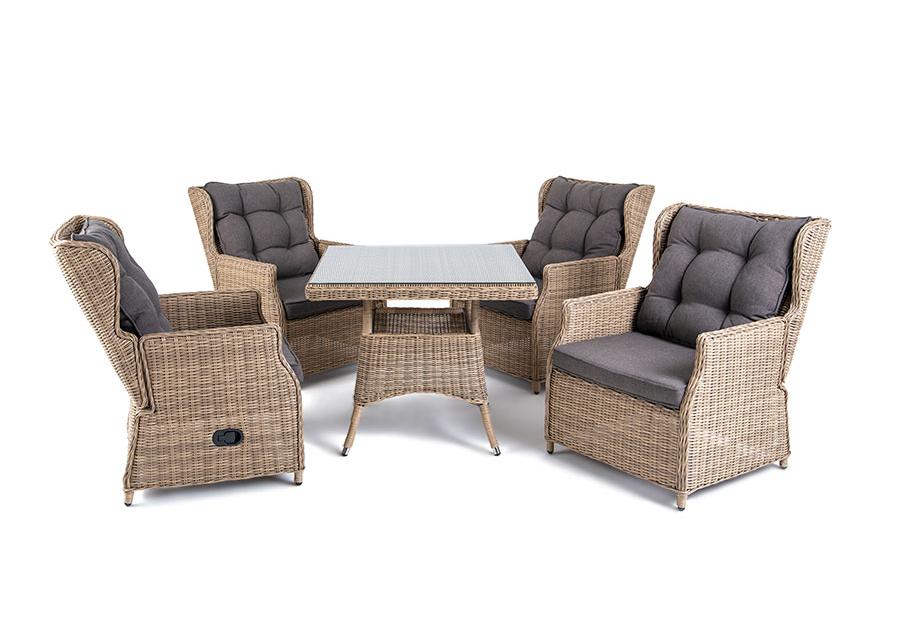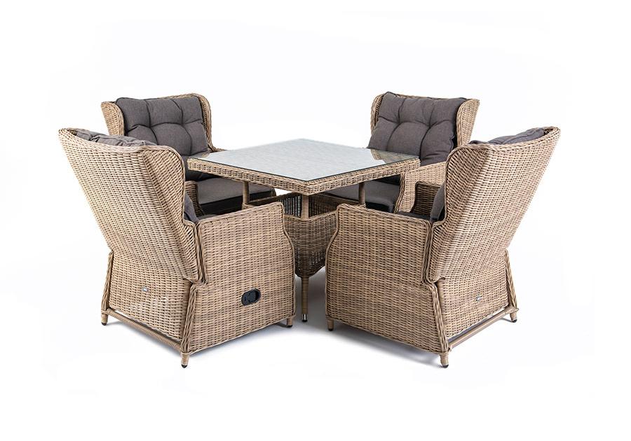 Особенность кресел в этой обеденной группе заключается в много "Форио" кресло раскладное плетеное, цвет соломенный 4шт. 730Х830Х1 015, "Айриш" стол плетеный из искусственного ротанга, цвет соломенный 1шт. 900Х900Х750,