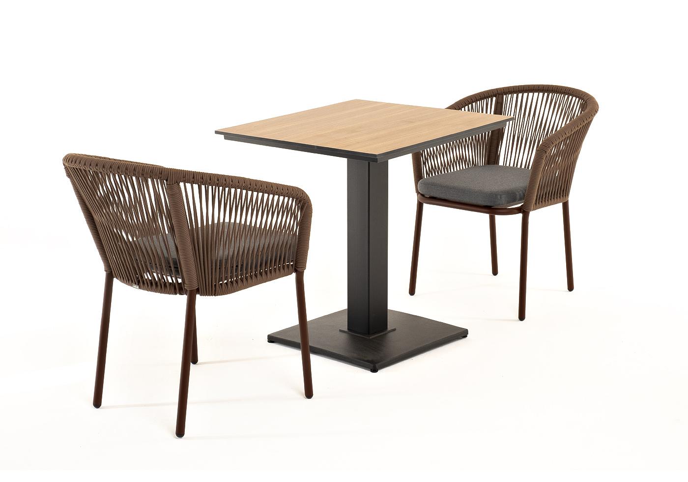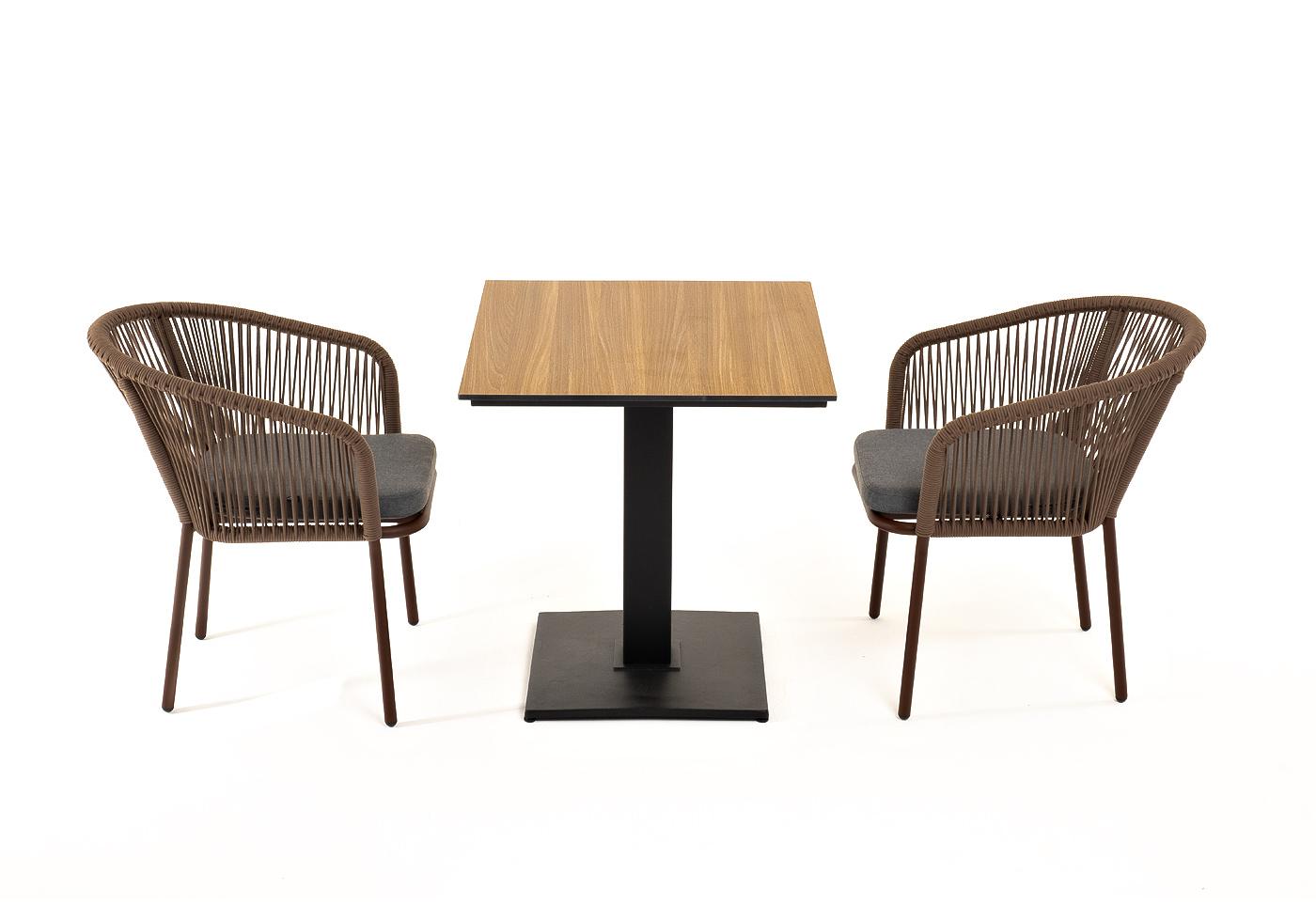 Габариты упако "Каффе" стол из HPL квадратный 70х70см, цвет "дуб" 1шт. 700Х700Х750, "Марсель" стул плетеный из роупа, каркас алюминий коричневый (RAL8016) муар, роуп коричневый круглый, ткань темно-серая 027 2шт. 570Х620Х775,