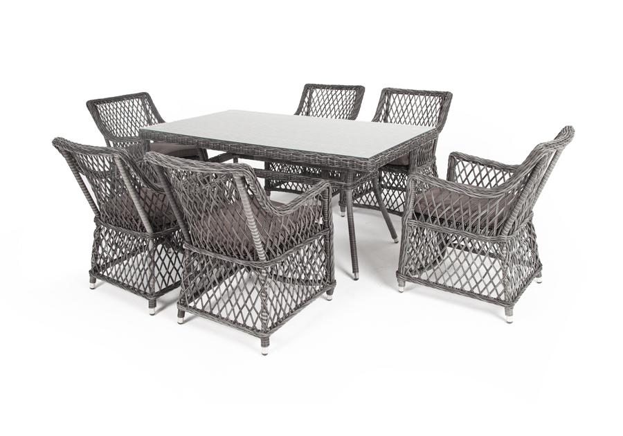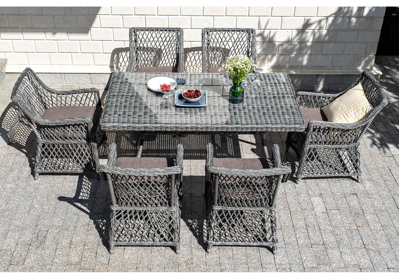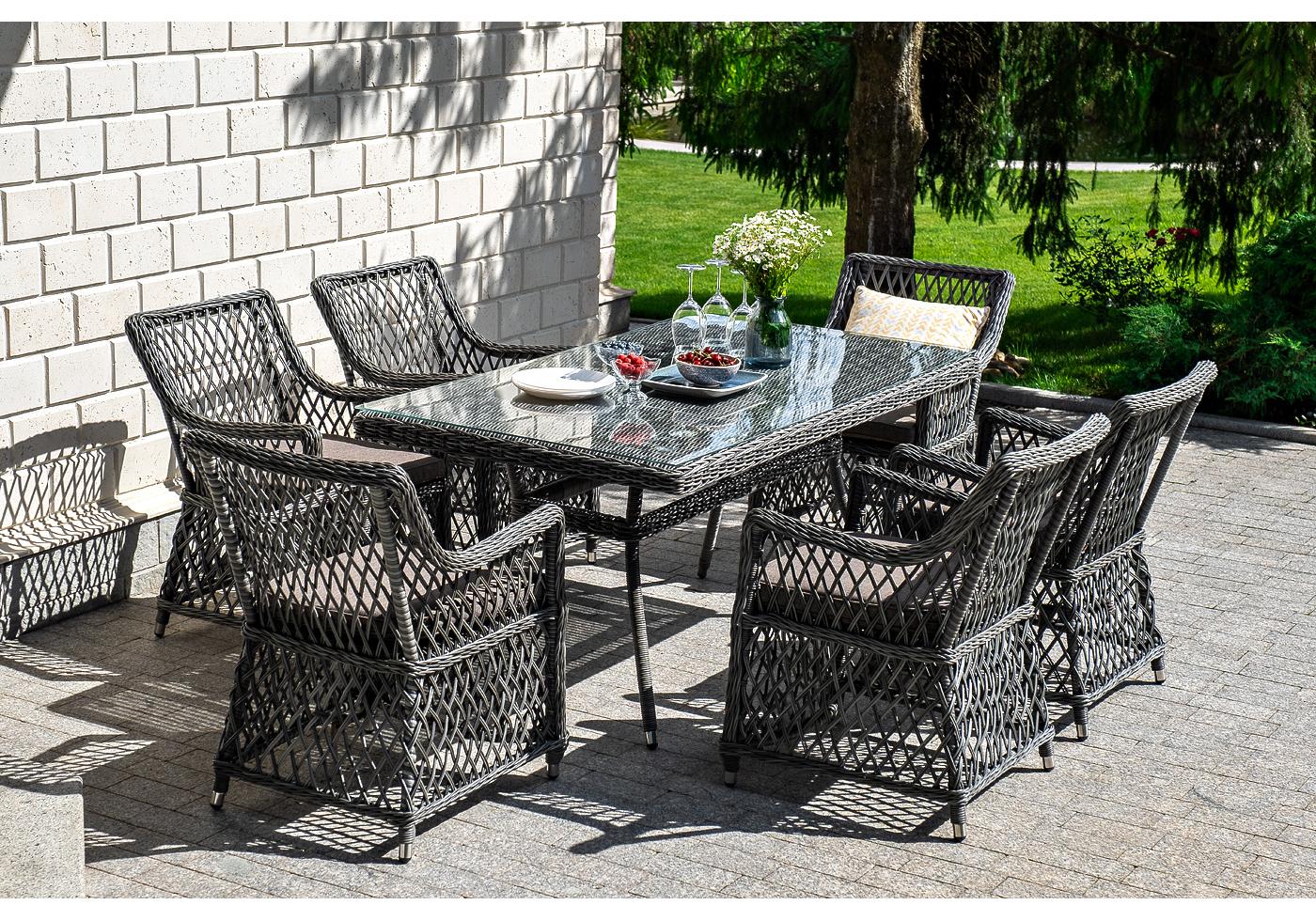Высота спинки – 460 мм. "Латте" плетеный стол из искусственного ротанга 160х90см, цвет графит 1шт. 1 600Х900Х750, "Латте" плетеное кресло из искусственного ротанга, цвет графит 6шт. 550Х660Х850,